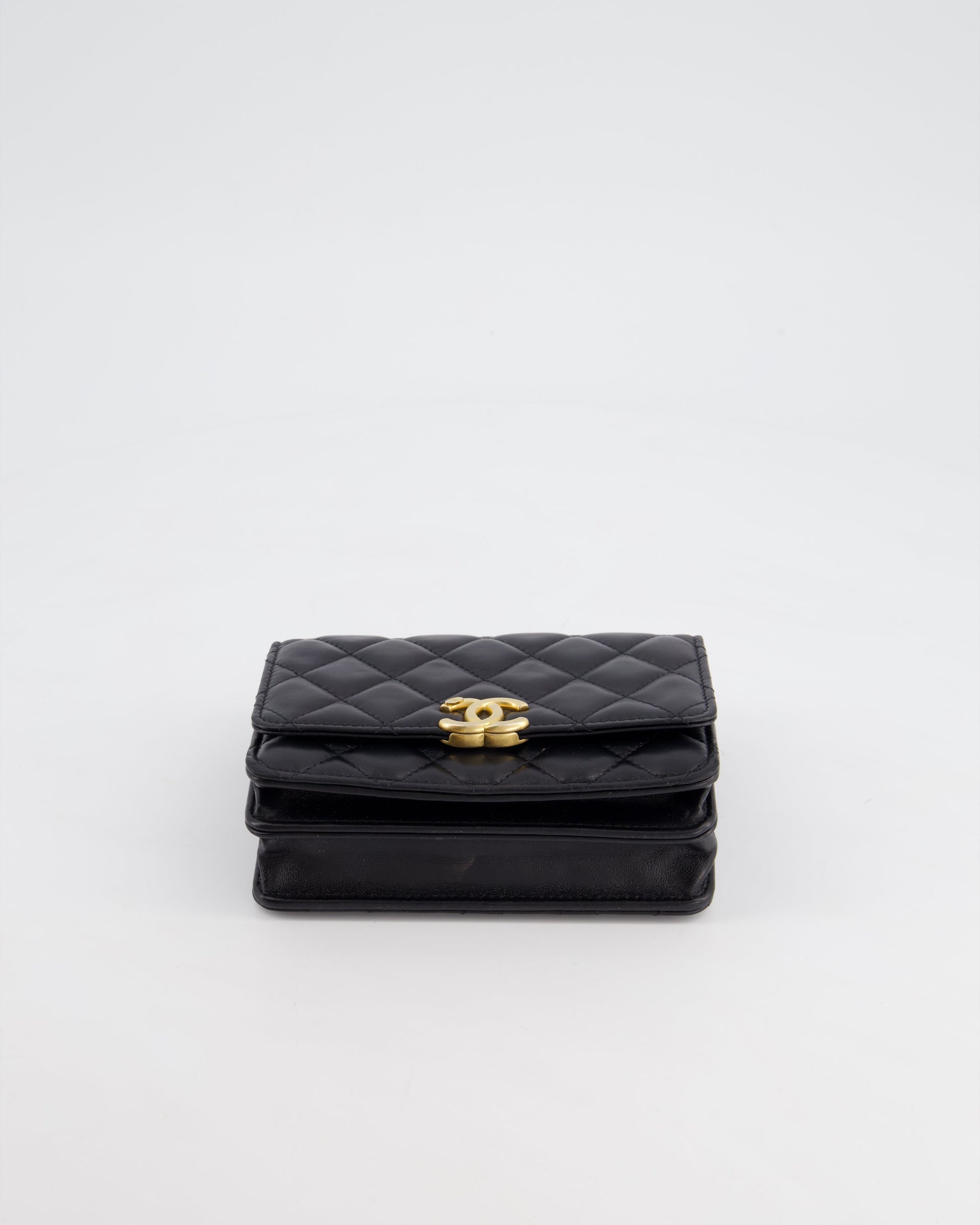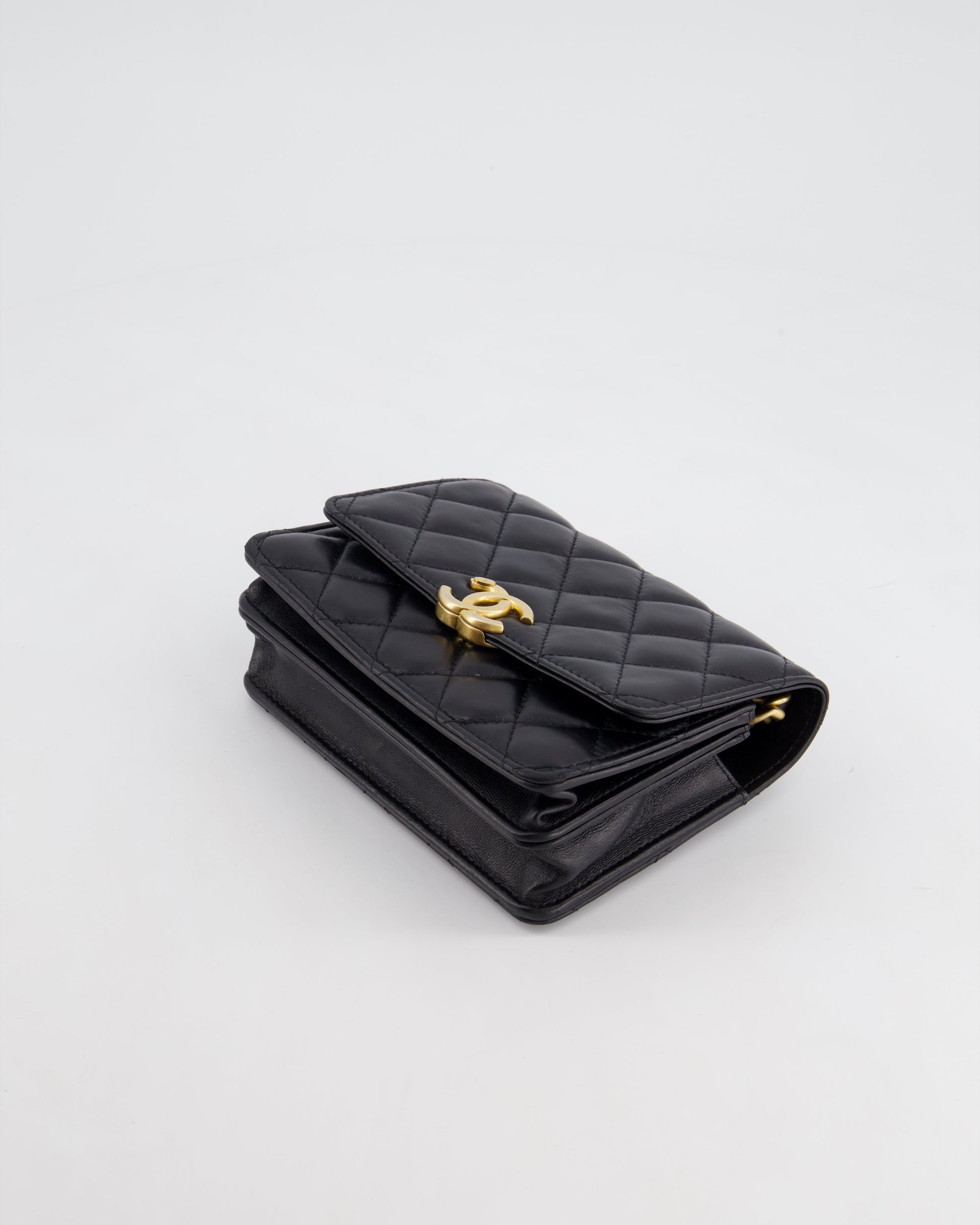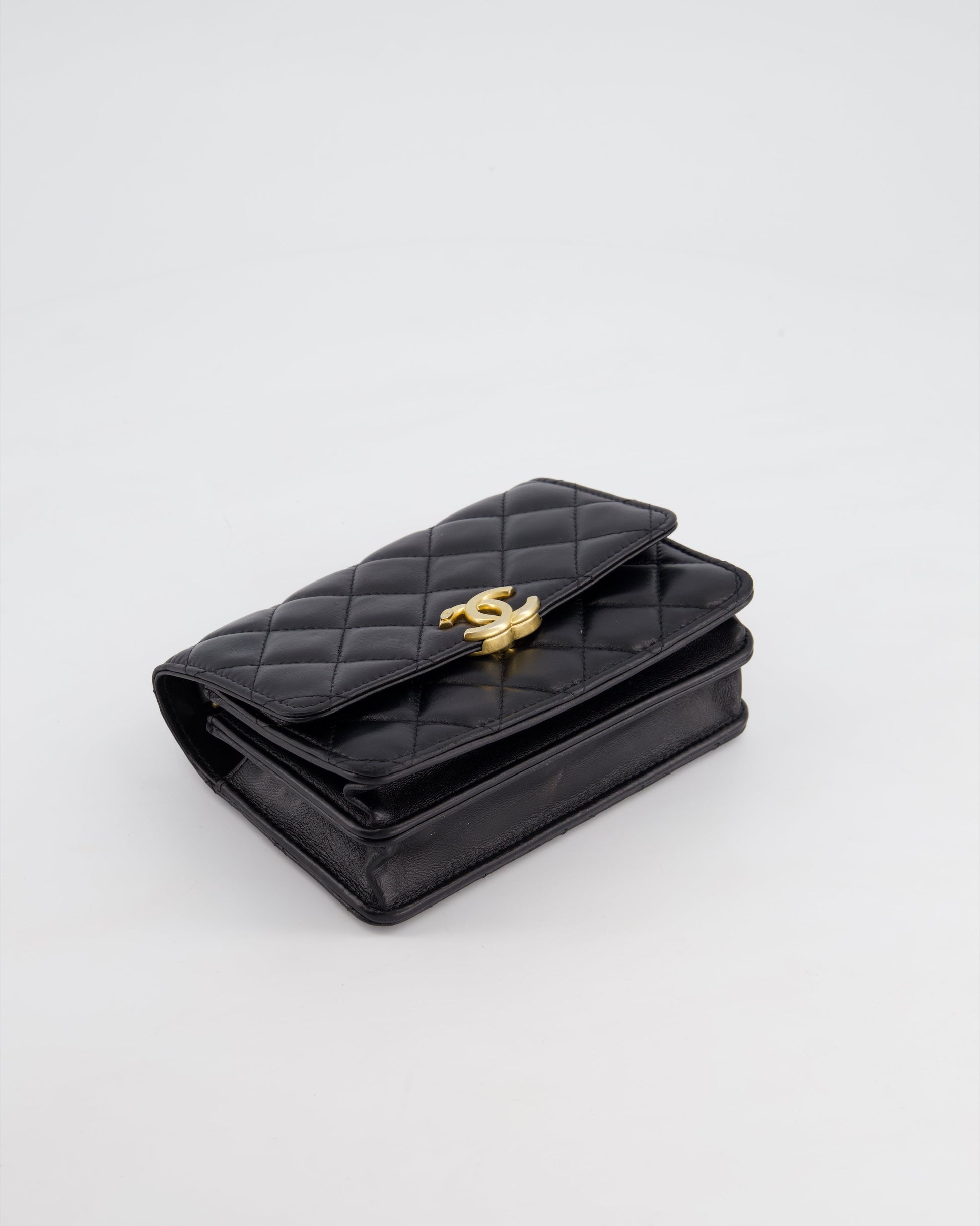 *HOT* Chanel Black Mini Seasonal Flap Bag In Lambskin Leather with Gold & Black Hardware