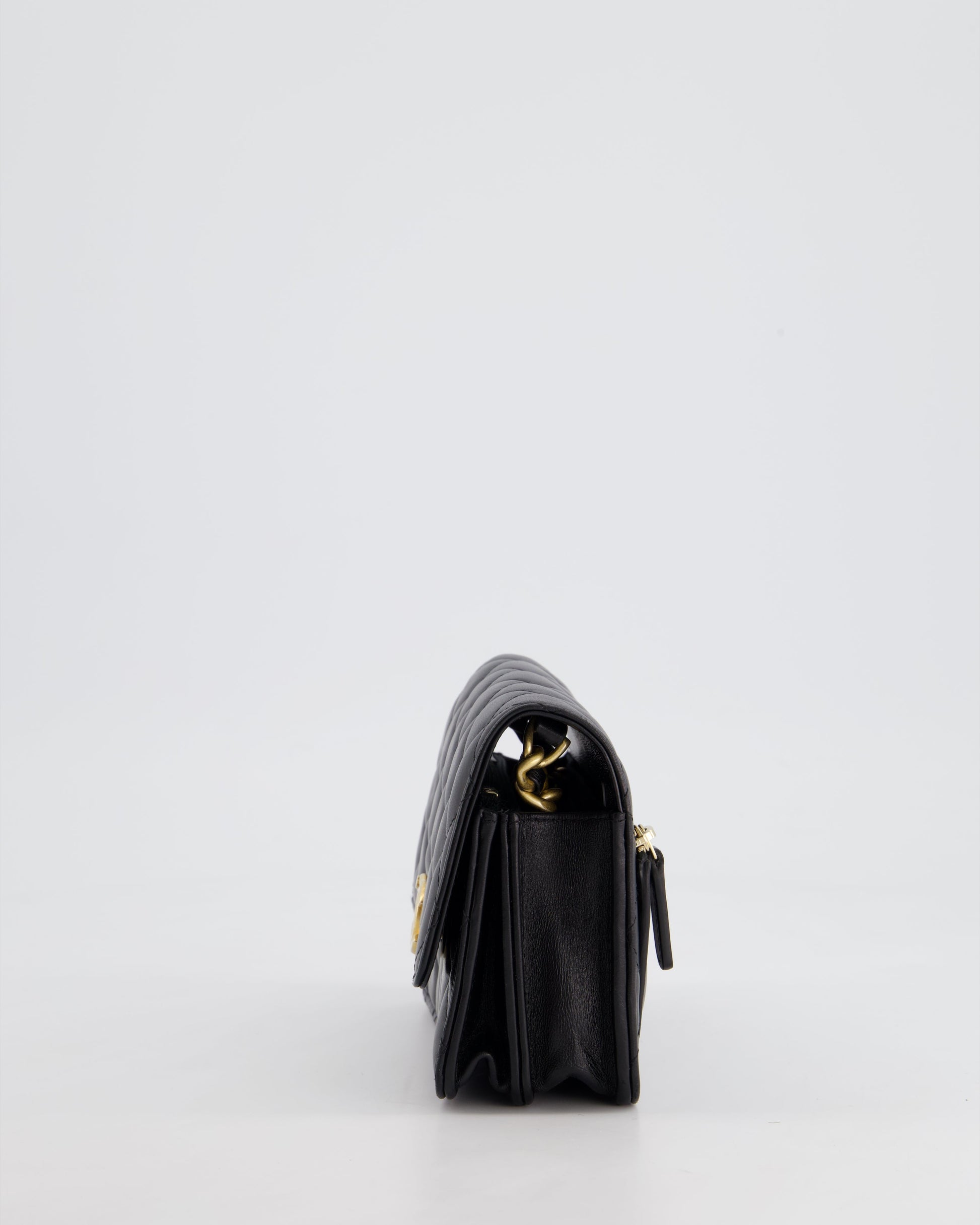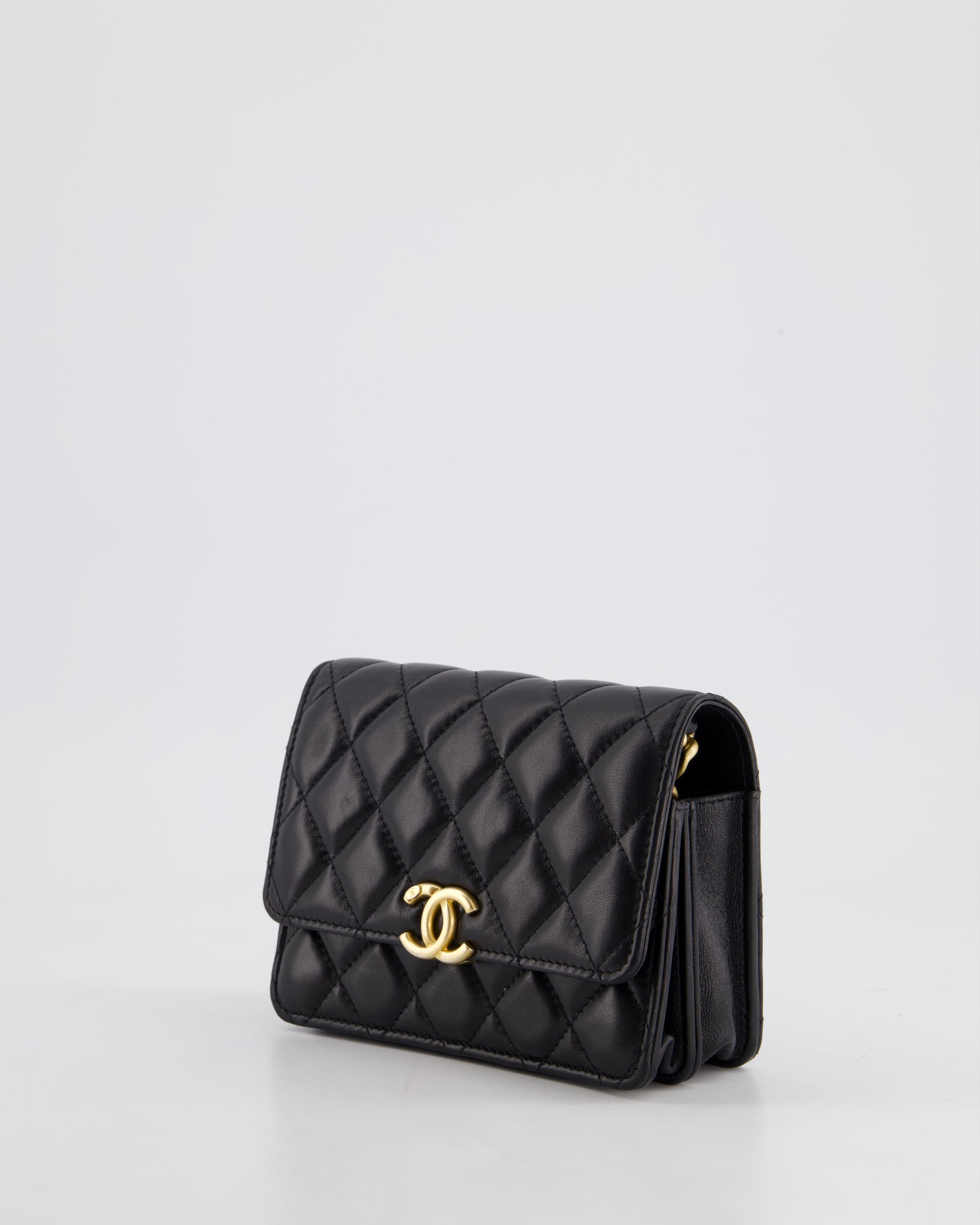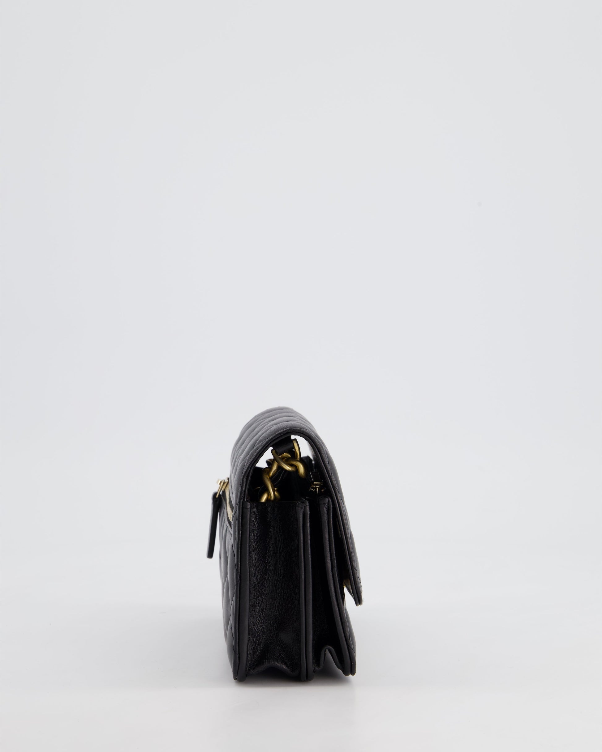 *HOT* Chanel Black Mini Seasonal Flap Bag In Lambskin Leather with Gold & Black Hardware