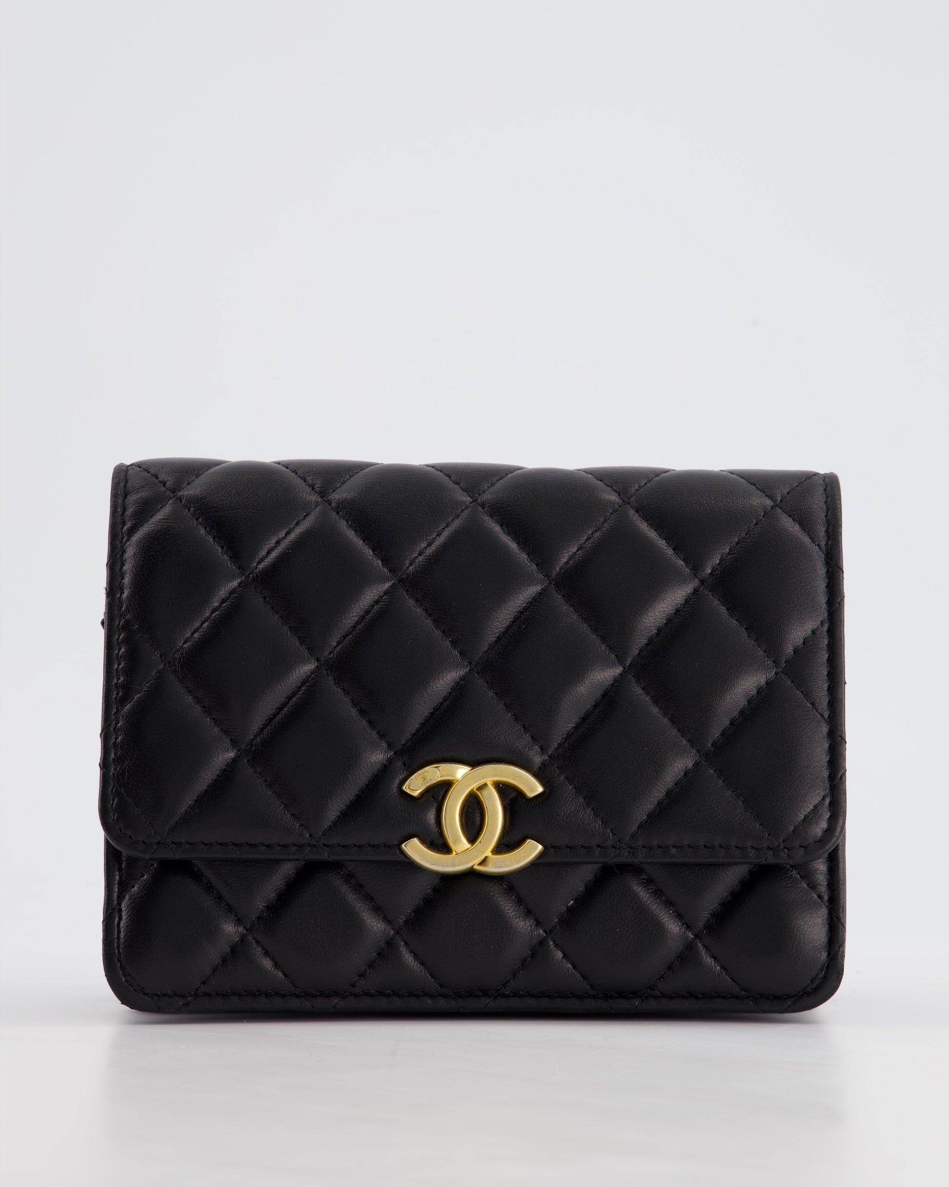 *HOT* Chanel Black Mini Seasonal Flap Bag In Lambskin Leather with GoldĀ & Black Hardware