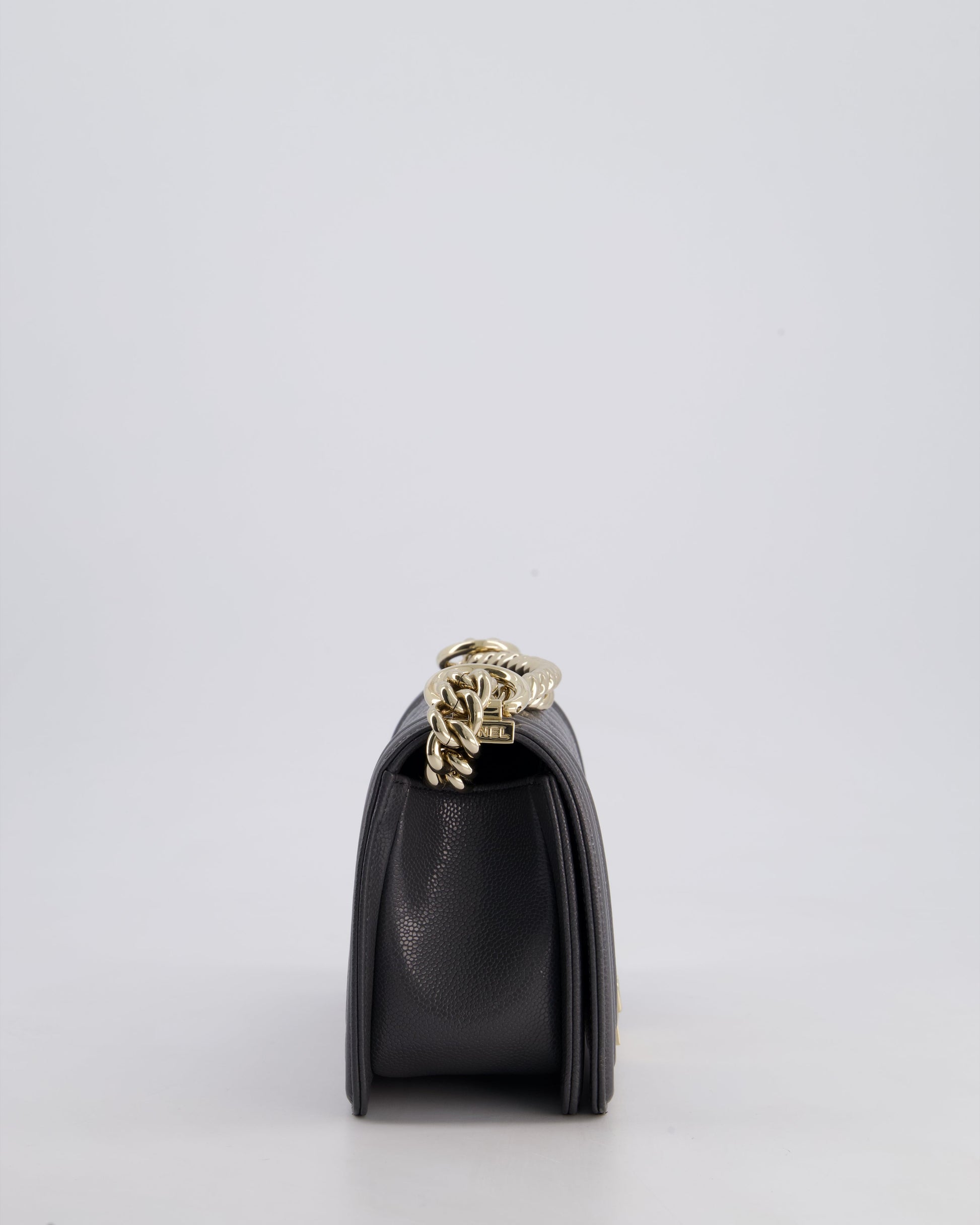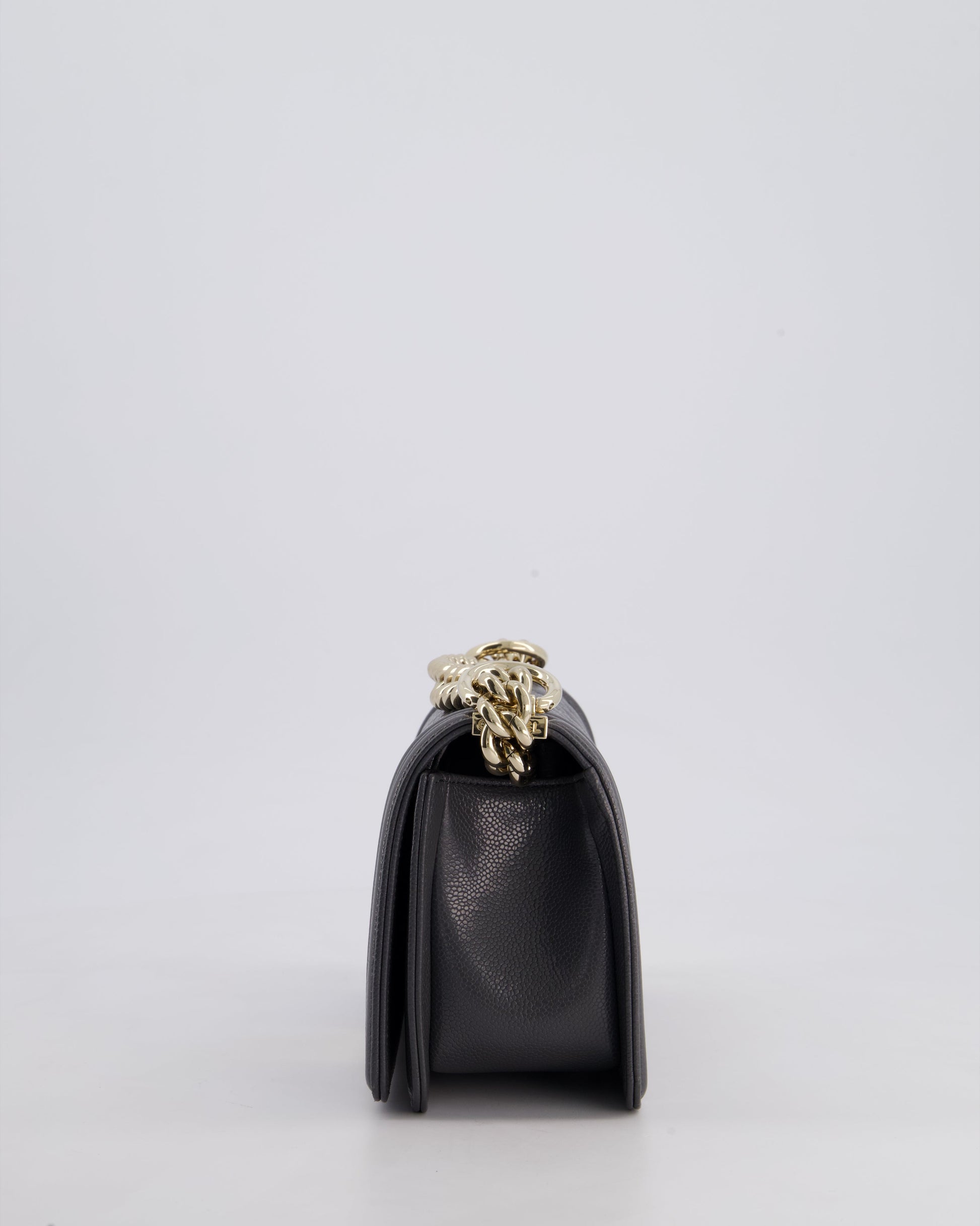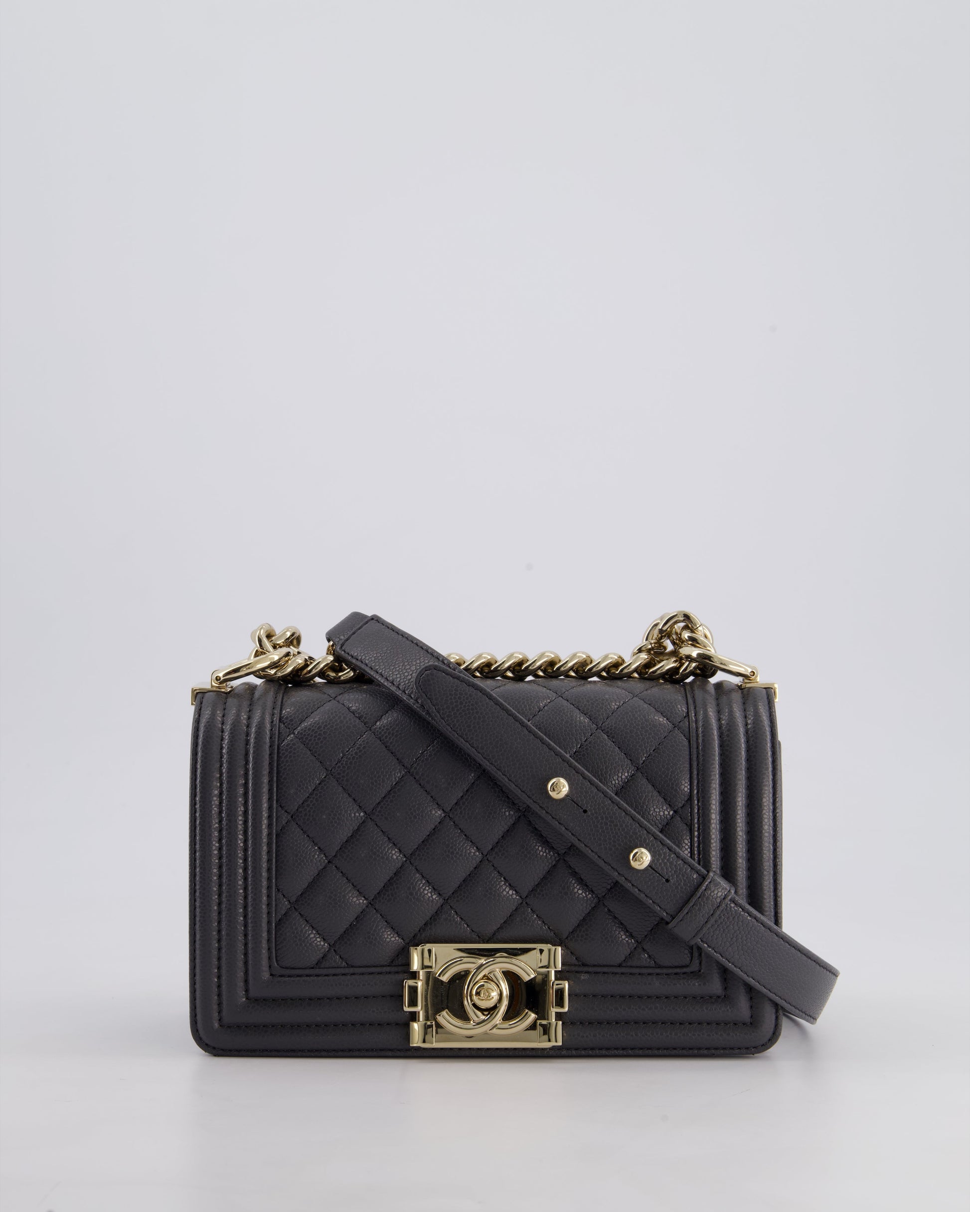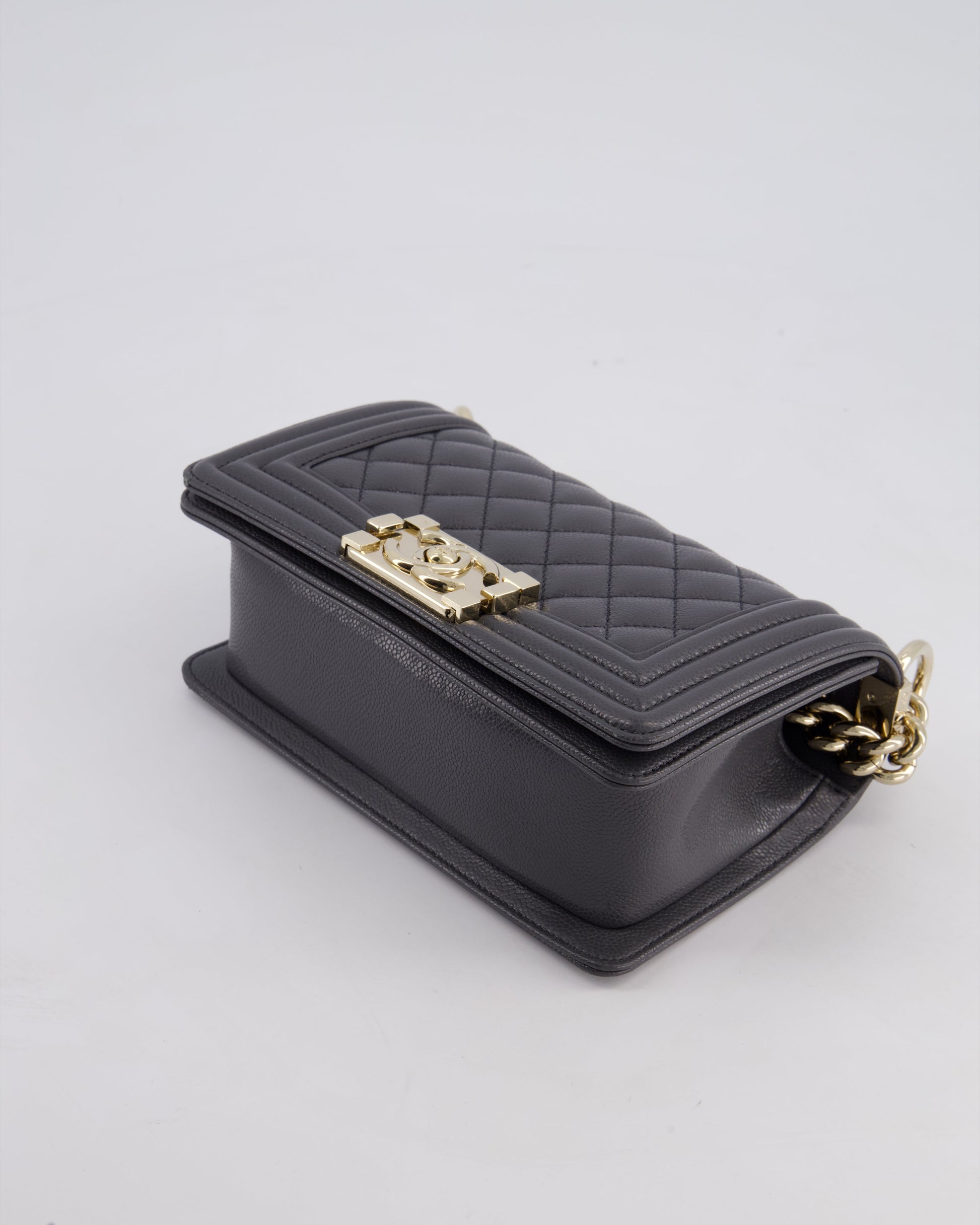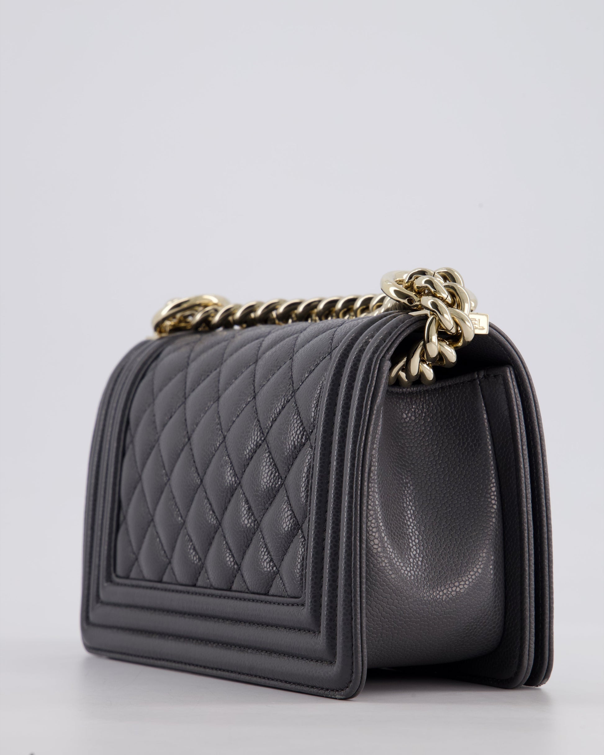 *HOT* Chanel Stone Grey Small Boy Bag in Caviar Leather with Champagne Gold Hardware
