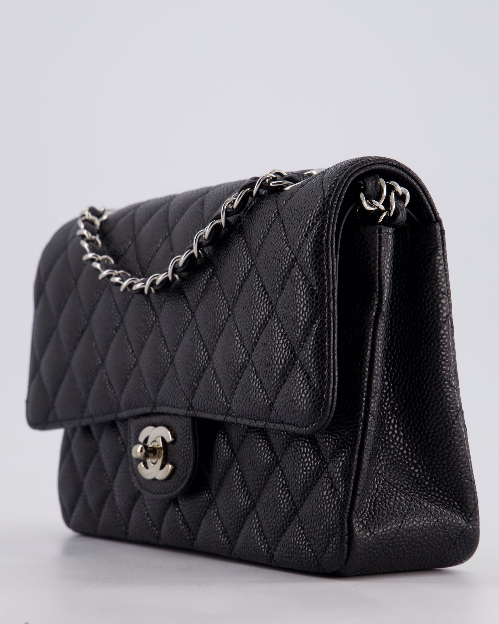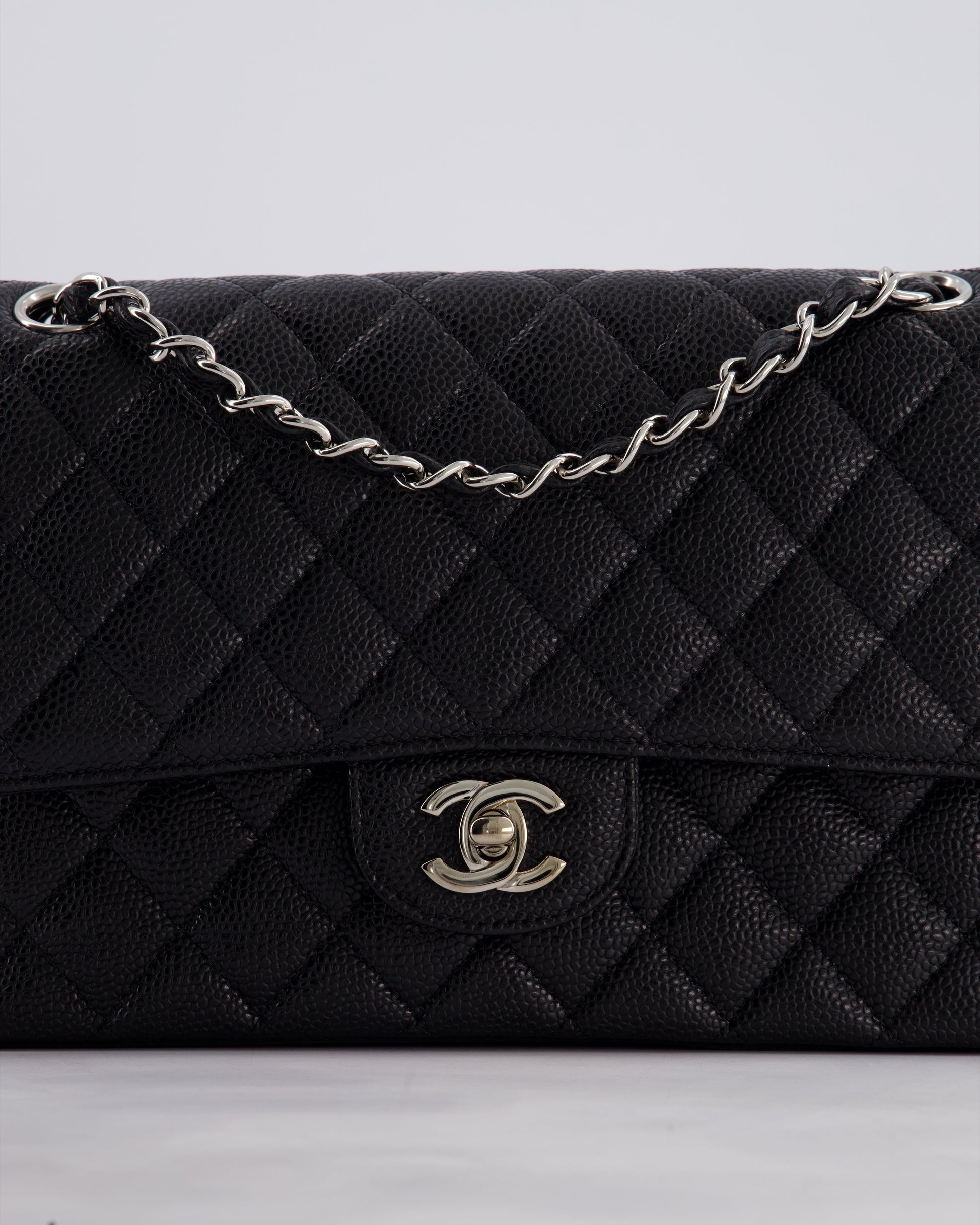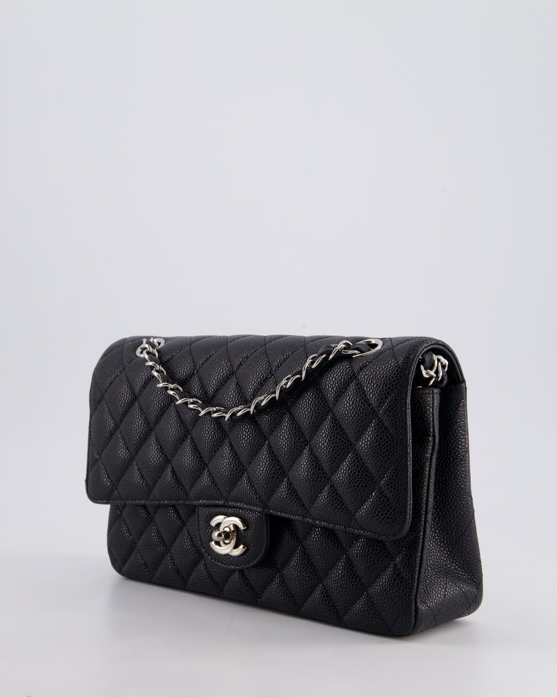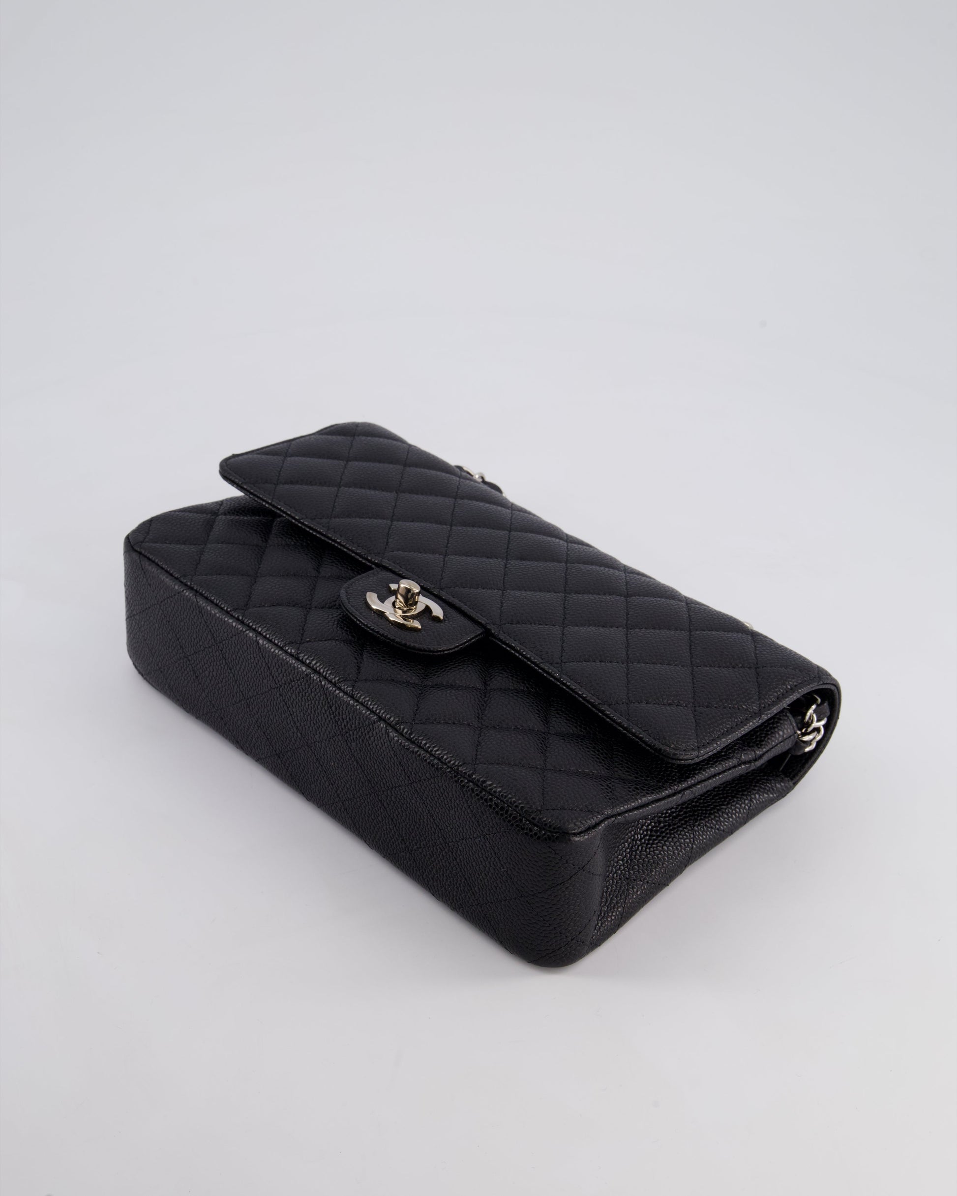 Chanel Medium Black Classic Double Flap Bag in Caviar Leather with Silver Hardware