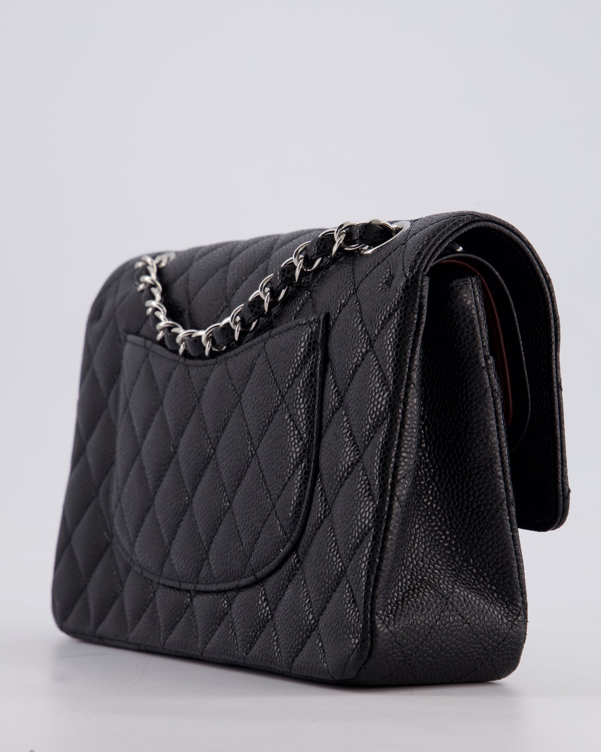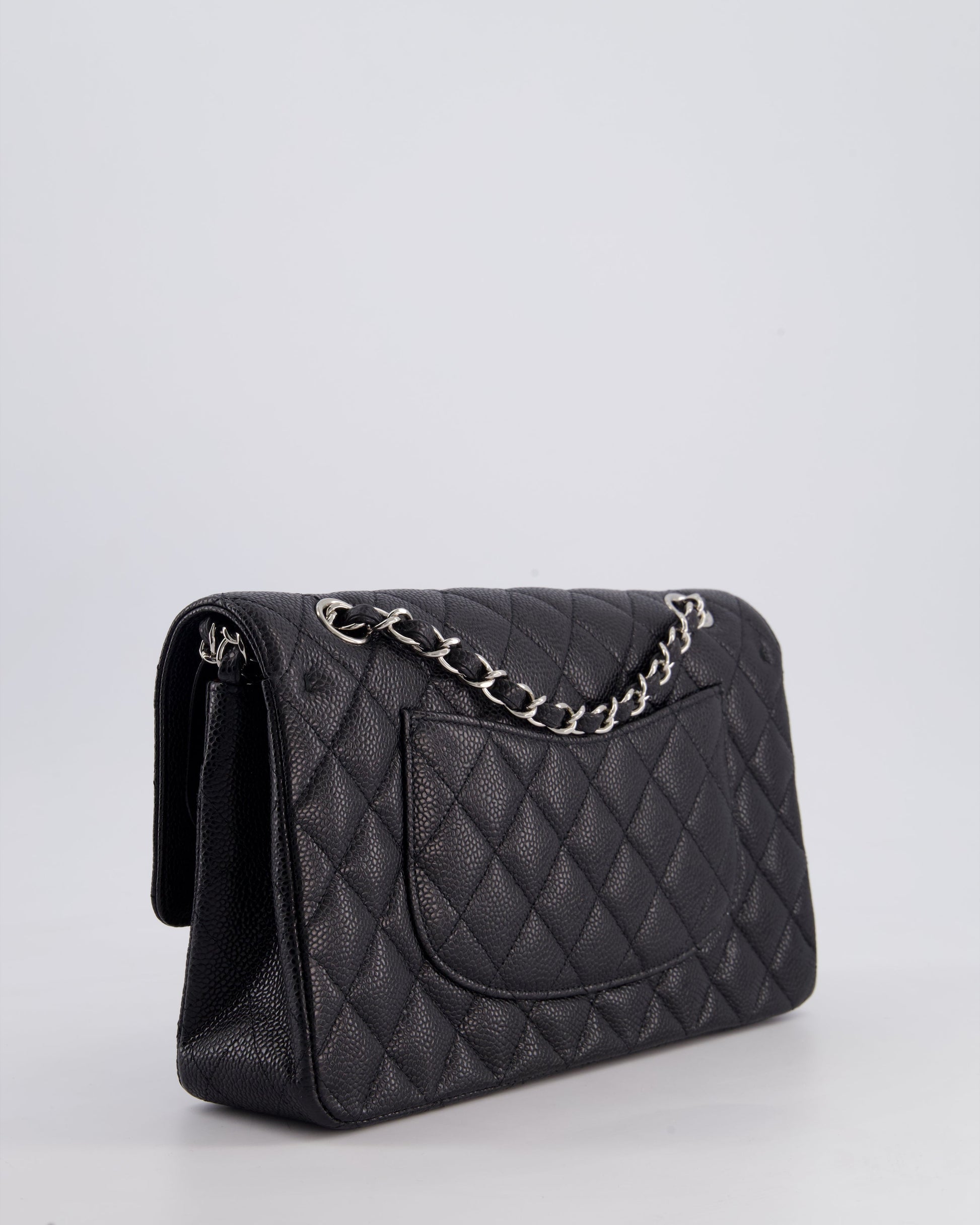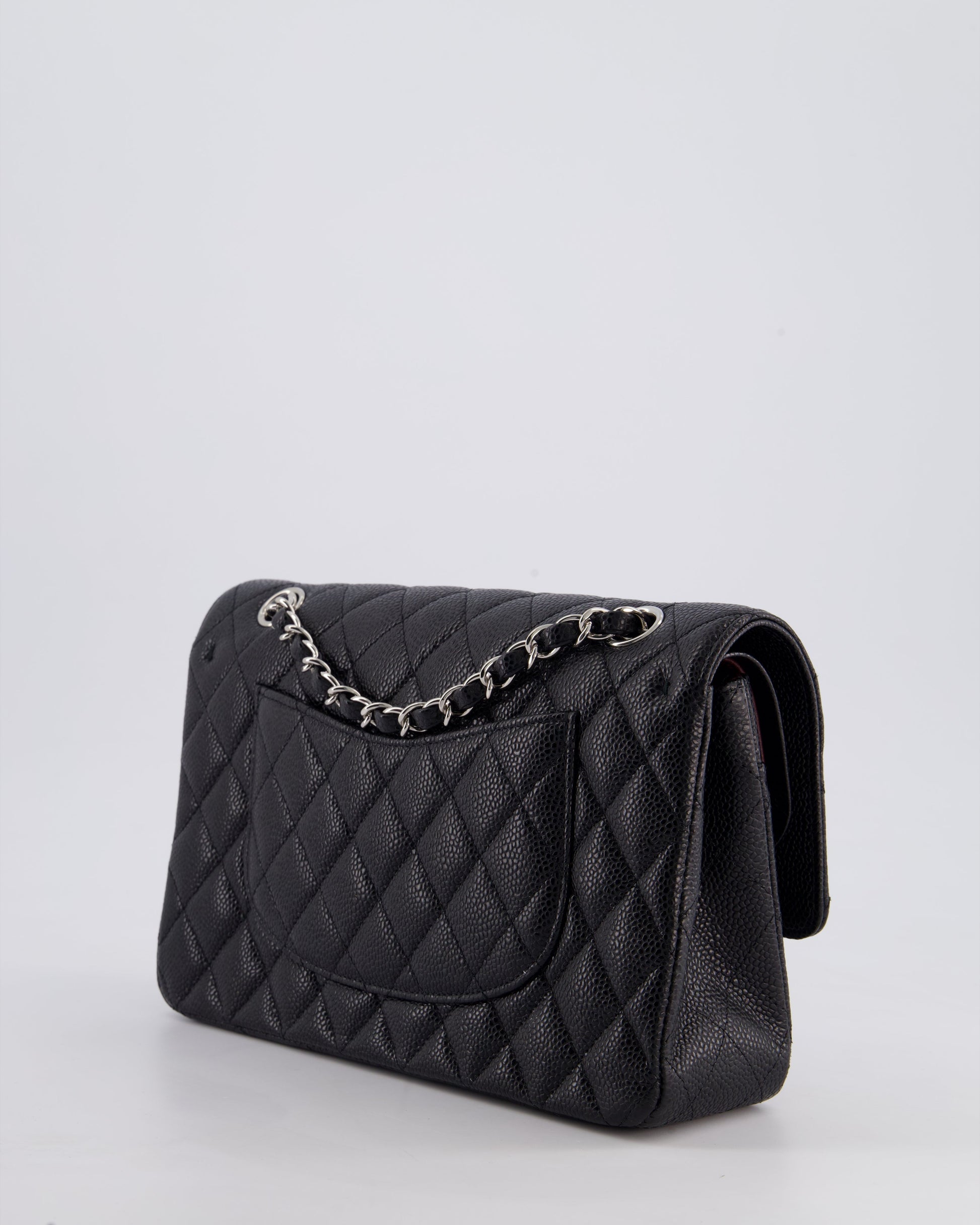Chanel Medium Black Classic Double Flap Bag in Caviar Leather with Silver Hardware