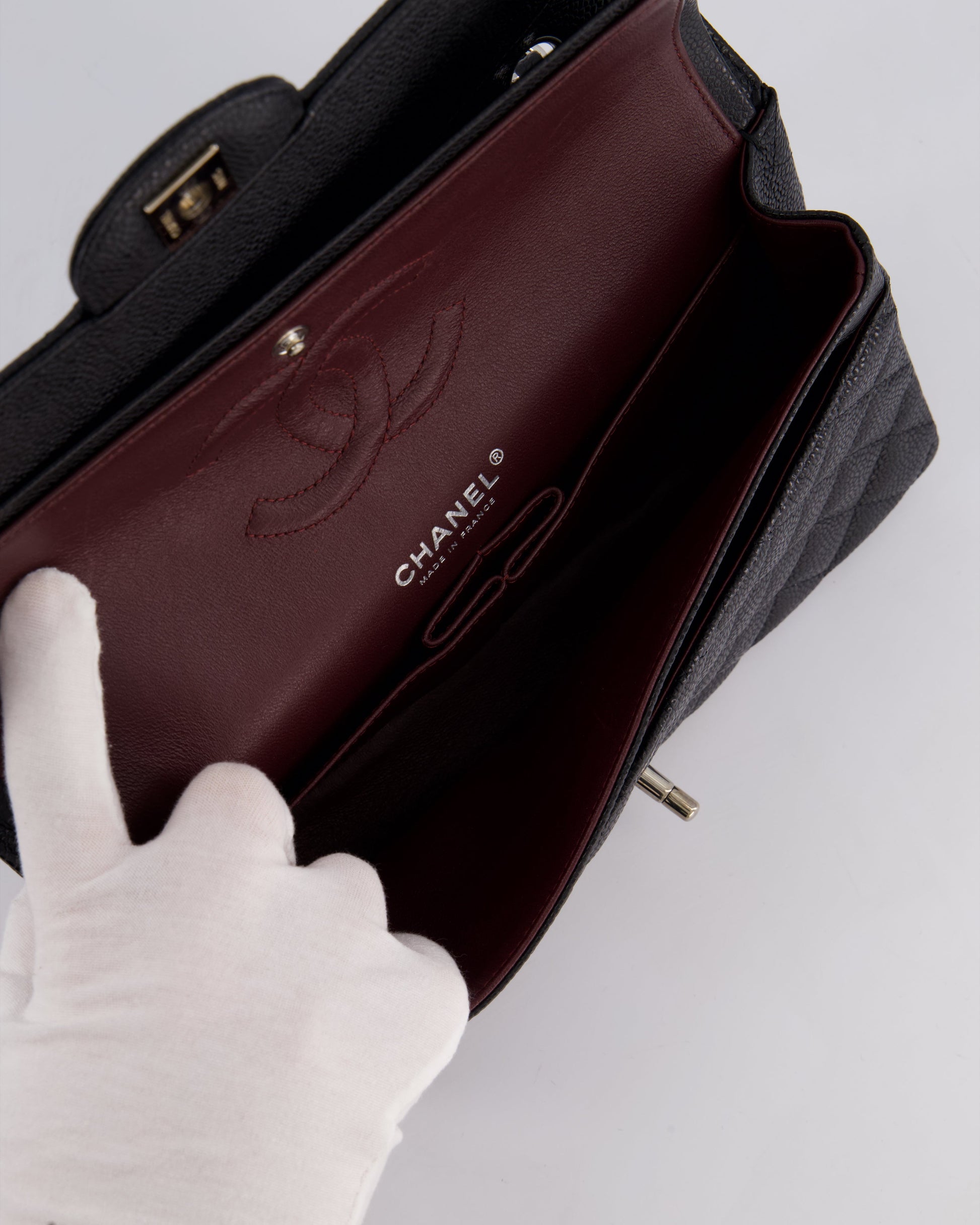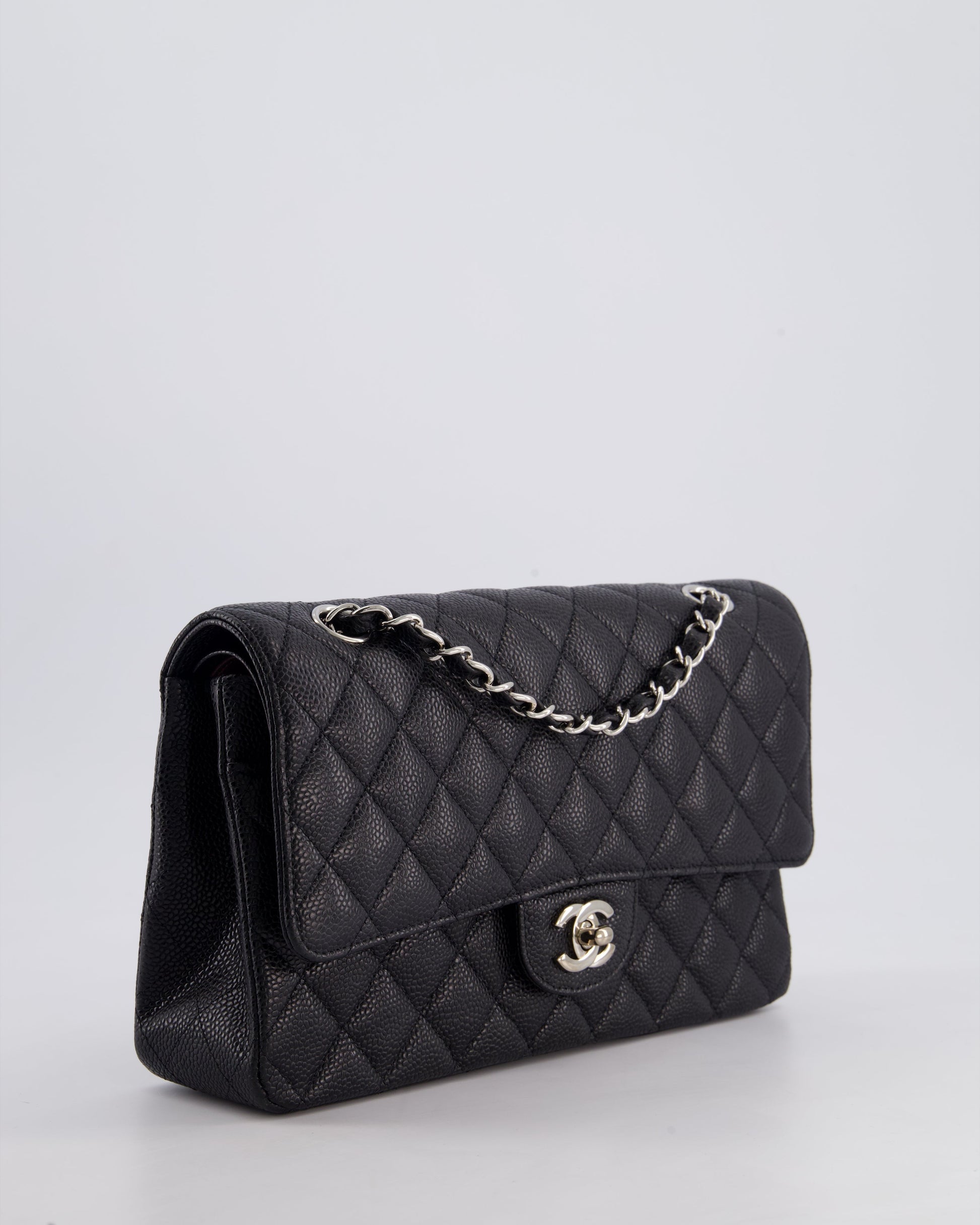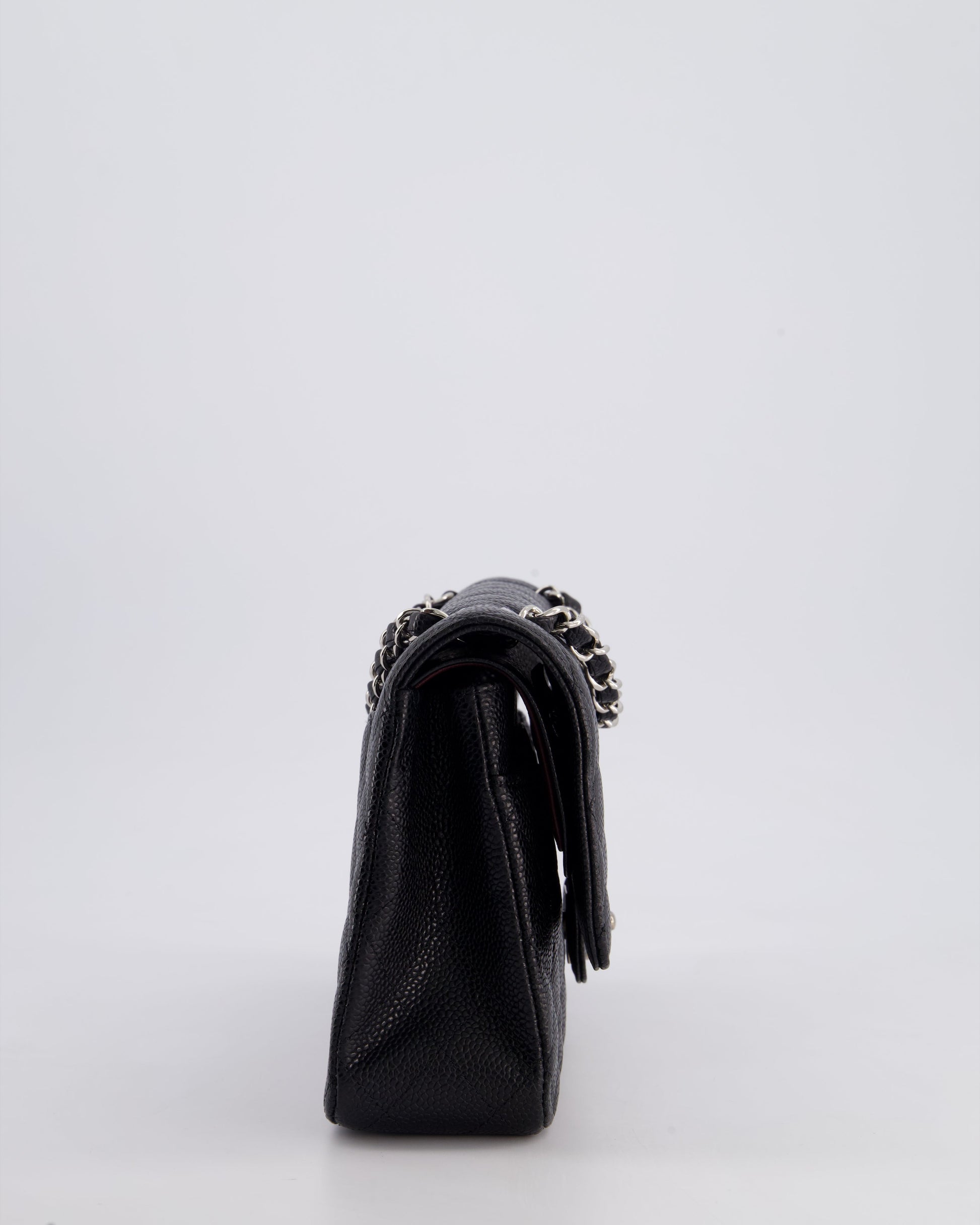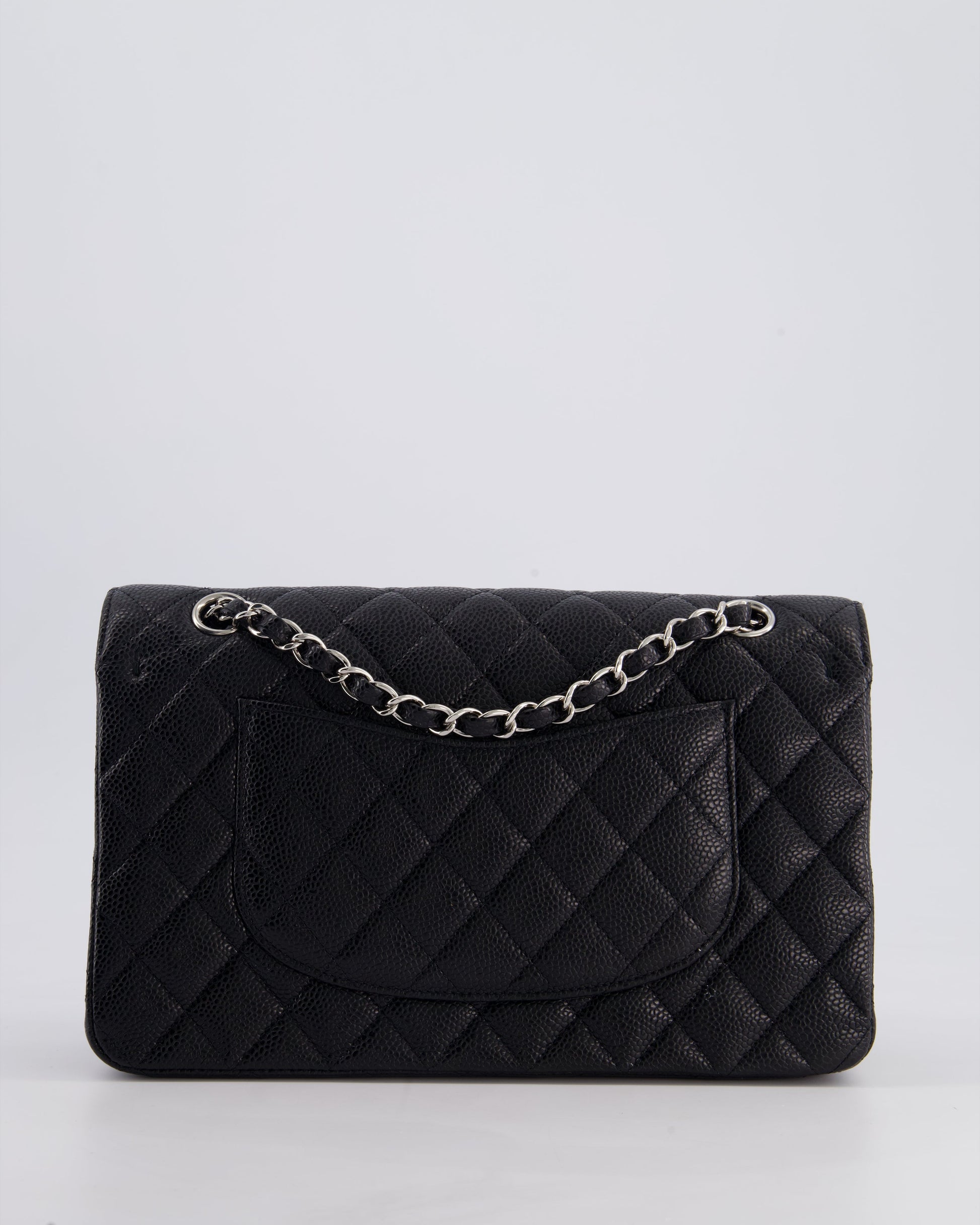 Chanel Medium Black Classic Double Flap Bag in Caviar Leather with Silver Hardware