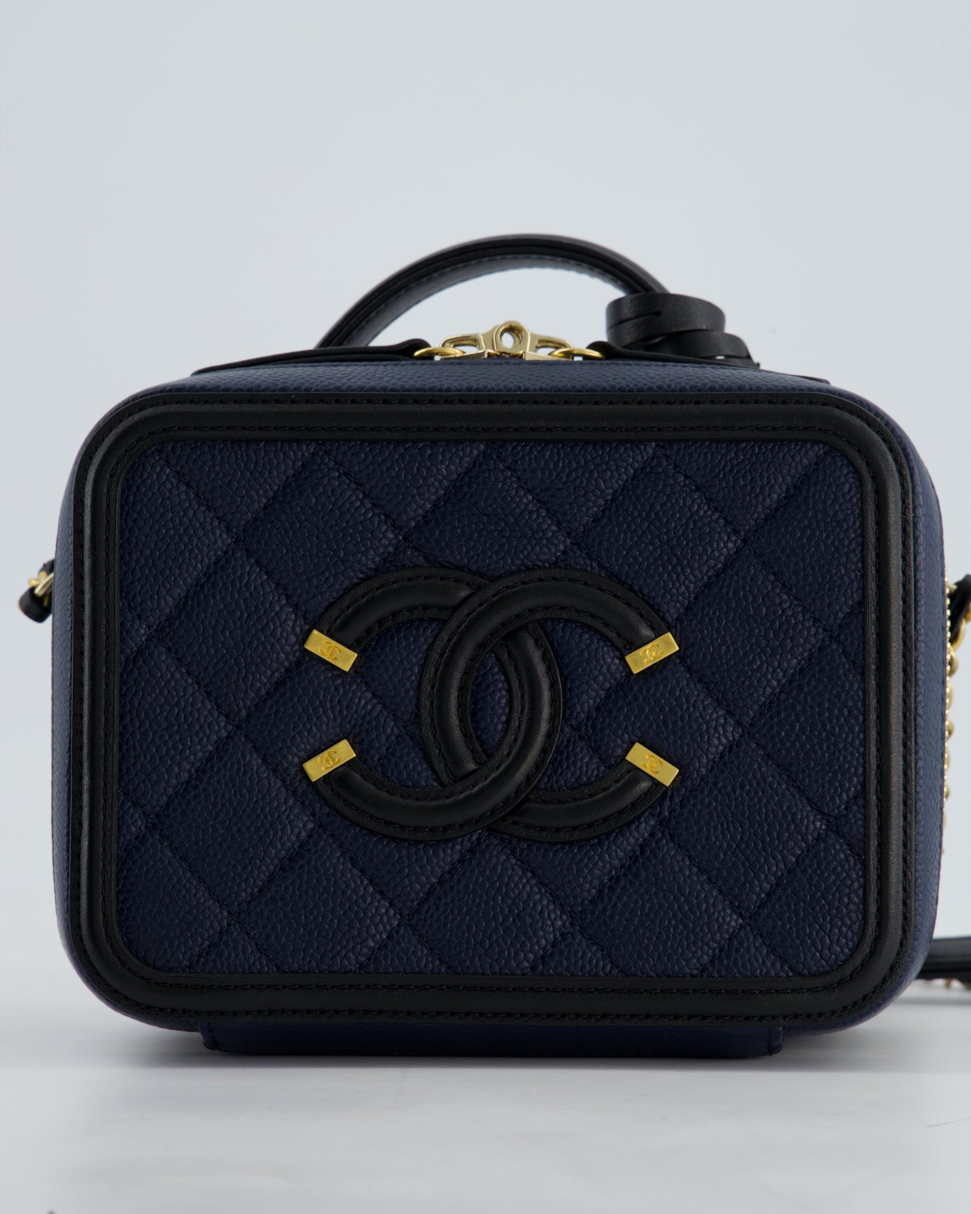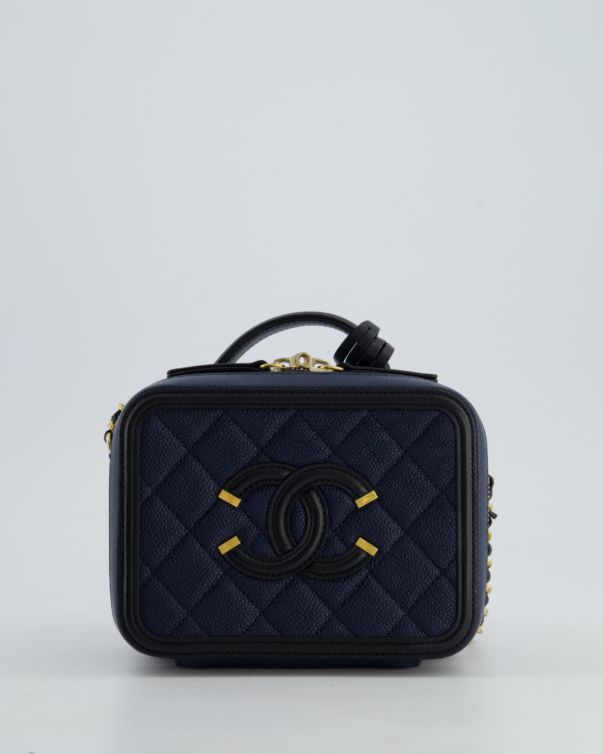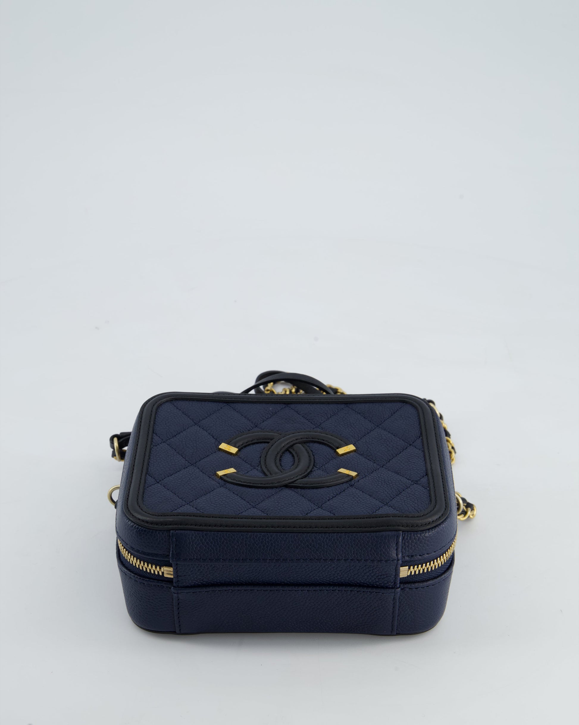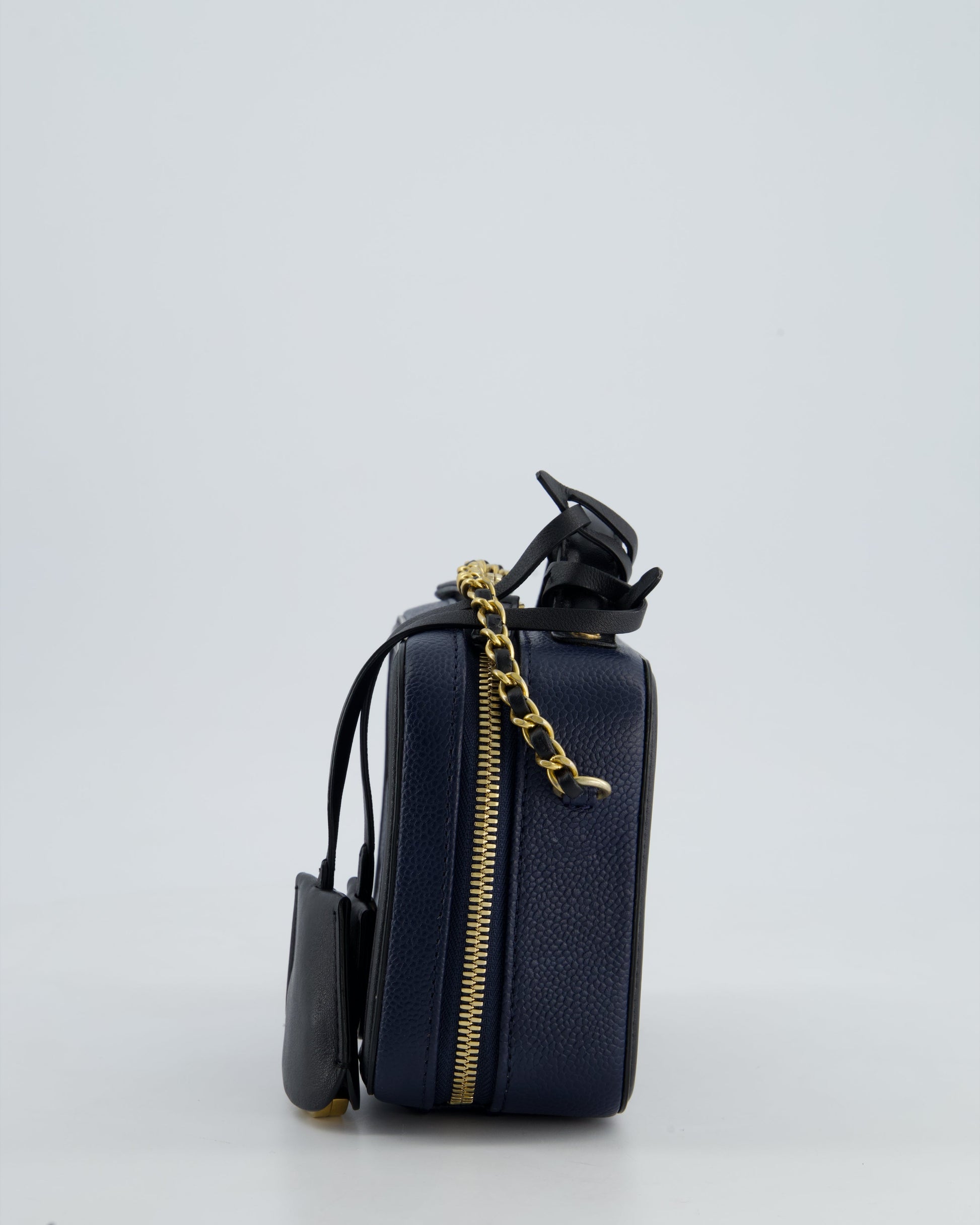 *HOT* Chanel Navy & Black Small Vanity Case Bag in Caviar Leather with Brushed Gold Hardware