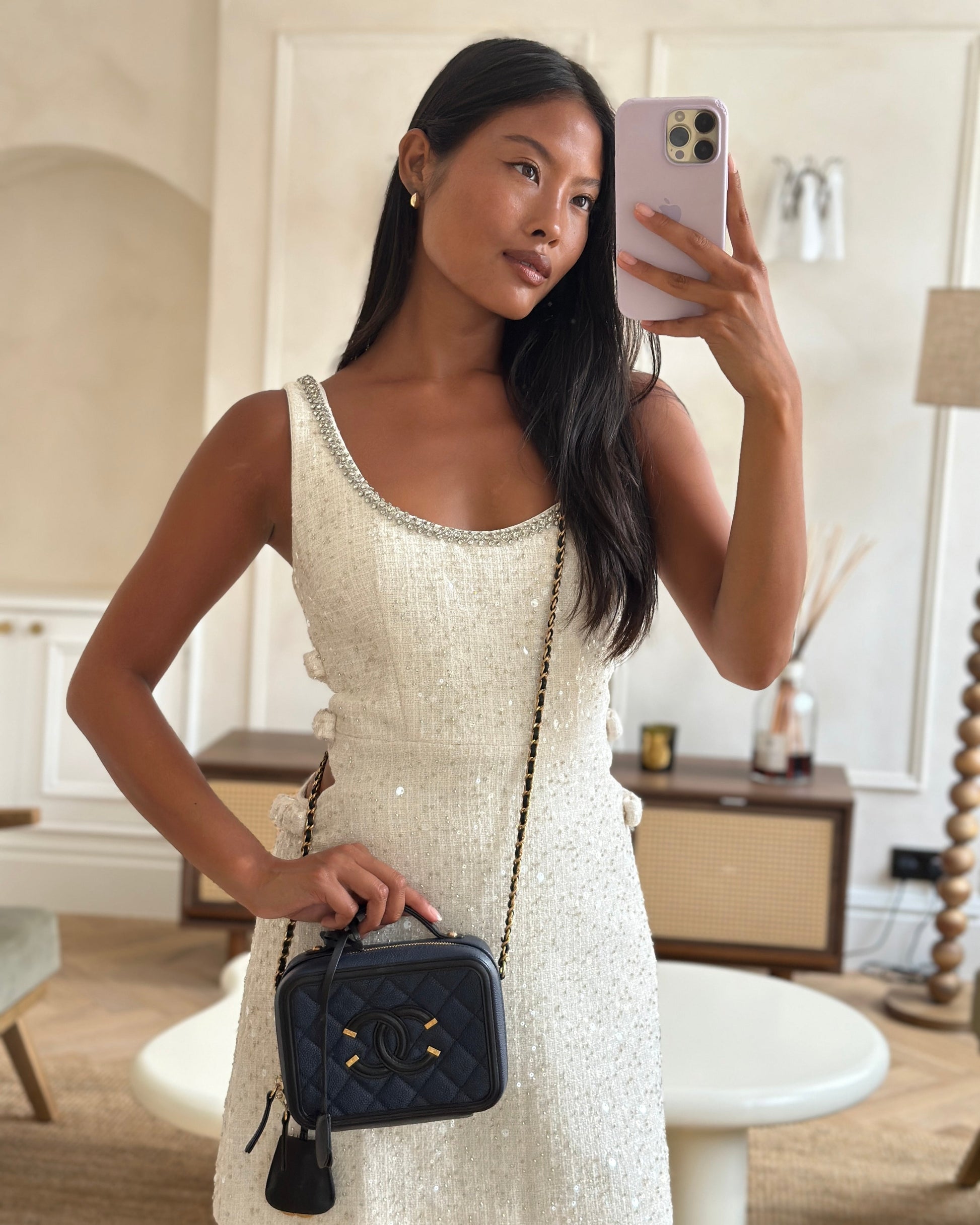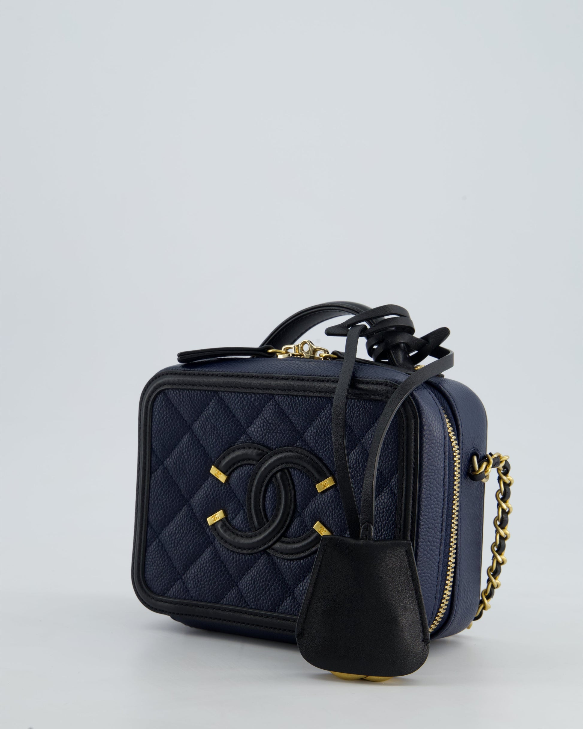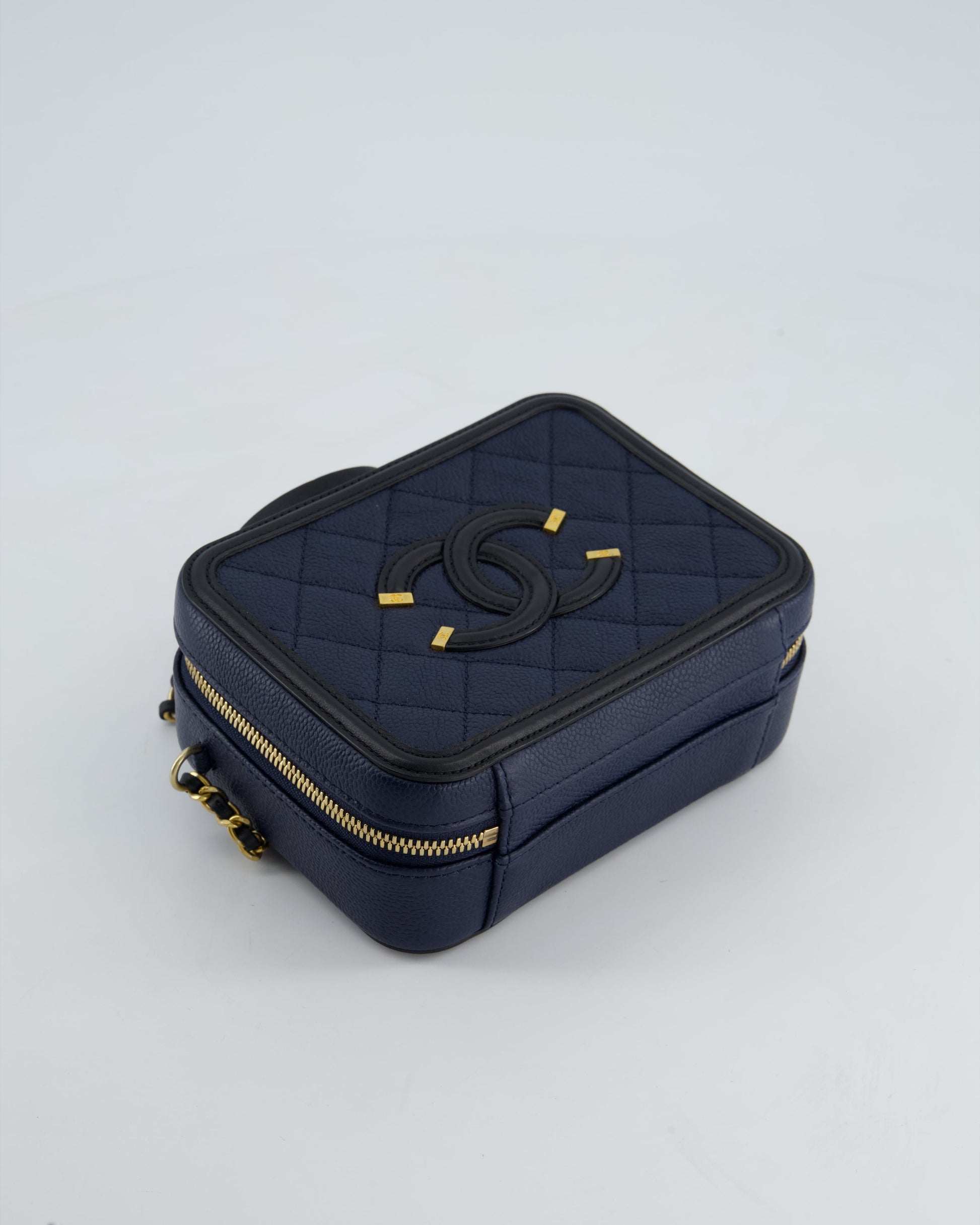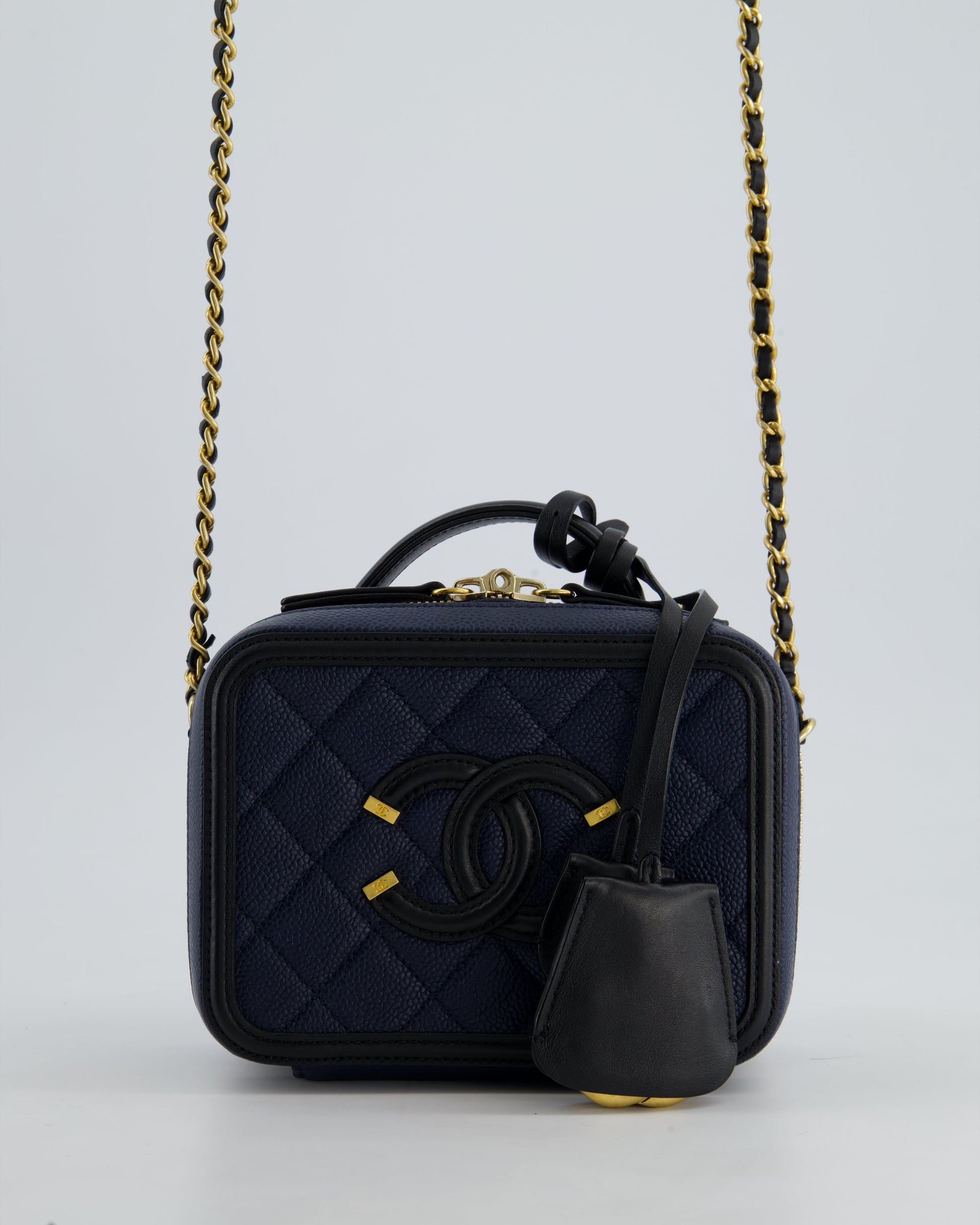 *HOT* Chanel Navy & Black Small Vanity Case Bag in Caviar Leather with Brushed Gold Hardware