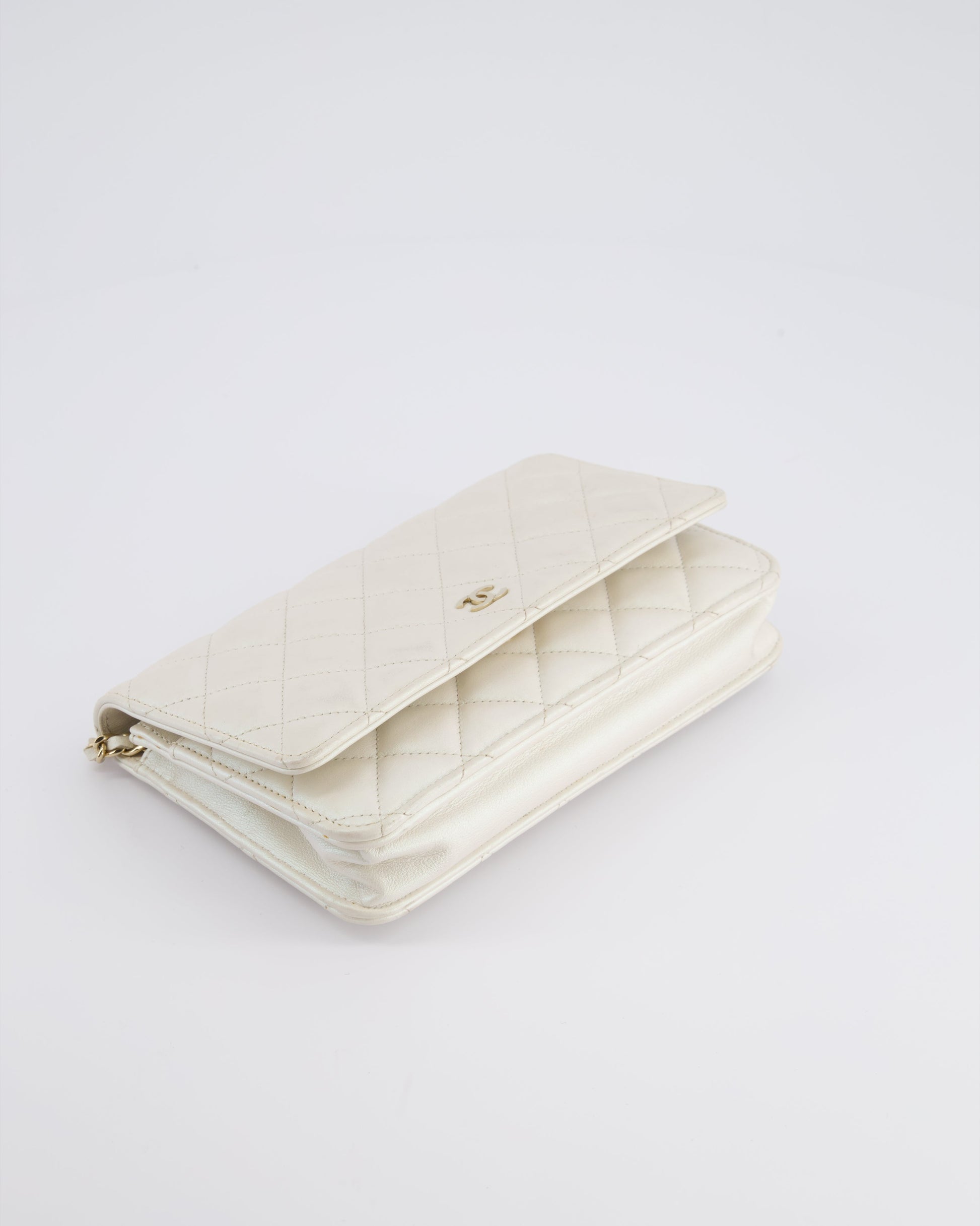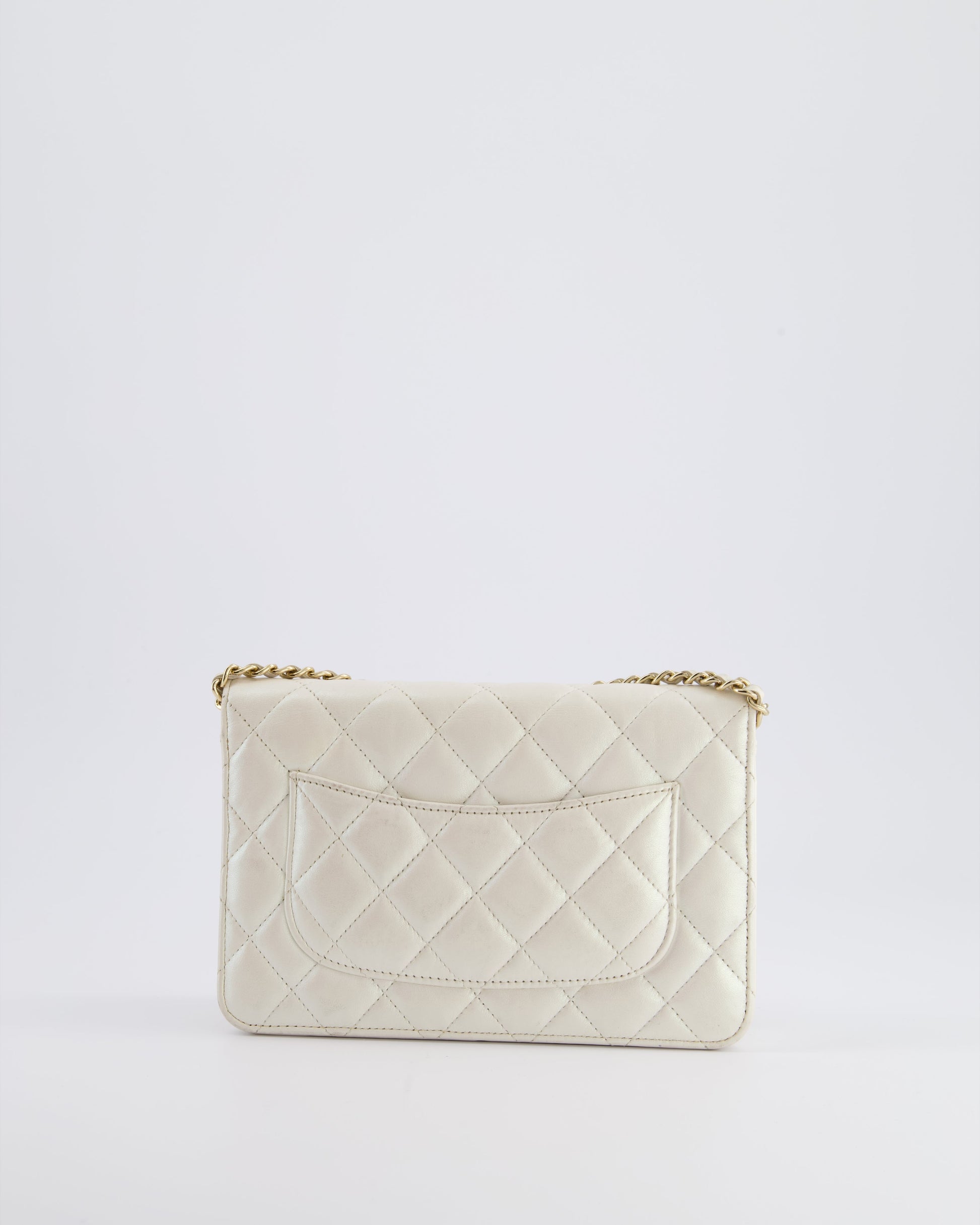 *HOT* Chanel Pearlescent Off-White Wallet on Chain Bag in Calfskin Leather with Champagne Gold Hardware