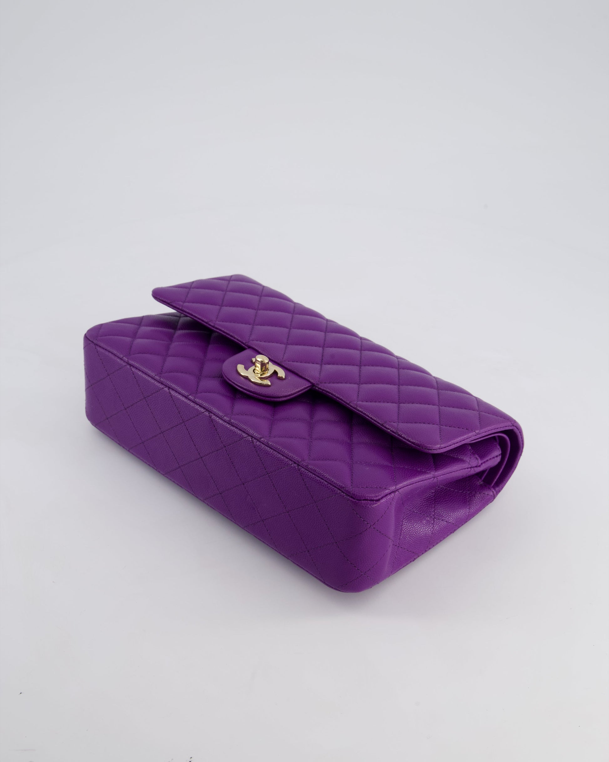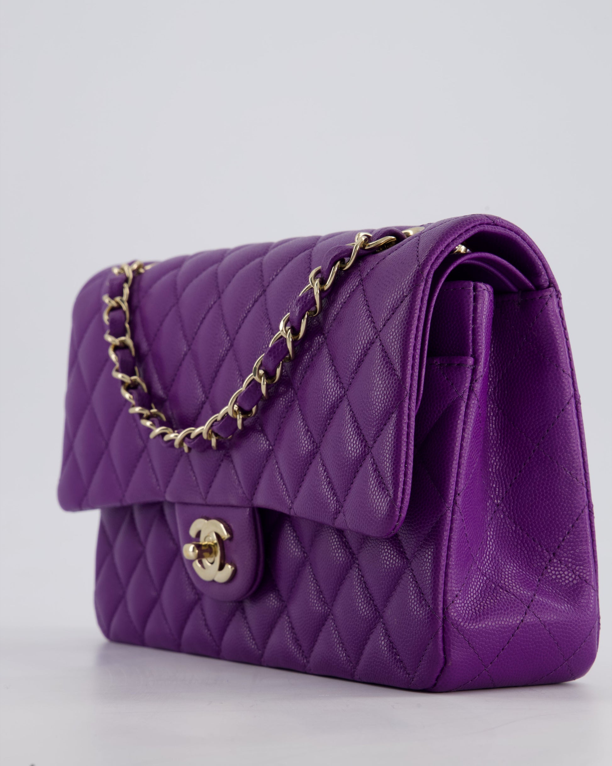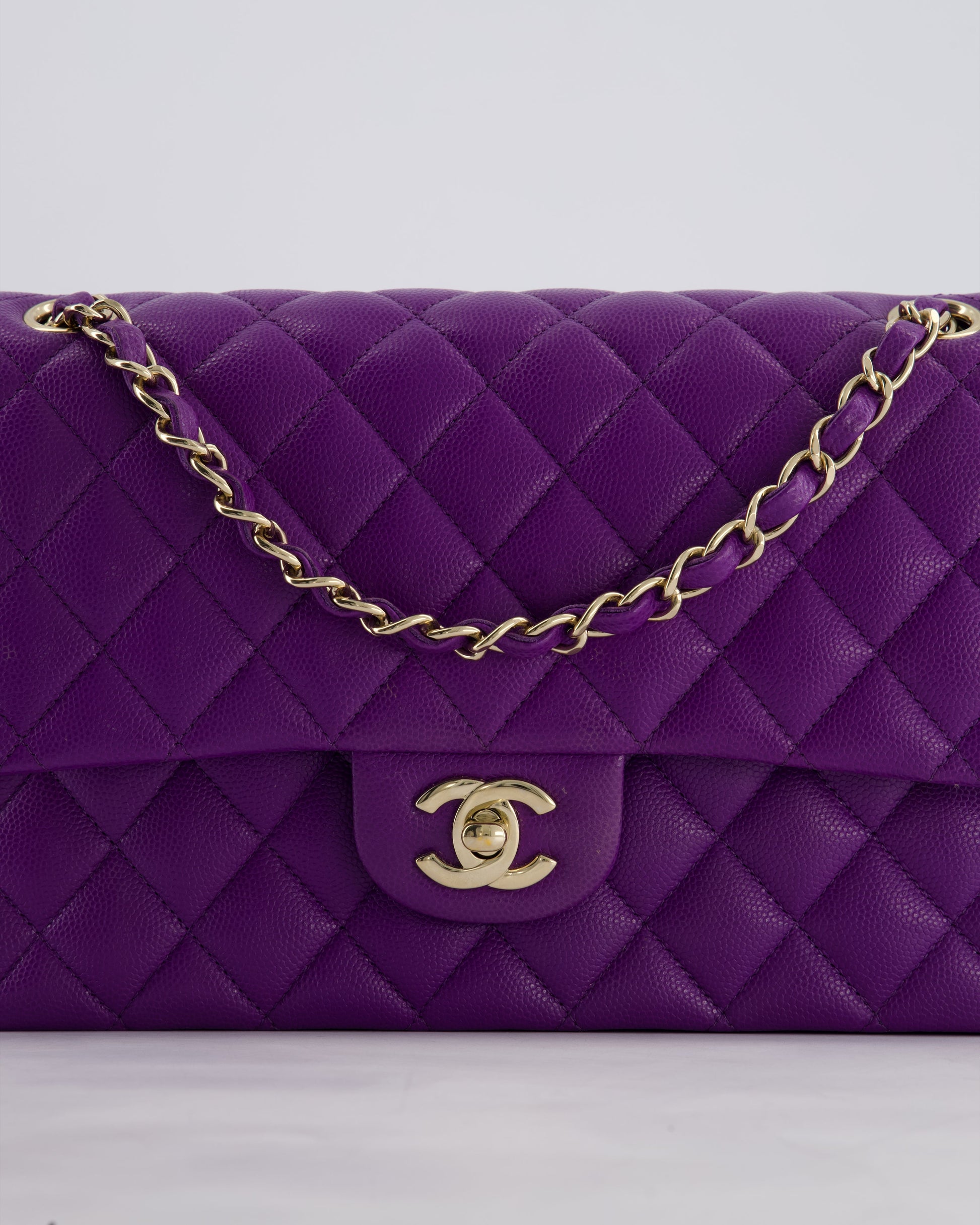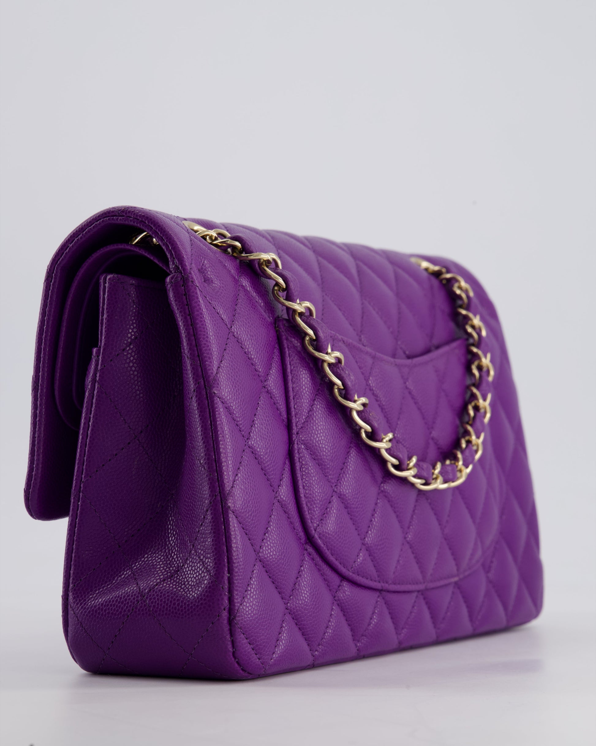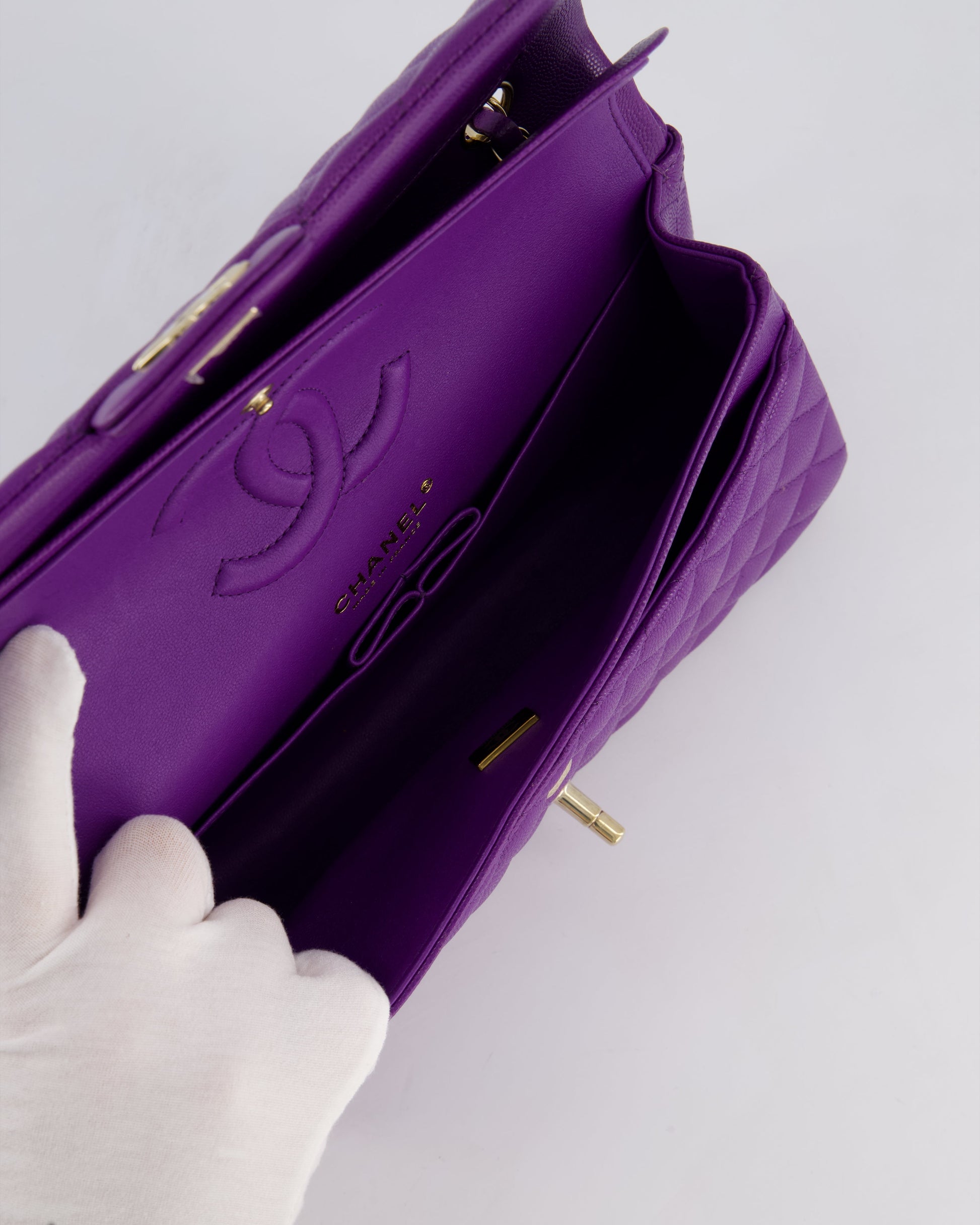 *HOT COLOUR* Chanel Purple Medium Classic Double Flap Bag in Caviar Leather with Champagne Gold Hardware