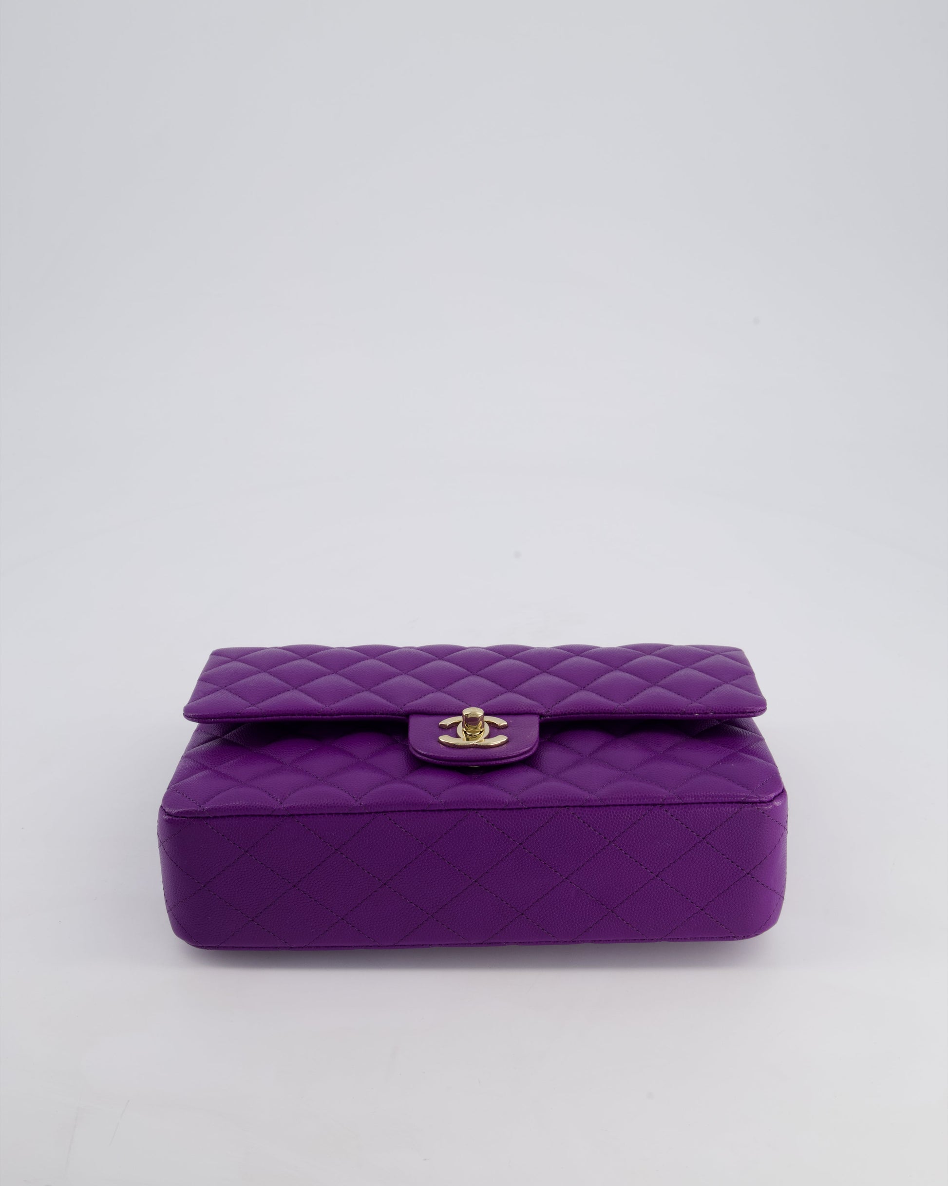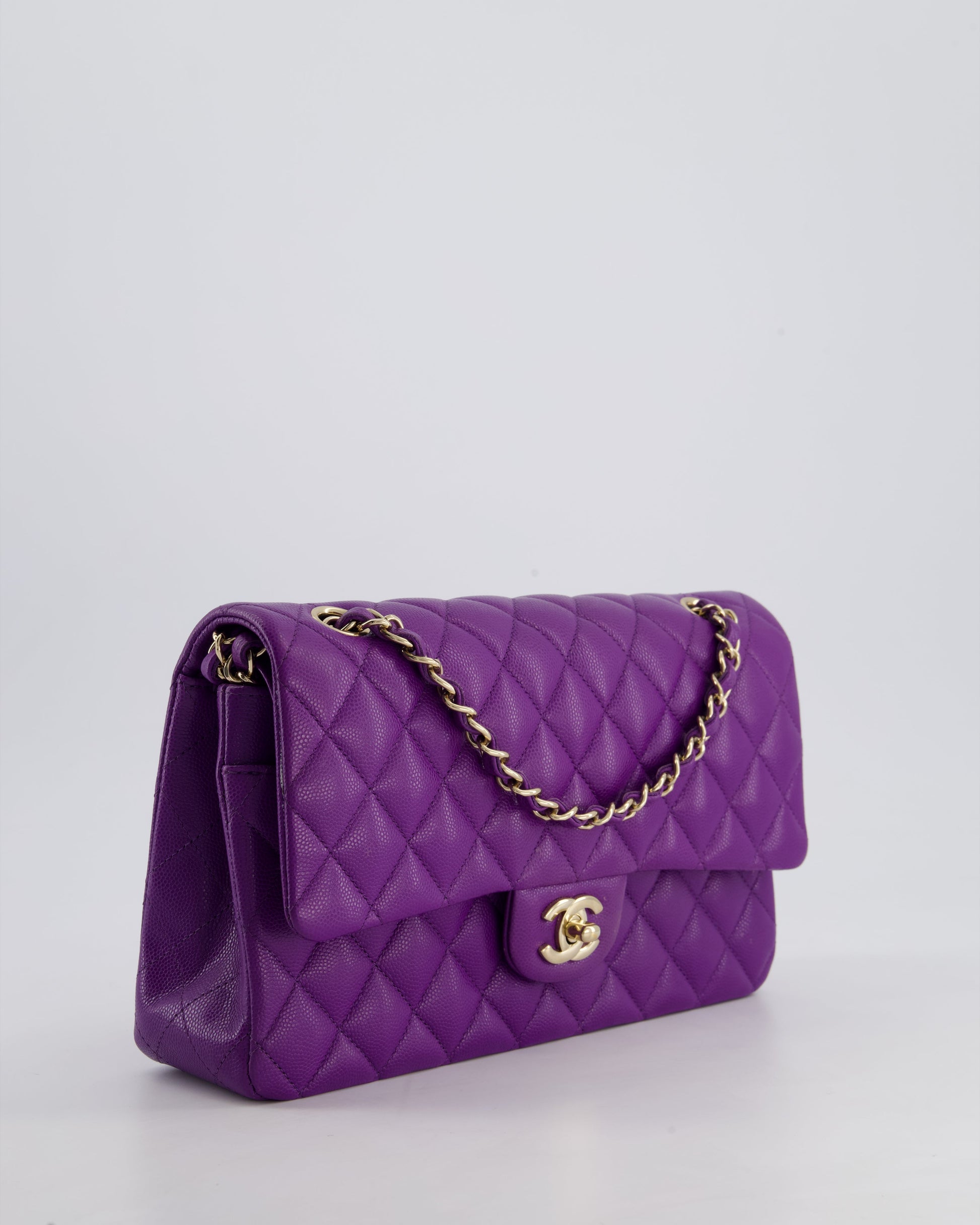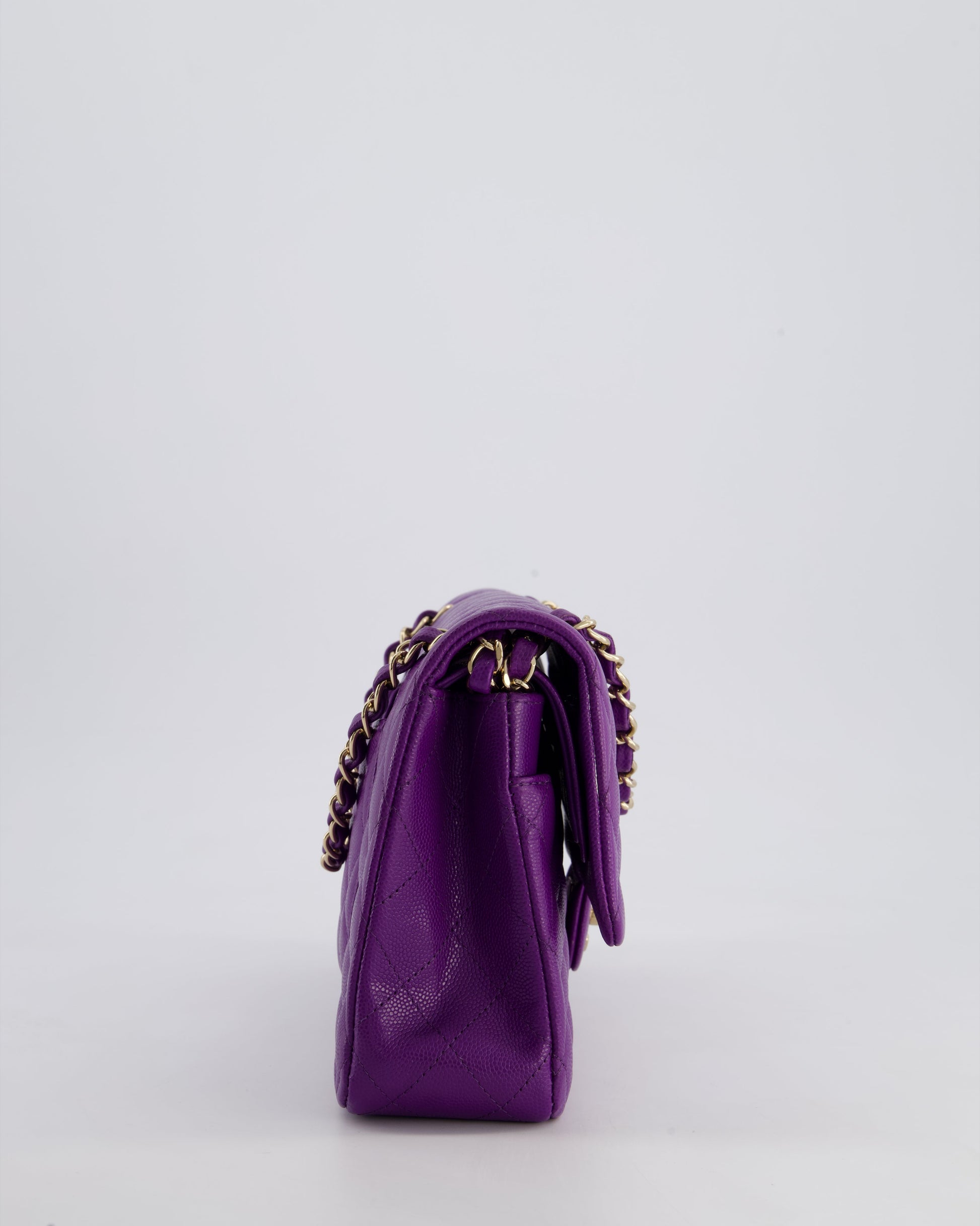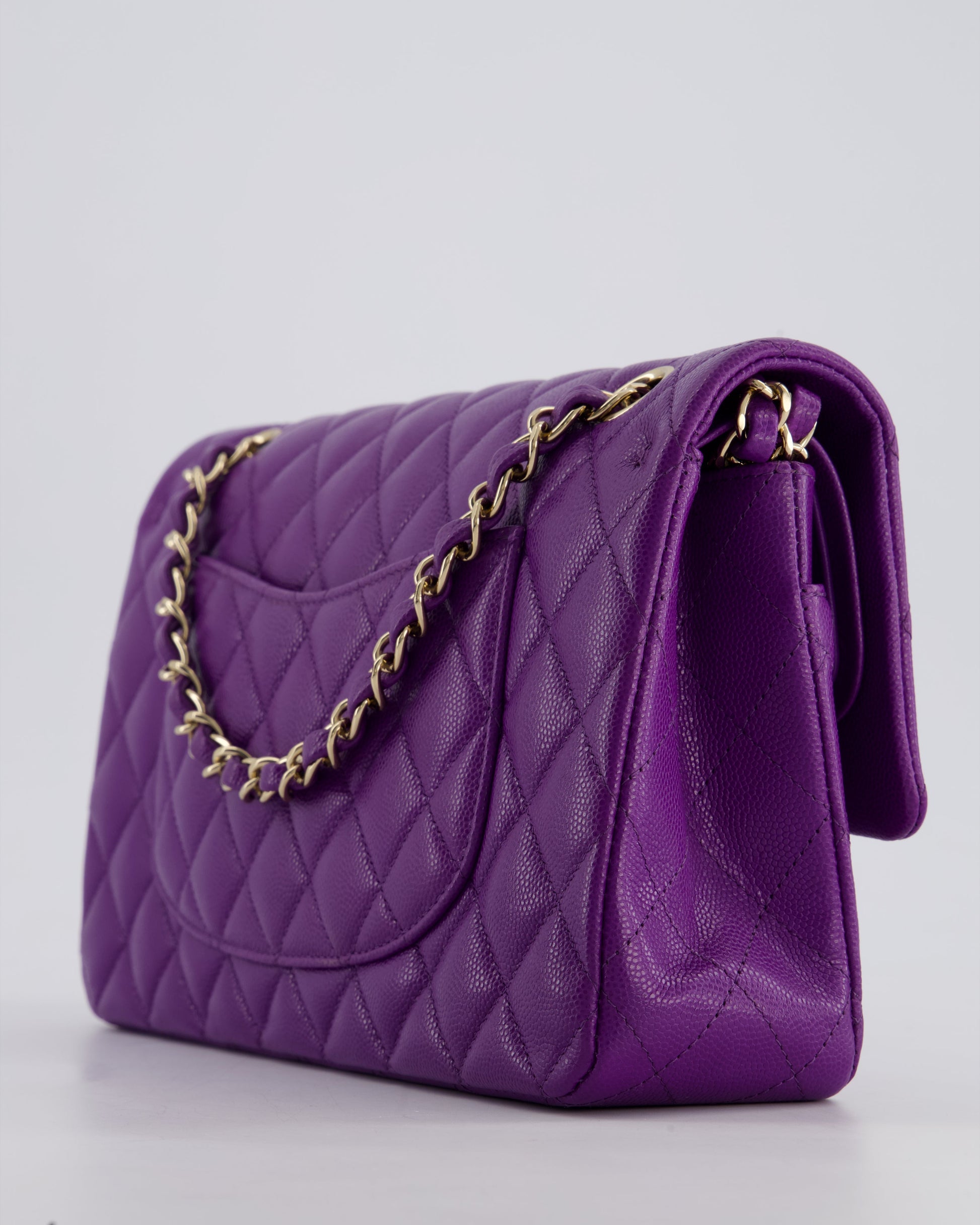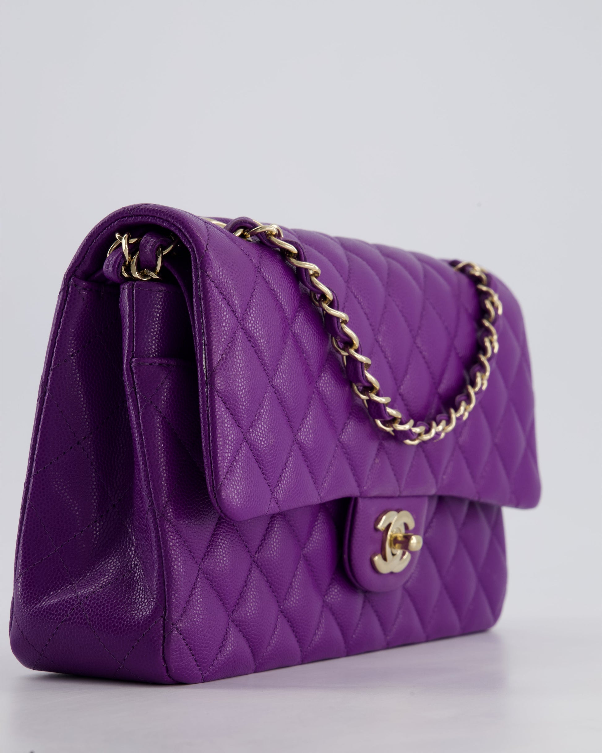 *HOT COLOUR* Chanel Purple Medium Classic Double Flap Bag in Caviar Leather with Champagne Gold Hardware