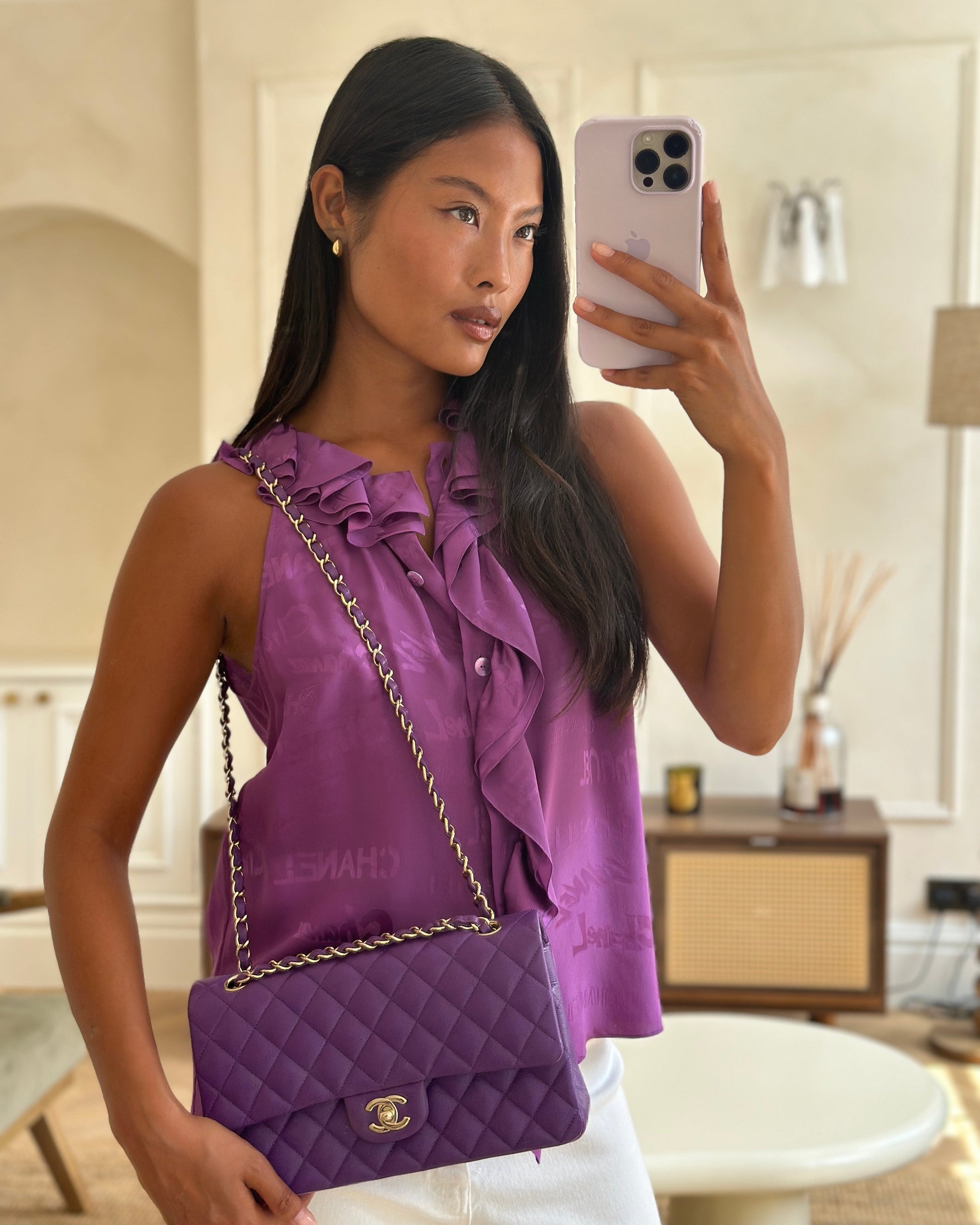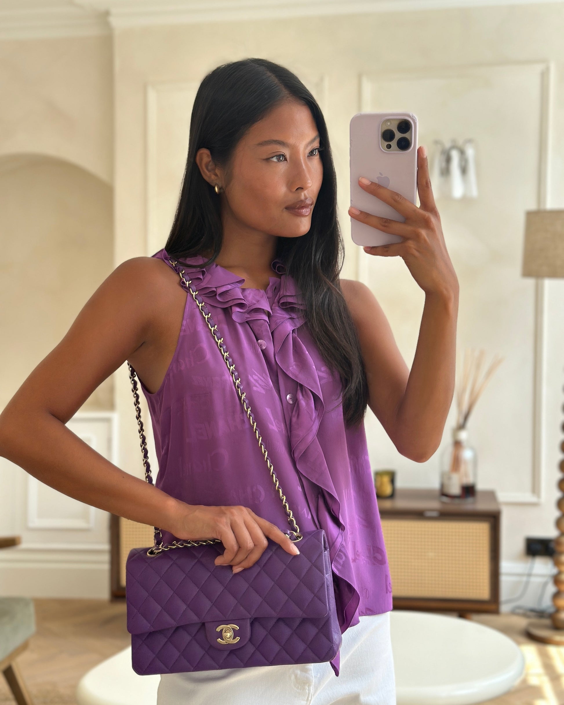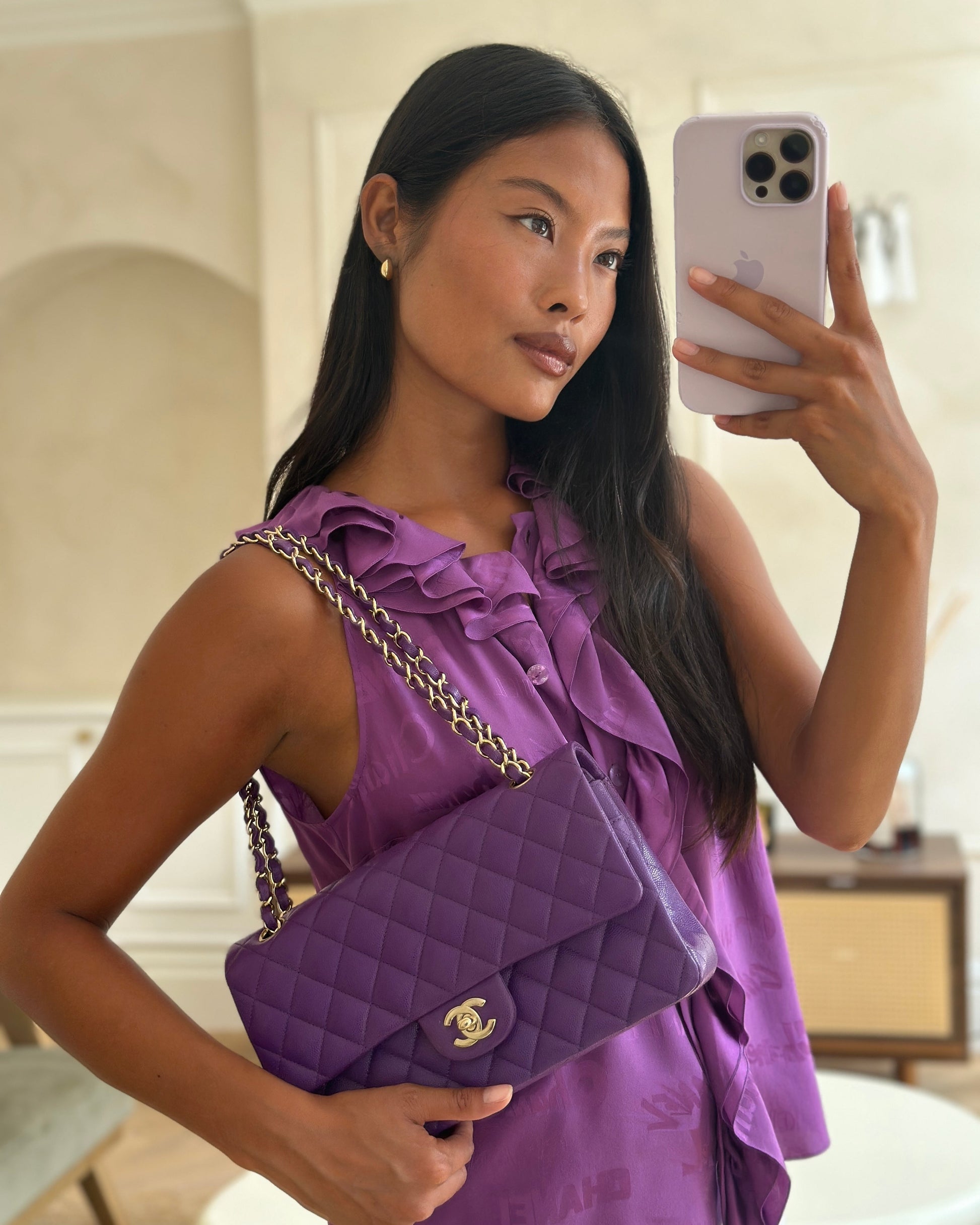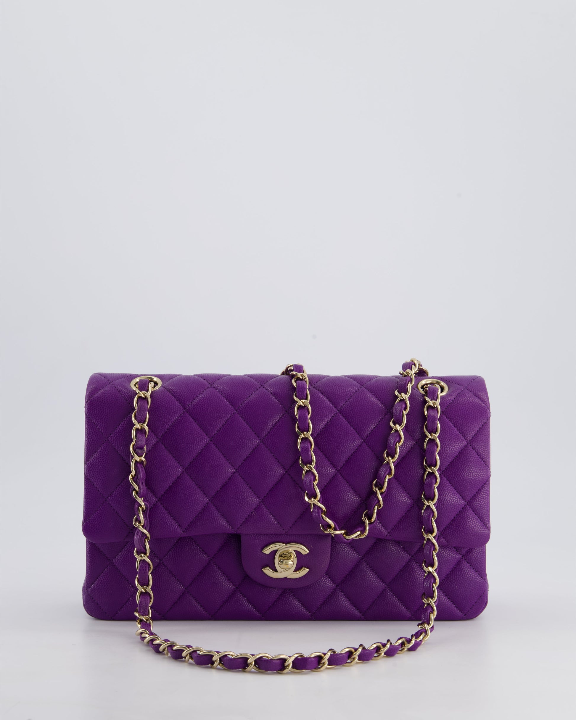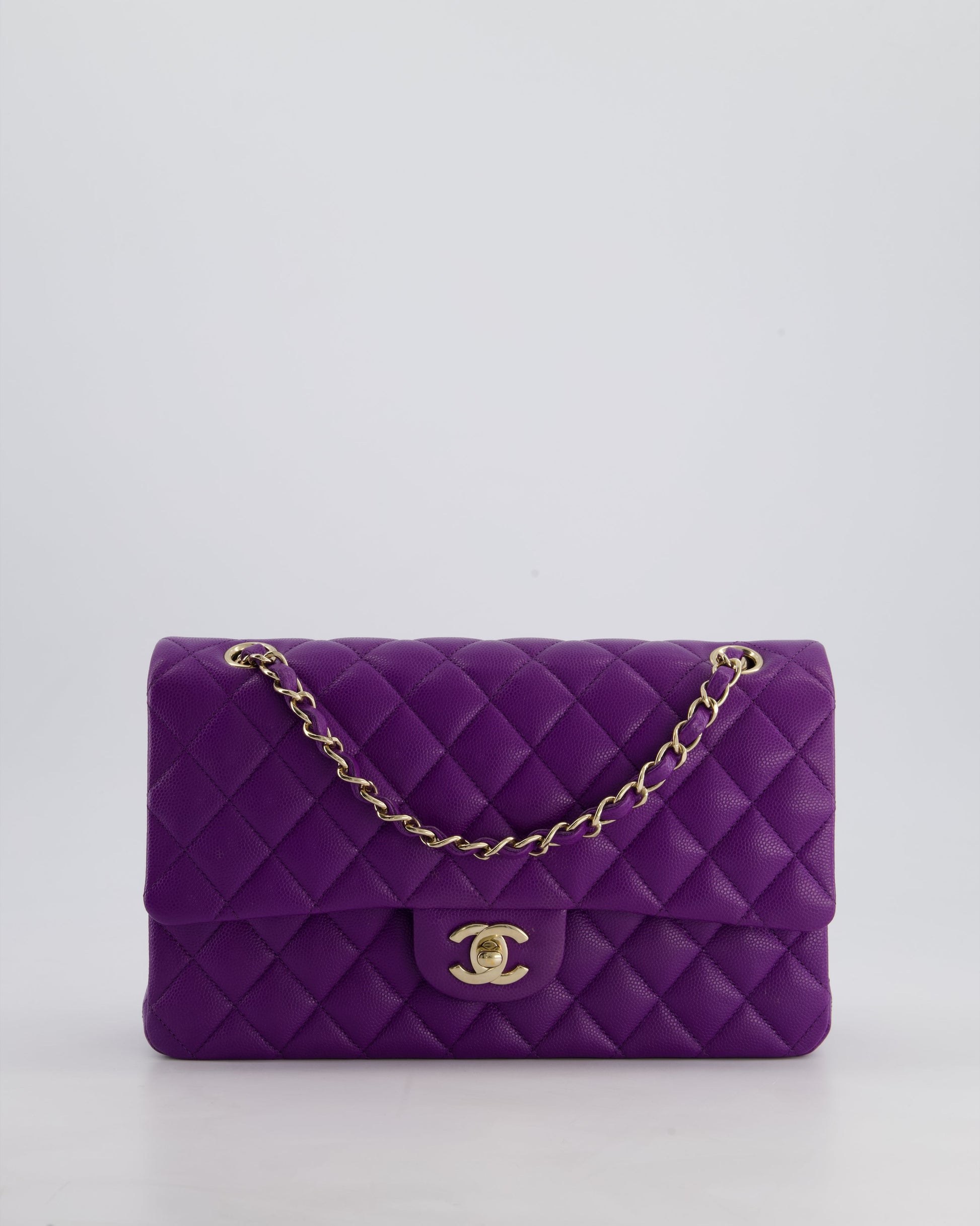 *HOT COLOUR* Chanel Purple Medium Classic Double Flap Bag in Caviar Leather with Champagne Gold Hardware