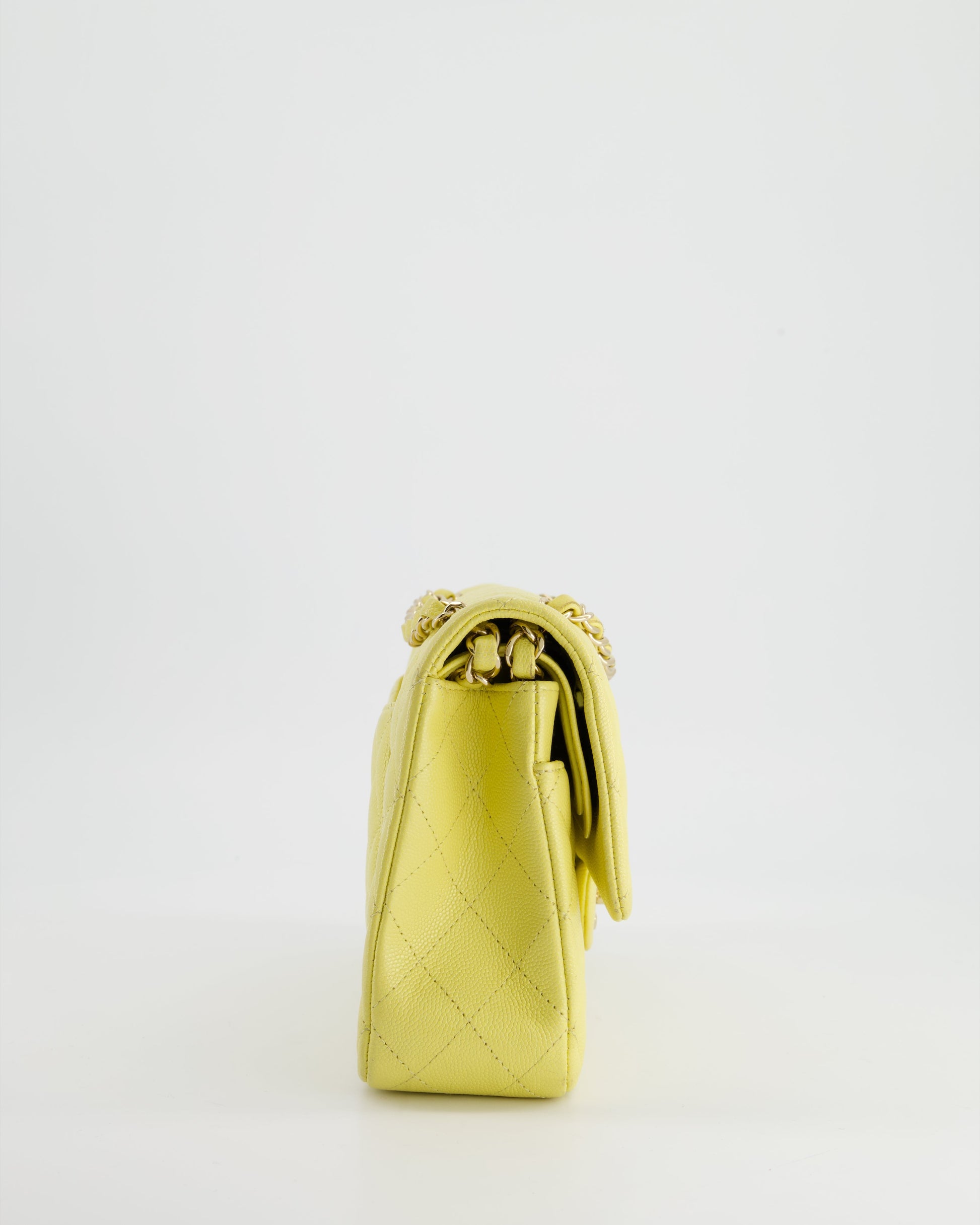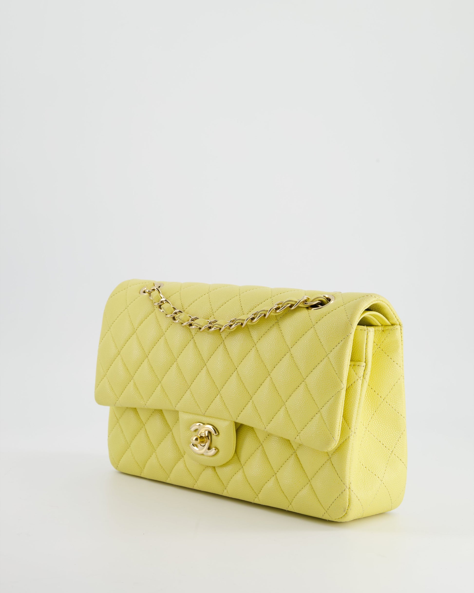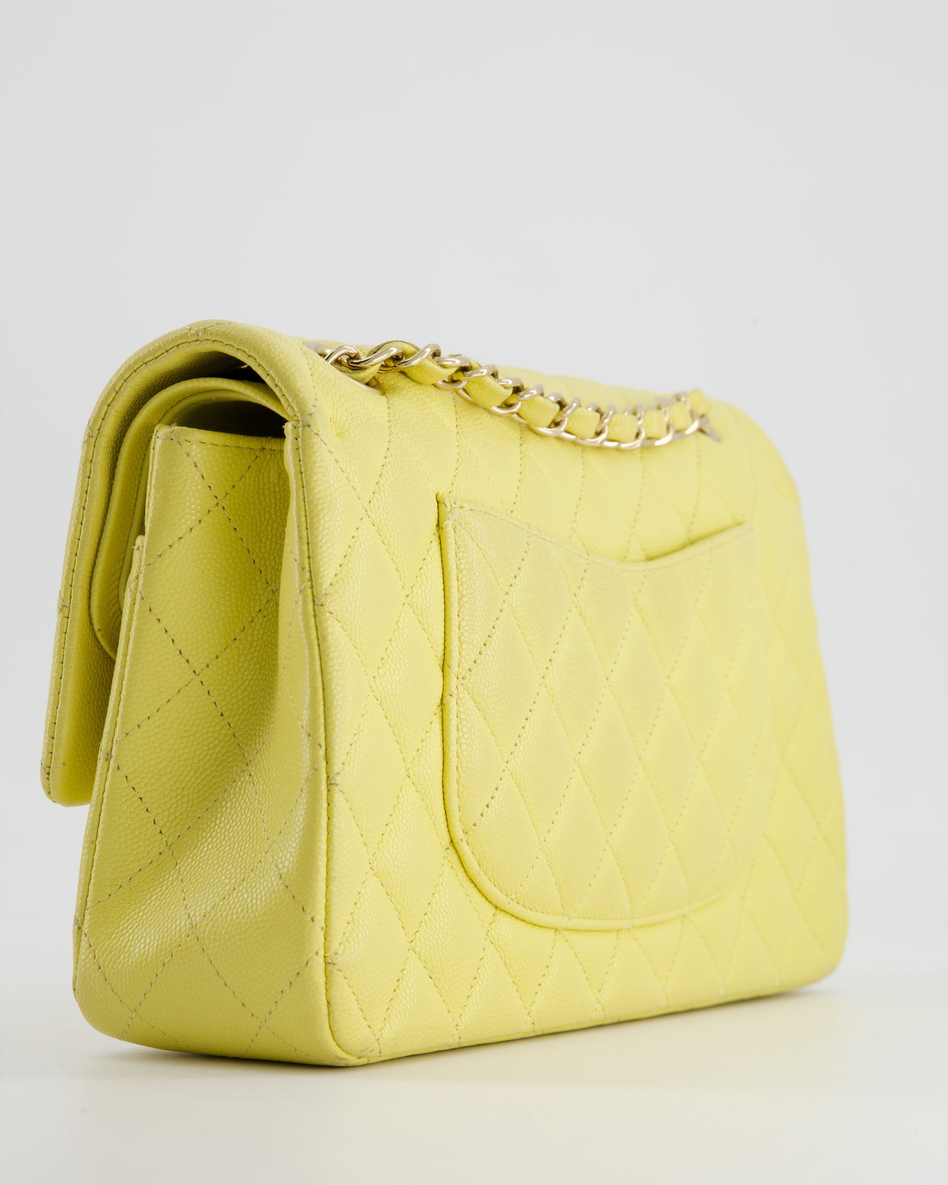 Chanel Sorbet Yellow Medium Classic Double Flap Bag in Caviar Leather with Champagne Gold Hardware