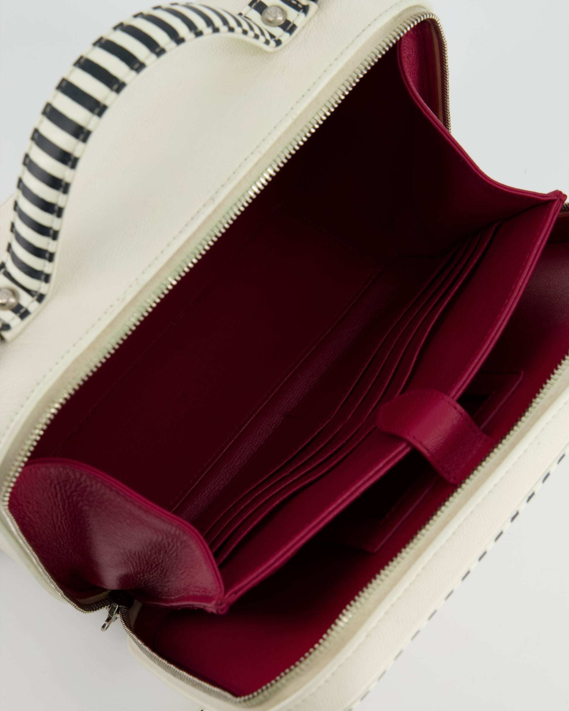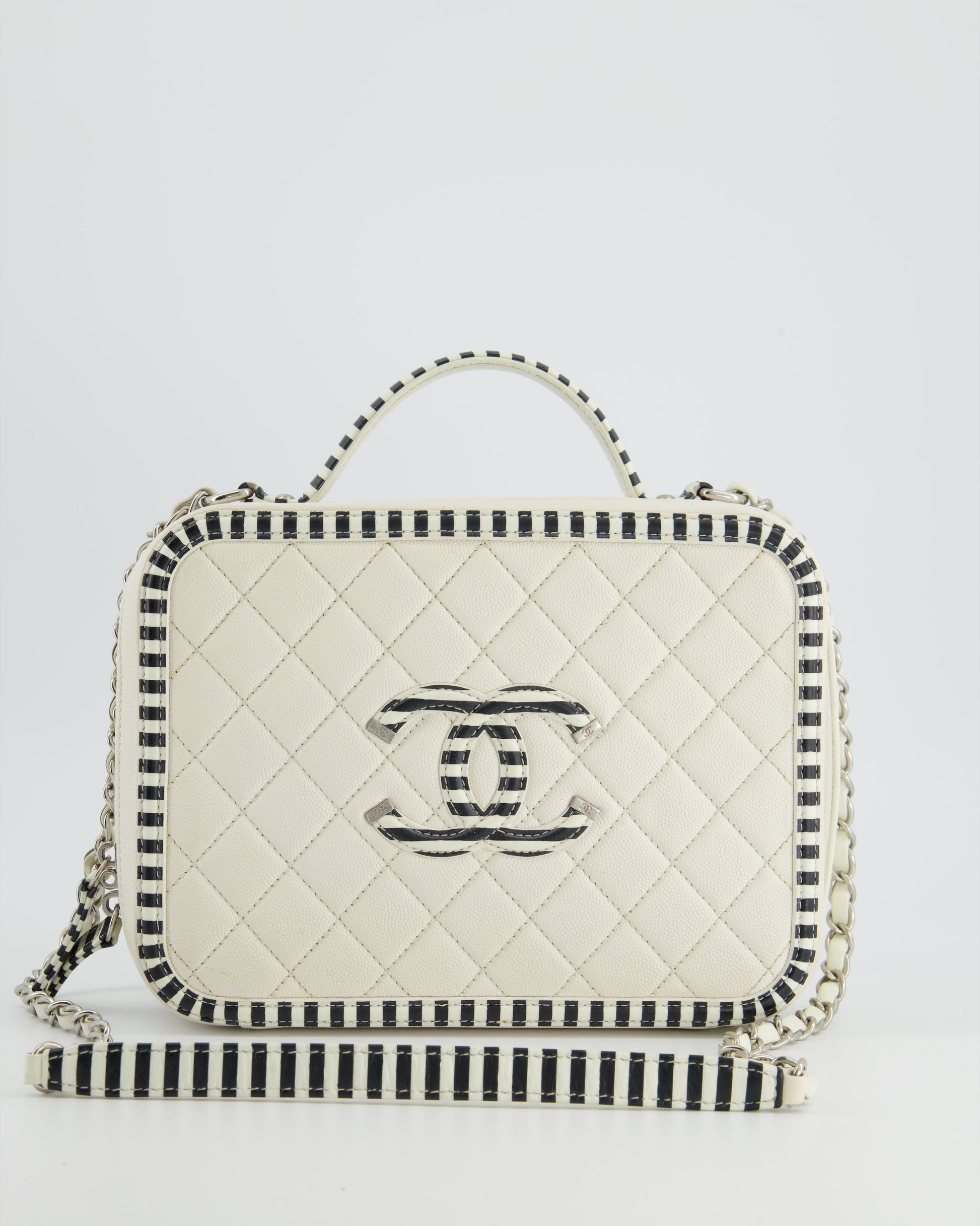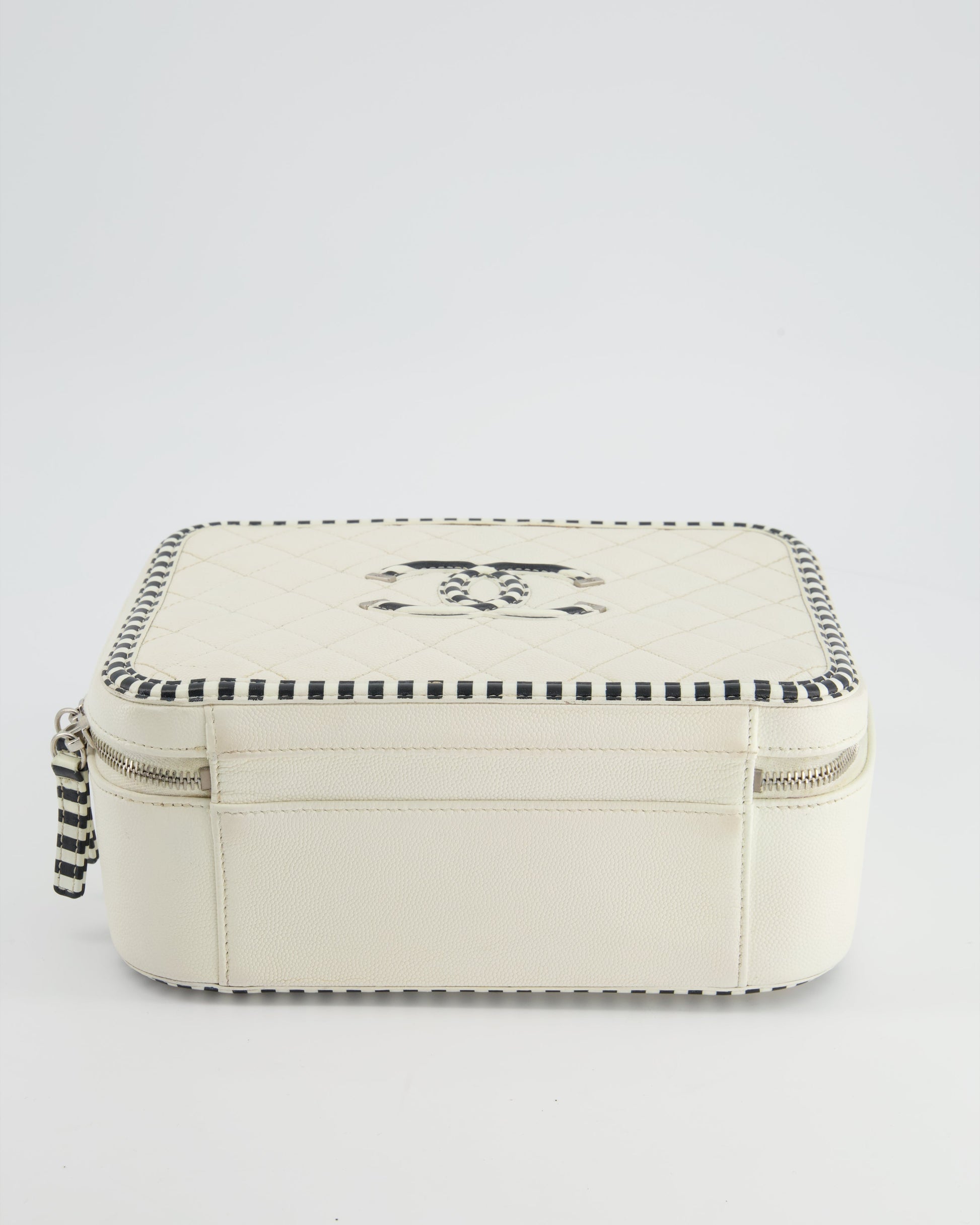 *HOT* Chanel White Caviar Vanity Case with Zebra Motif CC Logo and Silver Hardware