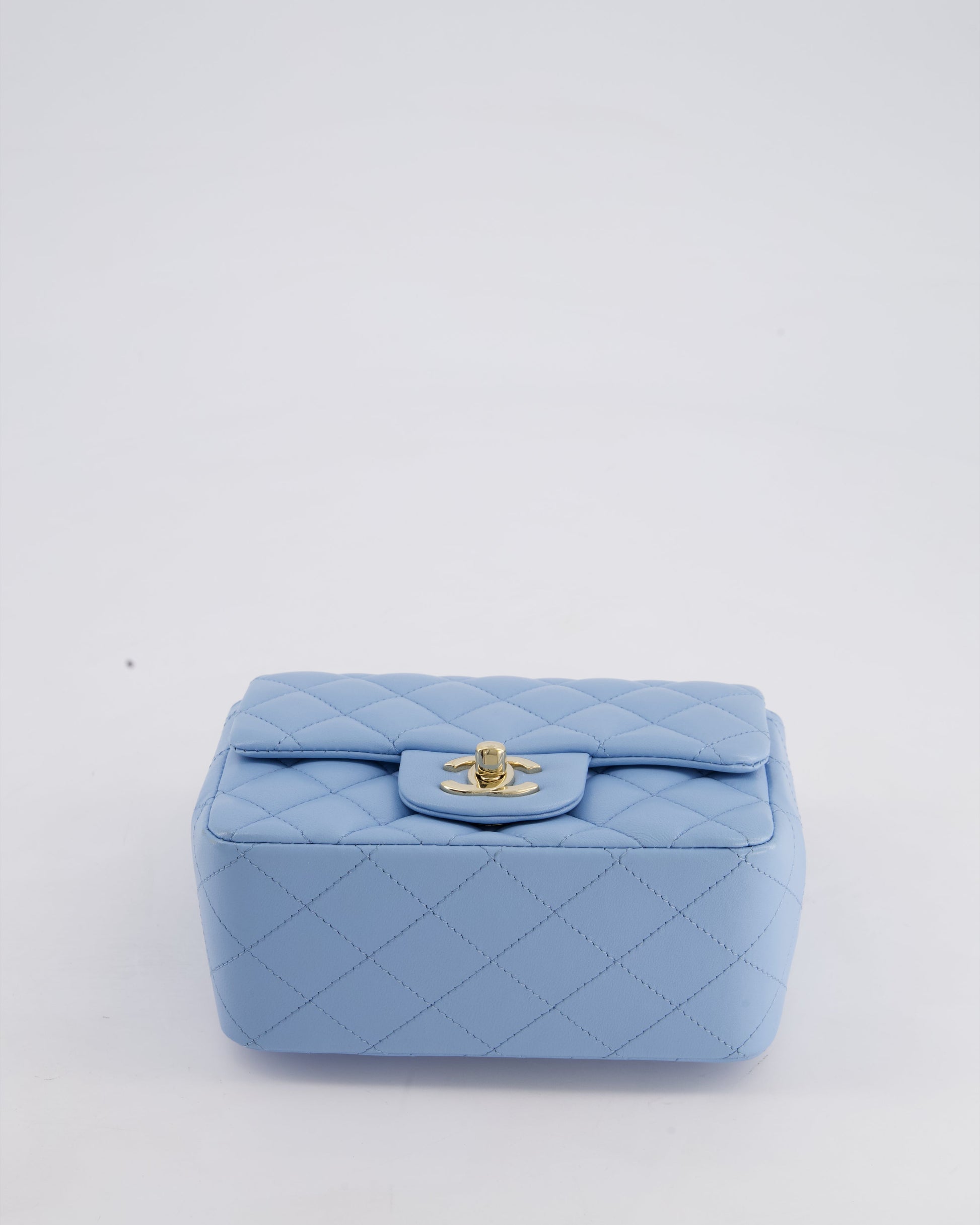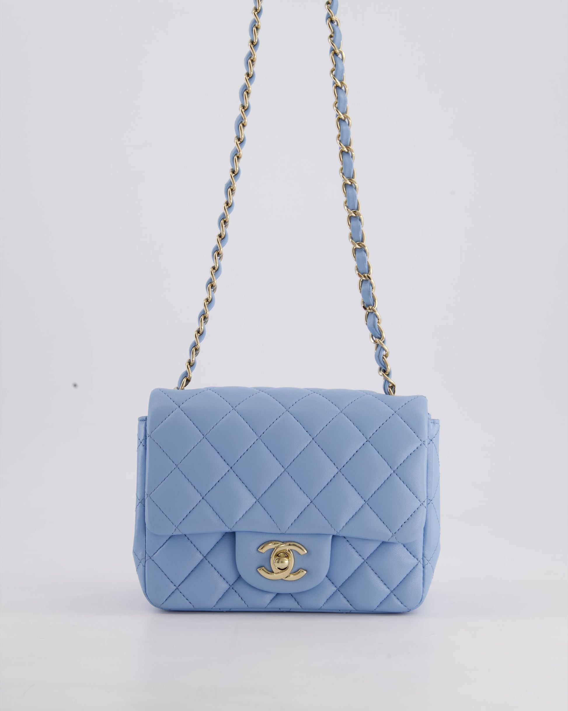 *HOT COLOUR* Chanel Sky Blue Mini Square Bag in Lambskin Leather with Champagne Hardware