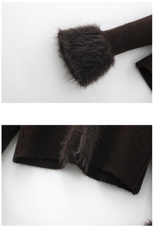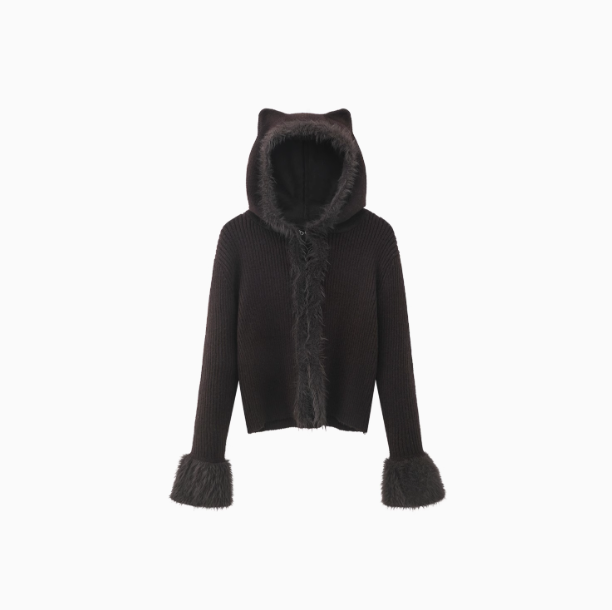 Hot Girl Style Coffee Cat Ear Hooded Knitted Cardigan ED0485