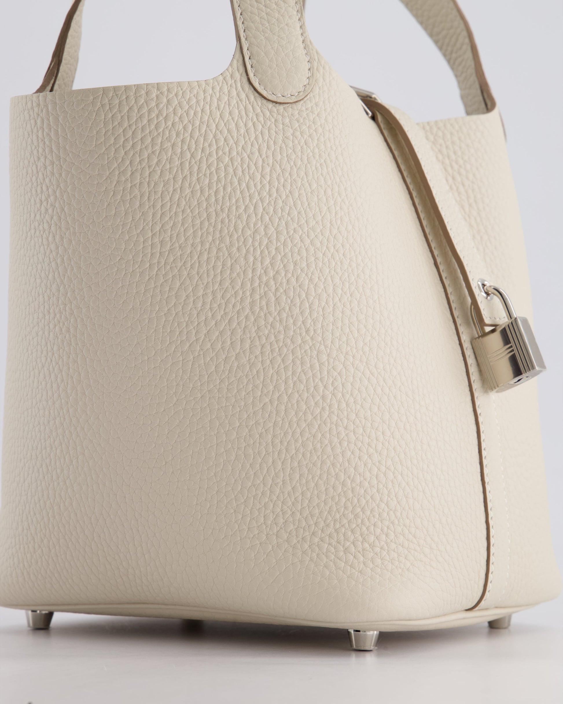 *HOT* Hermès Picotin Lock Bag 18cm in Craie Clemence Leather with Palladium Hardware