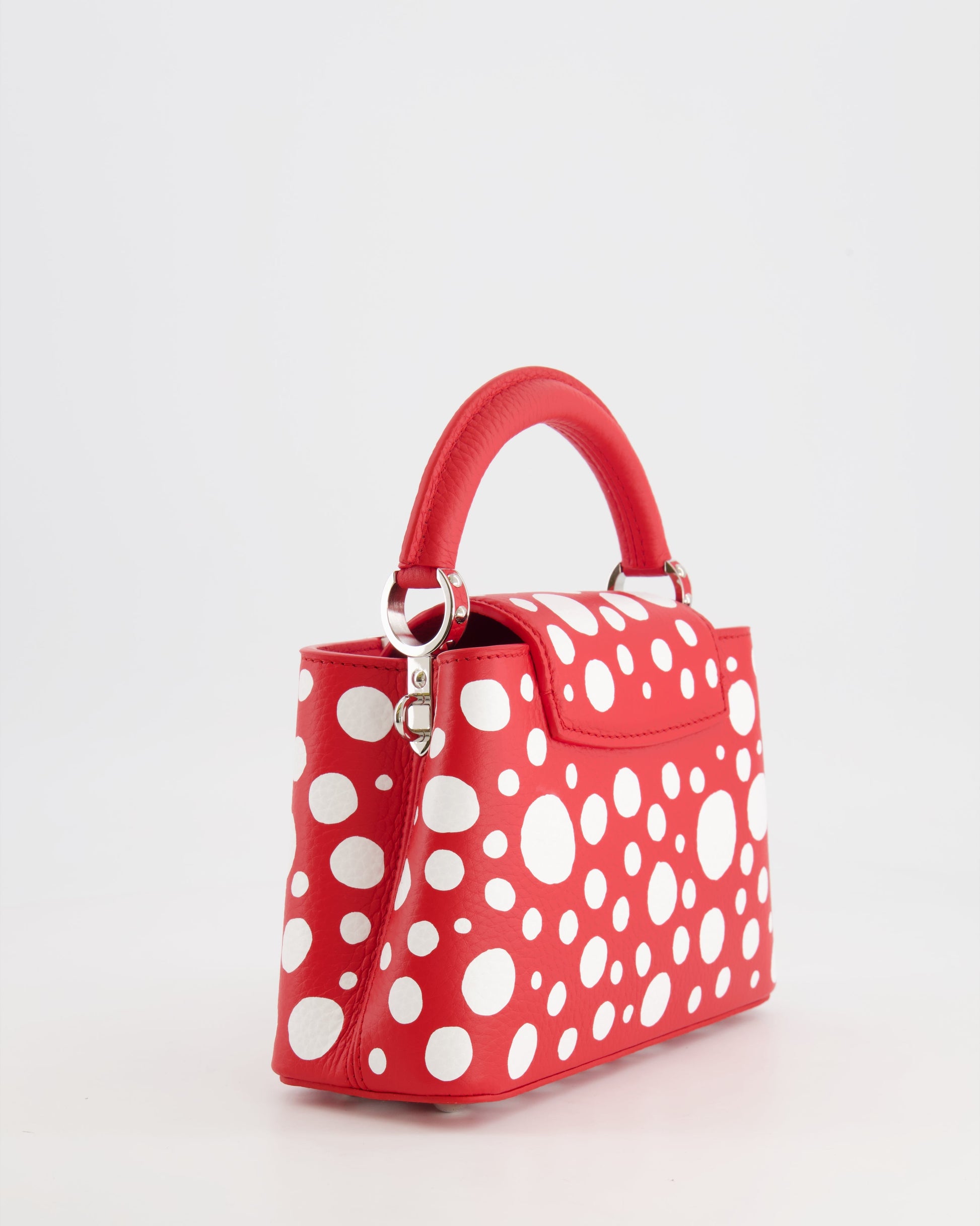 *HOT* Louis Vuitton X Yayoi Kusama Red and White Mini Capucines Bag with Silver Hardware