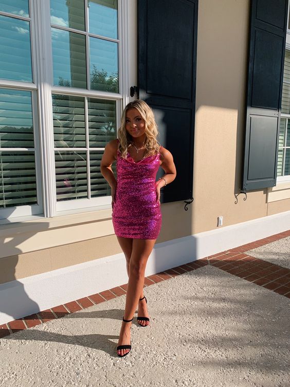 Hot Pink 16th Birthday Dress Ourtfit Tight Sheath Homecoming Dress fg1473