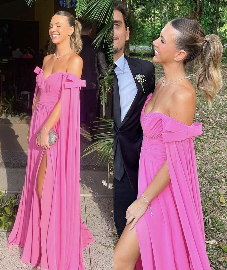 Hot Pink A Line Off Shoulder Prom Party Dress Long Formal Evening Dress fg7508