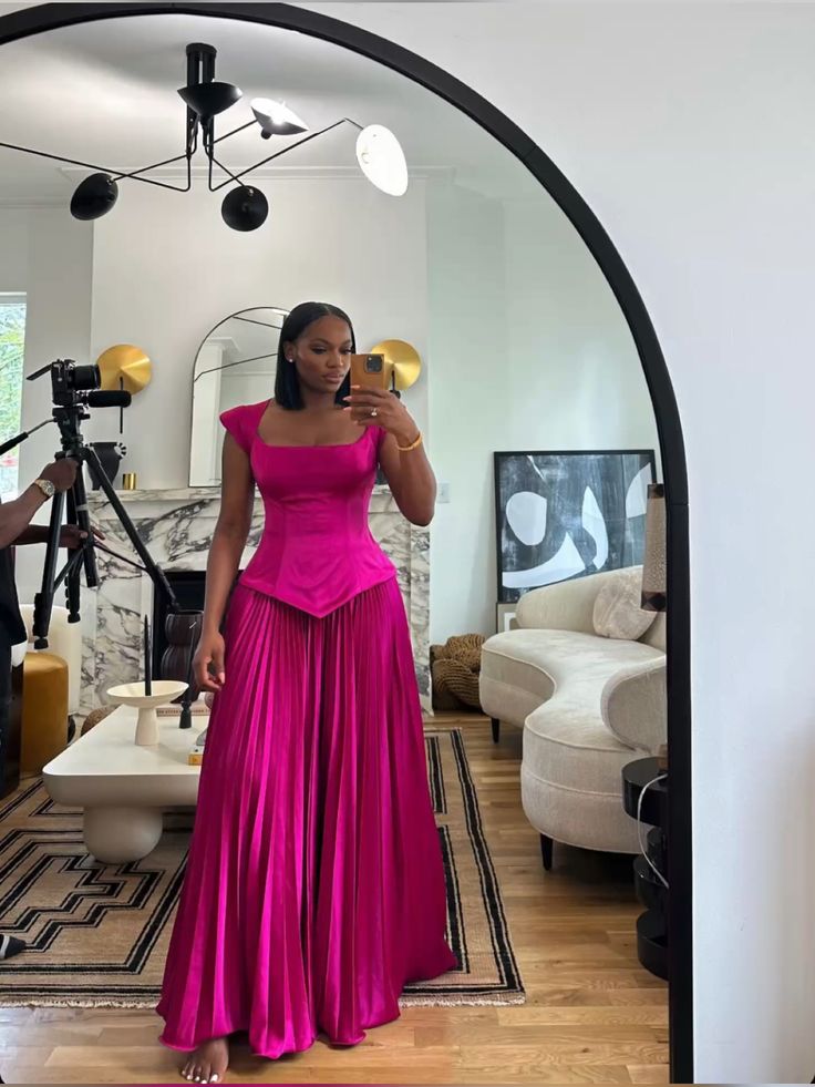 Hot Pink A Line Prom Dress Elegant Evening Party Dress fg7319