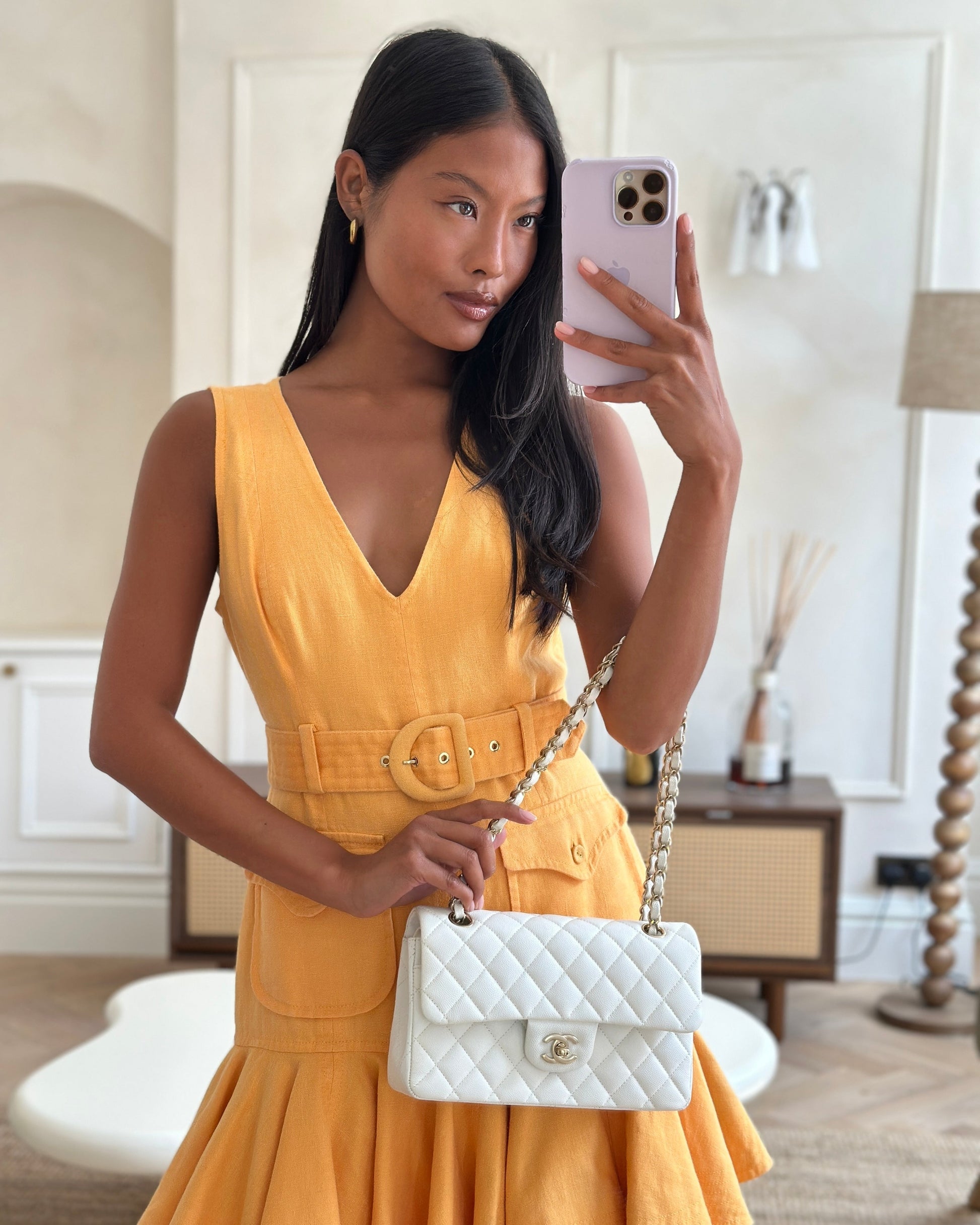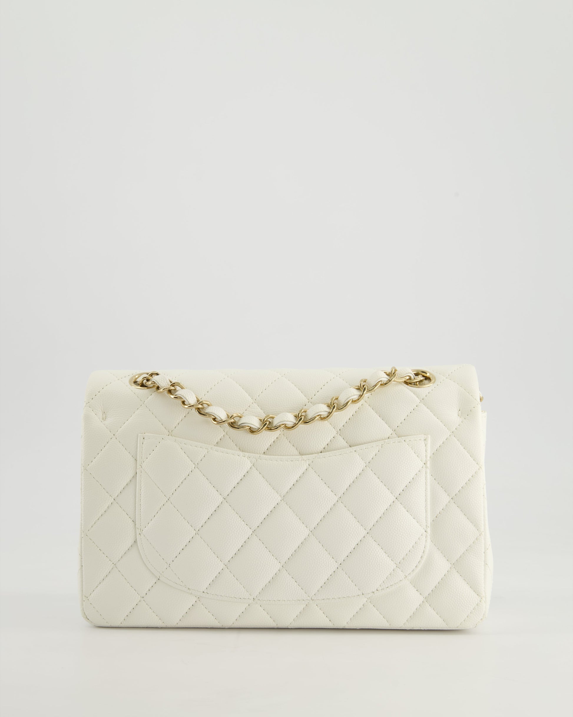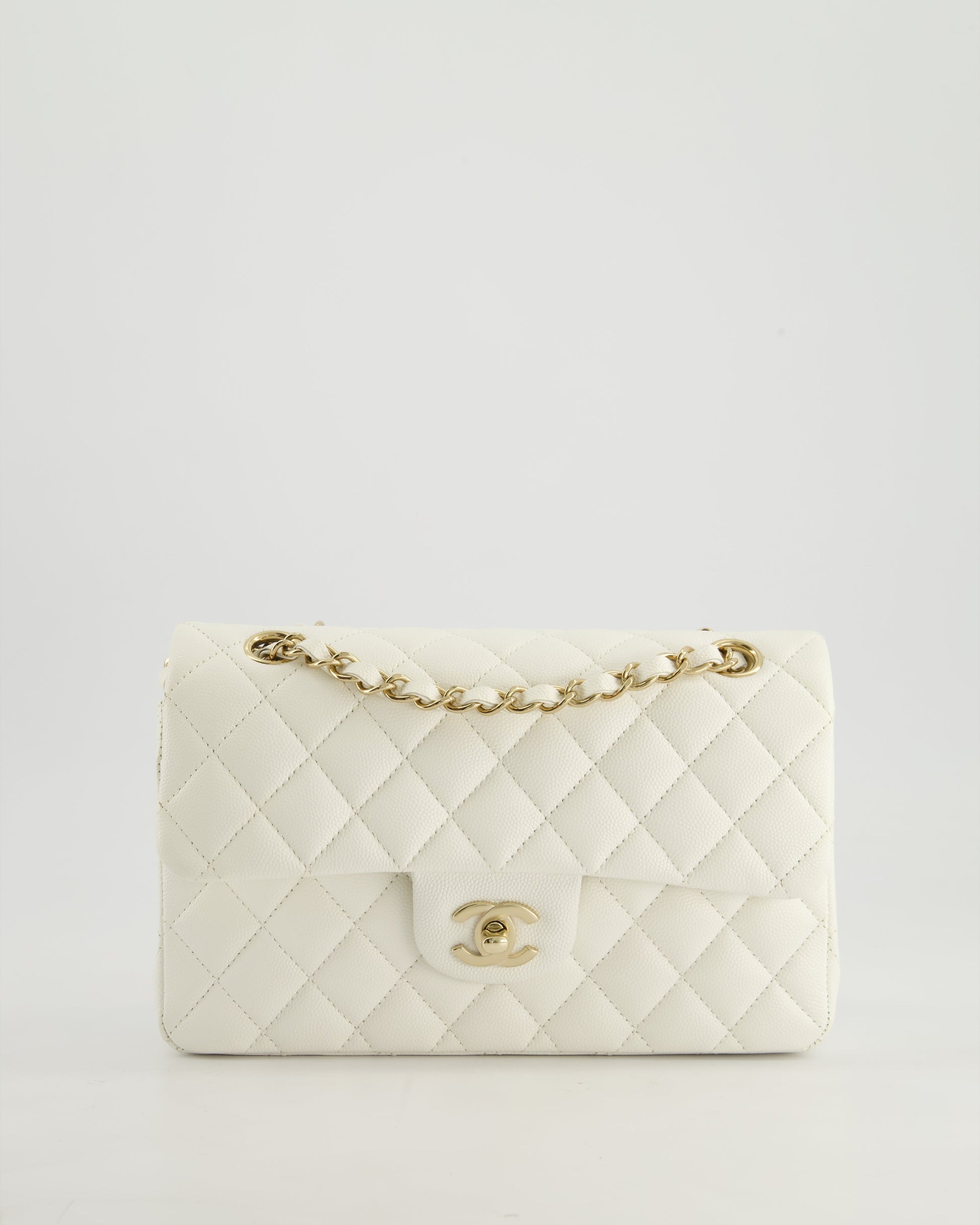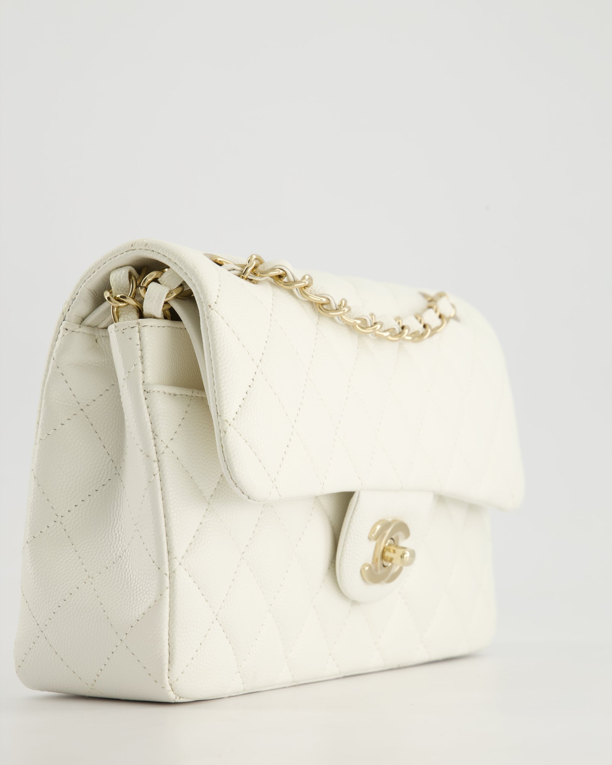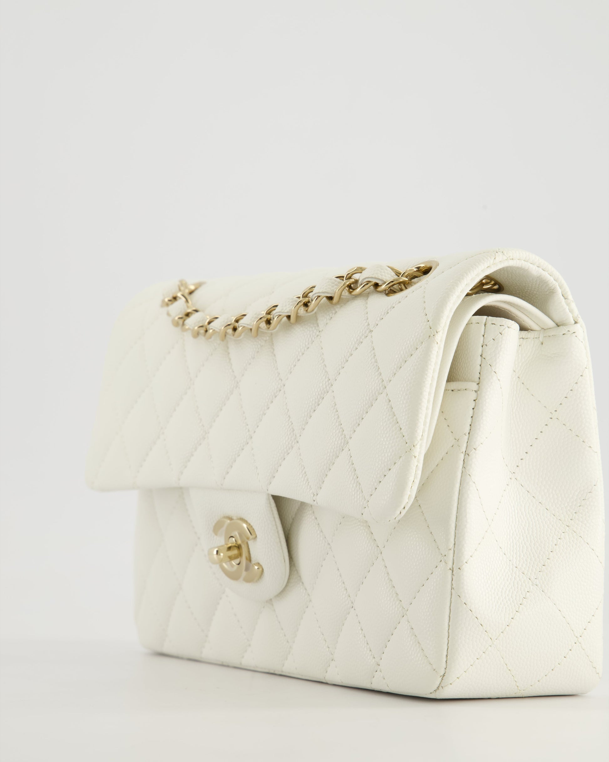 *HOT & RARE* Chanel White Small Classic Double Flap Bag in Caviar Leather with Champagne Gold Hardware