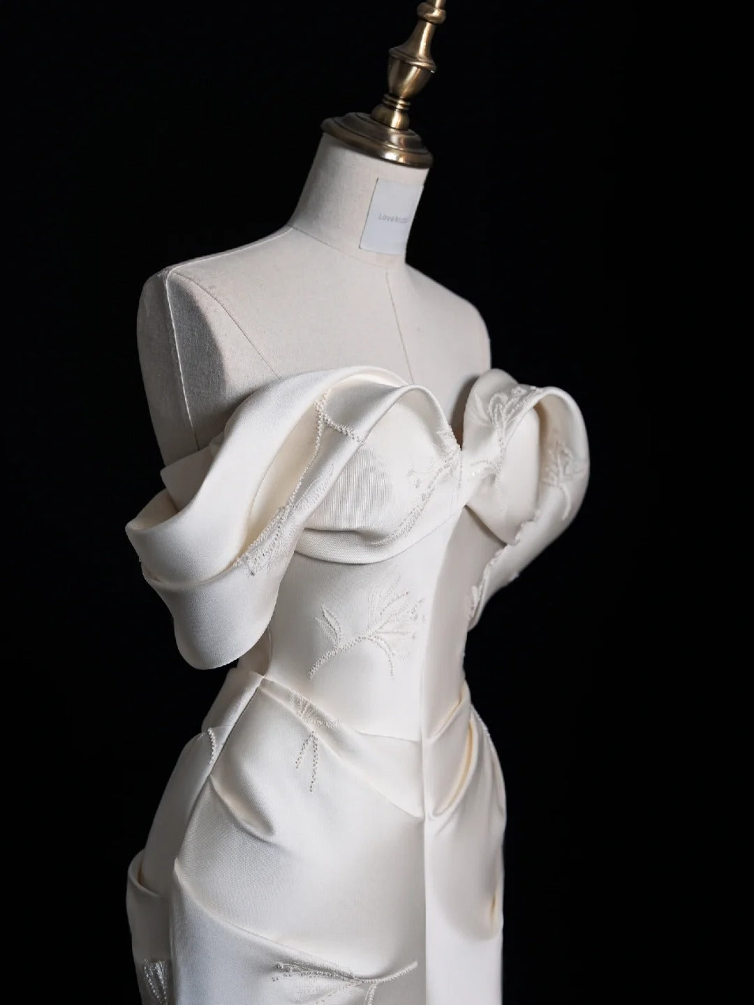 Ivory Elegant Satin Long Mermaid Slim Floor Length Ball Gown Evening Gown Wedding Dress gh4199