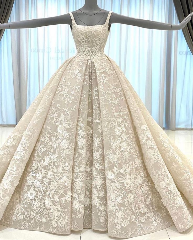 Ivory gorgeous elegant exquisite lace A-line long ball gown evening dress wedding dress gh3200