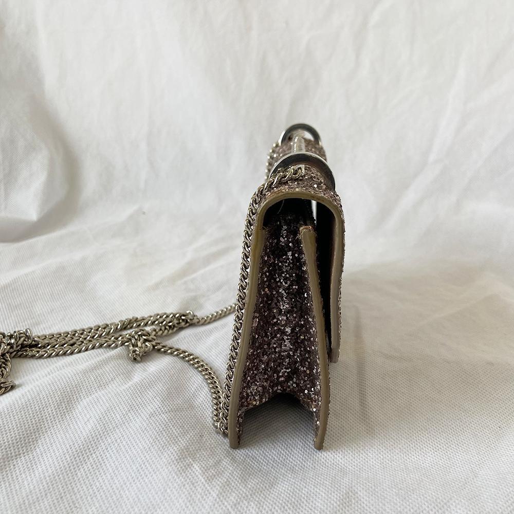 Description : Jimmy Choo Finley Mix Star Coarse Glitter mini cross body bag, front flap features two label-engraved coin charms and chain-link strap can be worn both crossbody or over one shoulder. The interior is lined with canvas and has open pockets