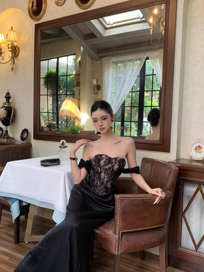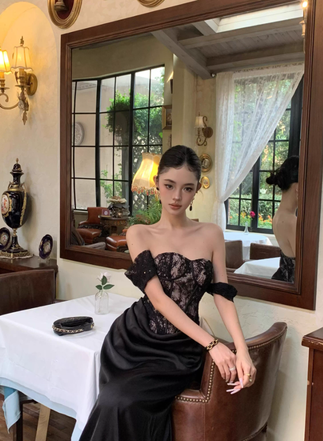 Khaki Elegant Sheath Off the Shoulder Sequin Lace Satin Prom Dress Evening Dress SH3761
