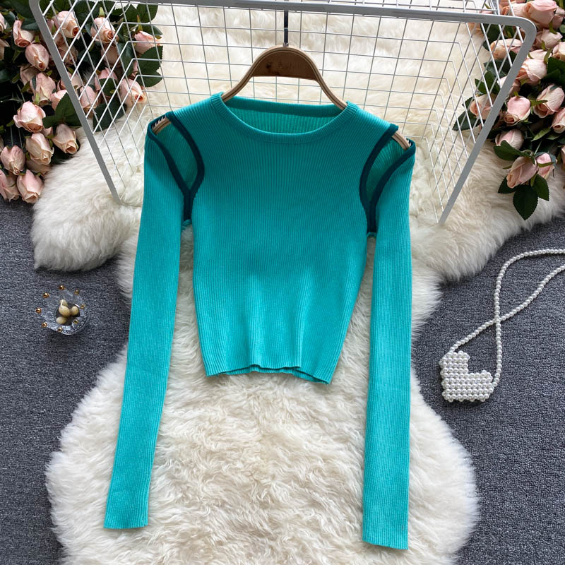 Knitted Blouse women's niche design hollow out color matching long sleeves 1588
