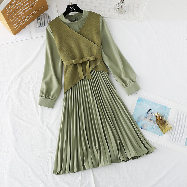 Knitted dress net red dress two piece suit 3875