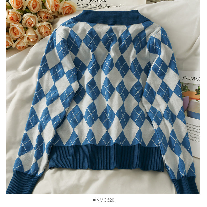 Knitwear women's autumn Lapel long sleeve versatile Pullover Top 2001