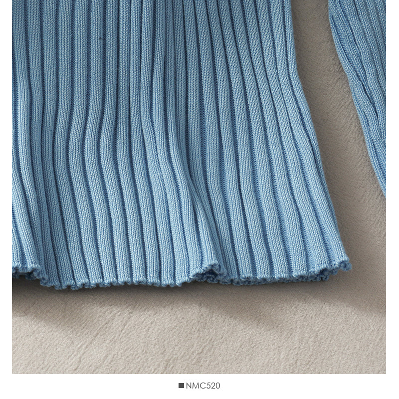 Korean solid color versatile breasted Lapel tight knit women's shirt 1842