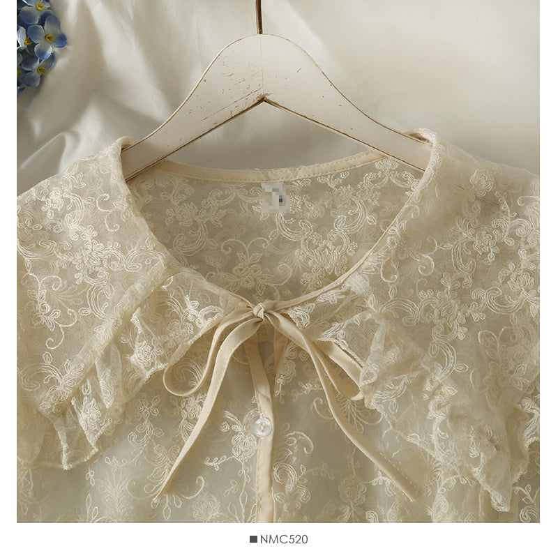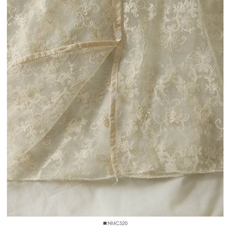 Lace bottomed shirt with vertical stripe knit vest 1714