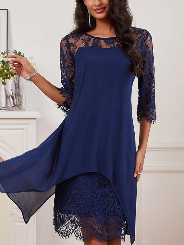 Lace Chiffon Stitching Casual Round Neck 3/4 Long Sleeve Dress
