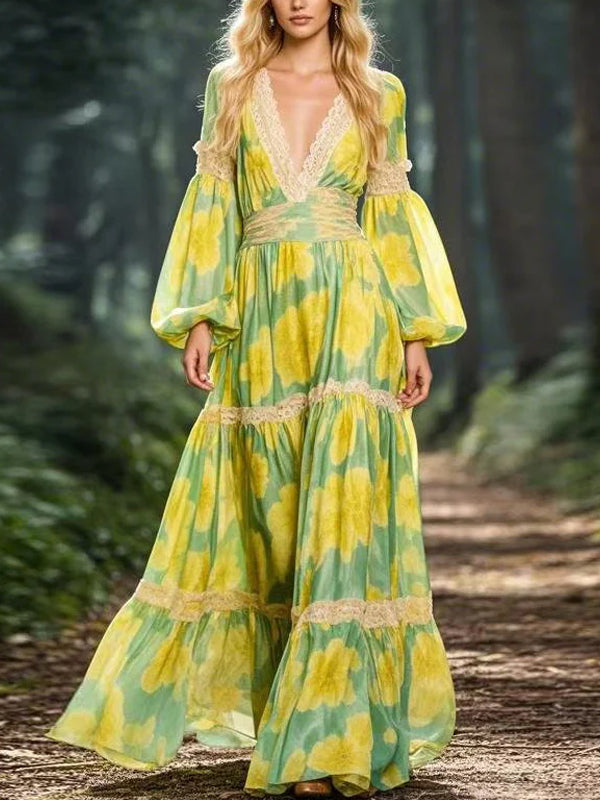 Lace Edge Temperament Print Women's Dress