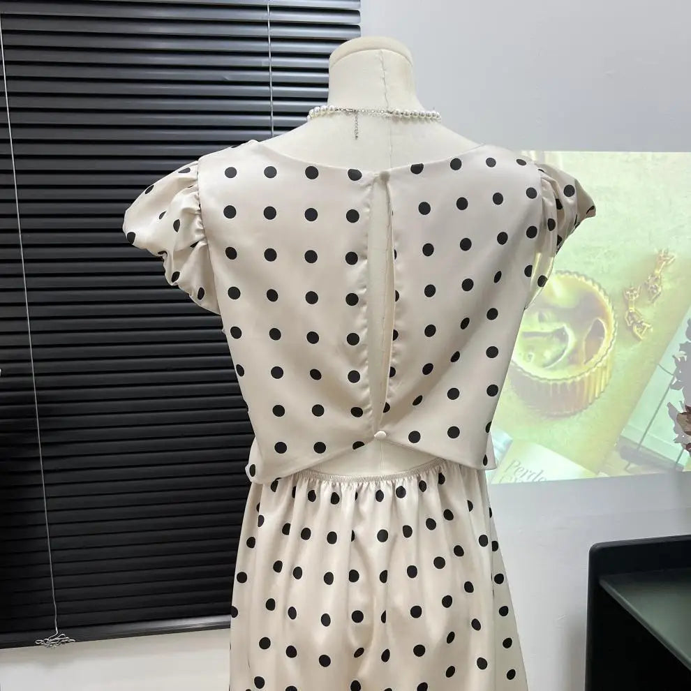 Lace Patchwork Satin Polka Dot A-Line Maxi Dress for Women Elegant Chic Birthday Party Outfit Evening Dress cg25820