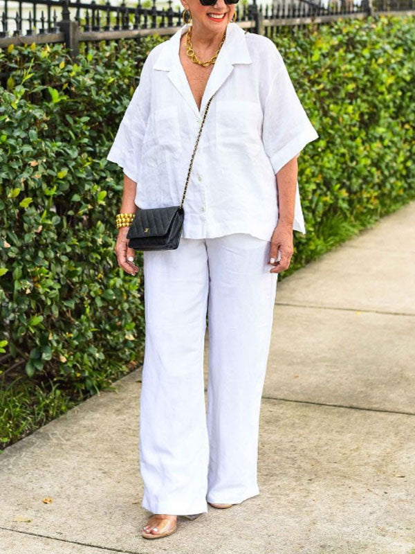 Lapel Cotton Linen Shirt Women's Suits