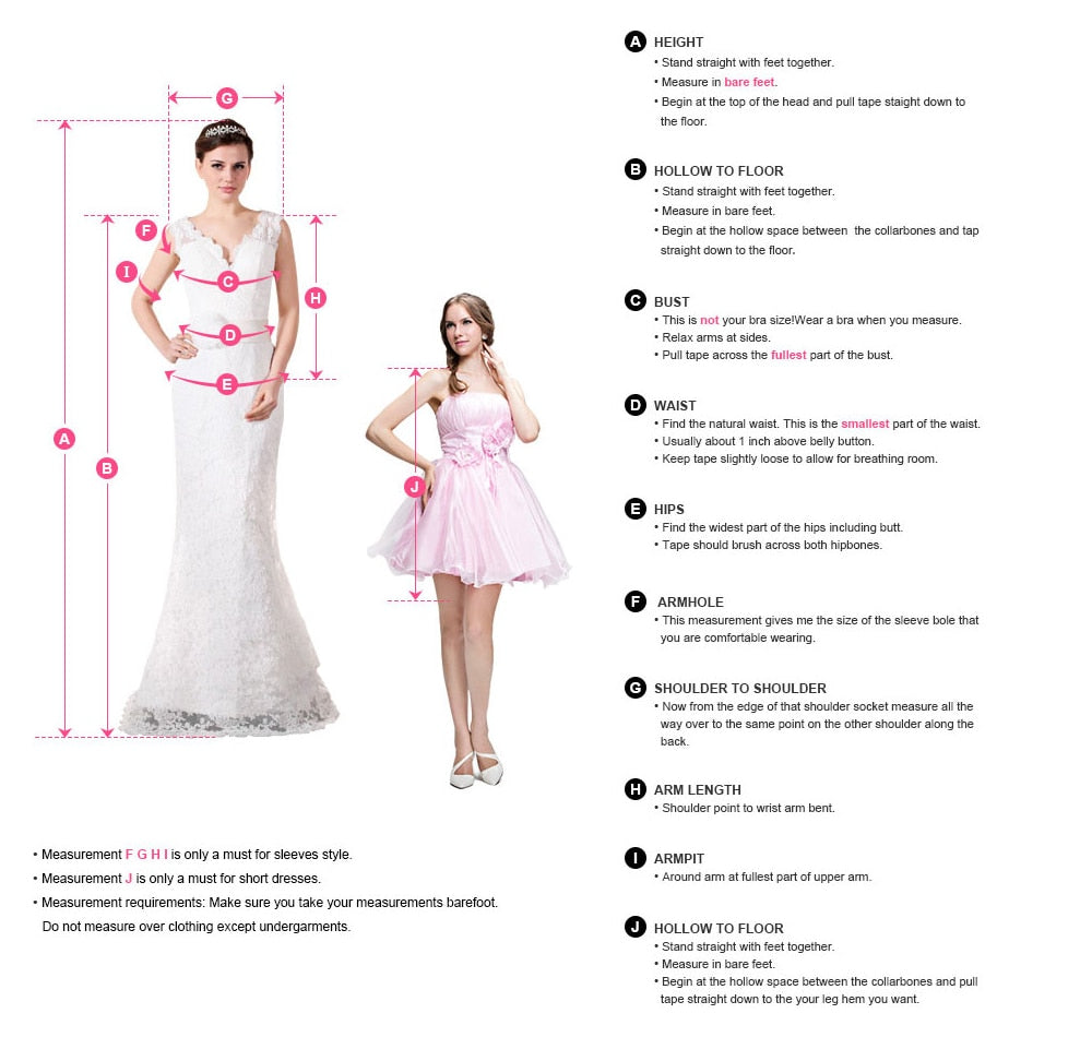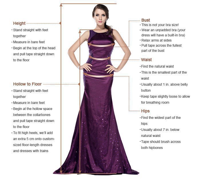 If your size is way off the standard size chart, please refer to below information and send me your exact measurements.We strongly recommend that you have your measurements taken by a professional with your under wear on before buying any gown online. Please follow the measurement instructions, and measure yourself carefully.