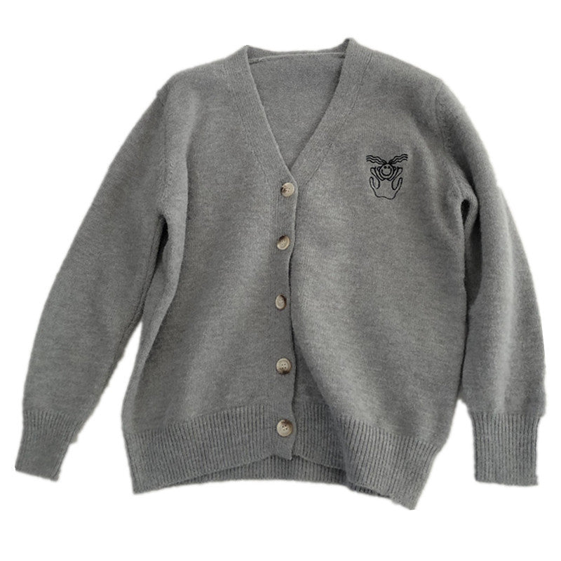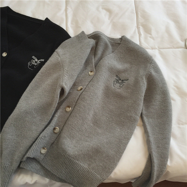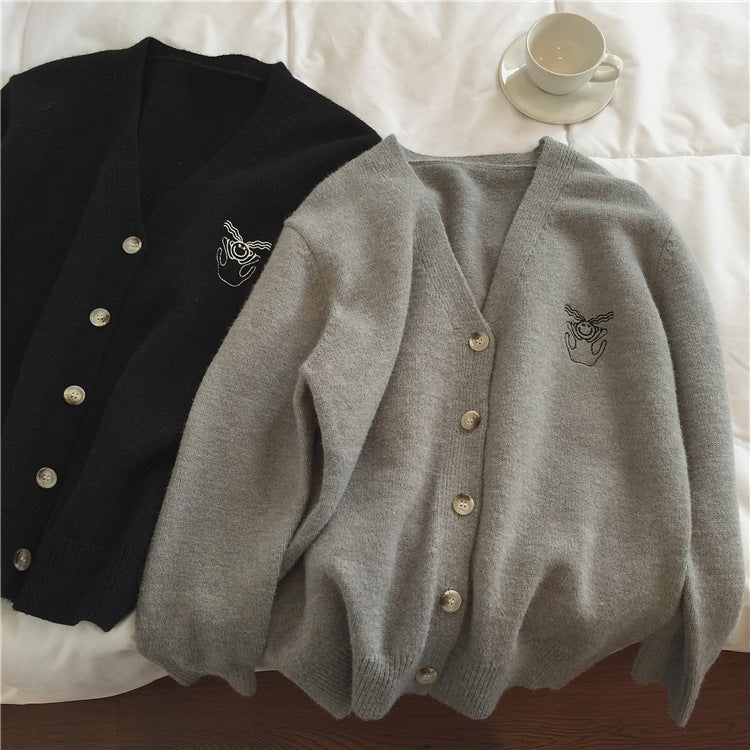 Lazy, little embroidery V-neck cardigans, loose design sweaters