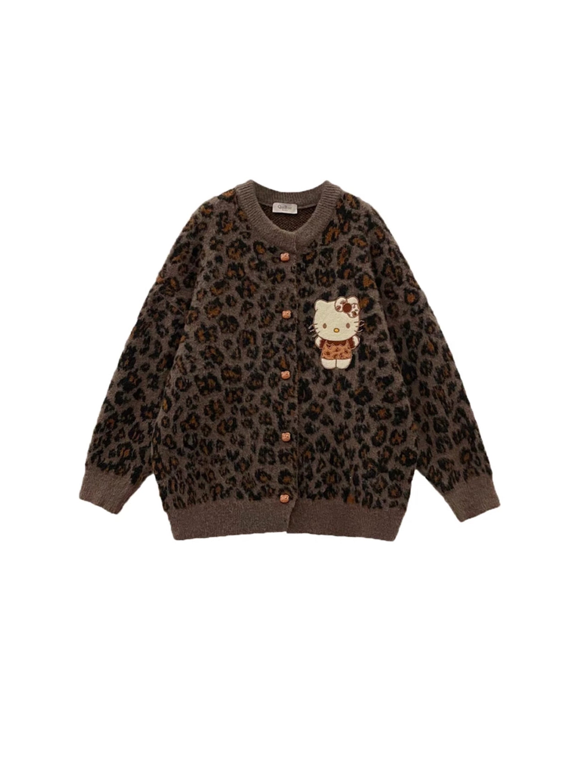 Leopard Print Embroidery Long Sleeve Thick Knitted Cardigan ED0454