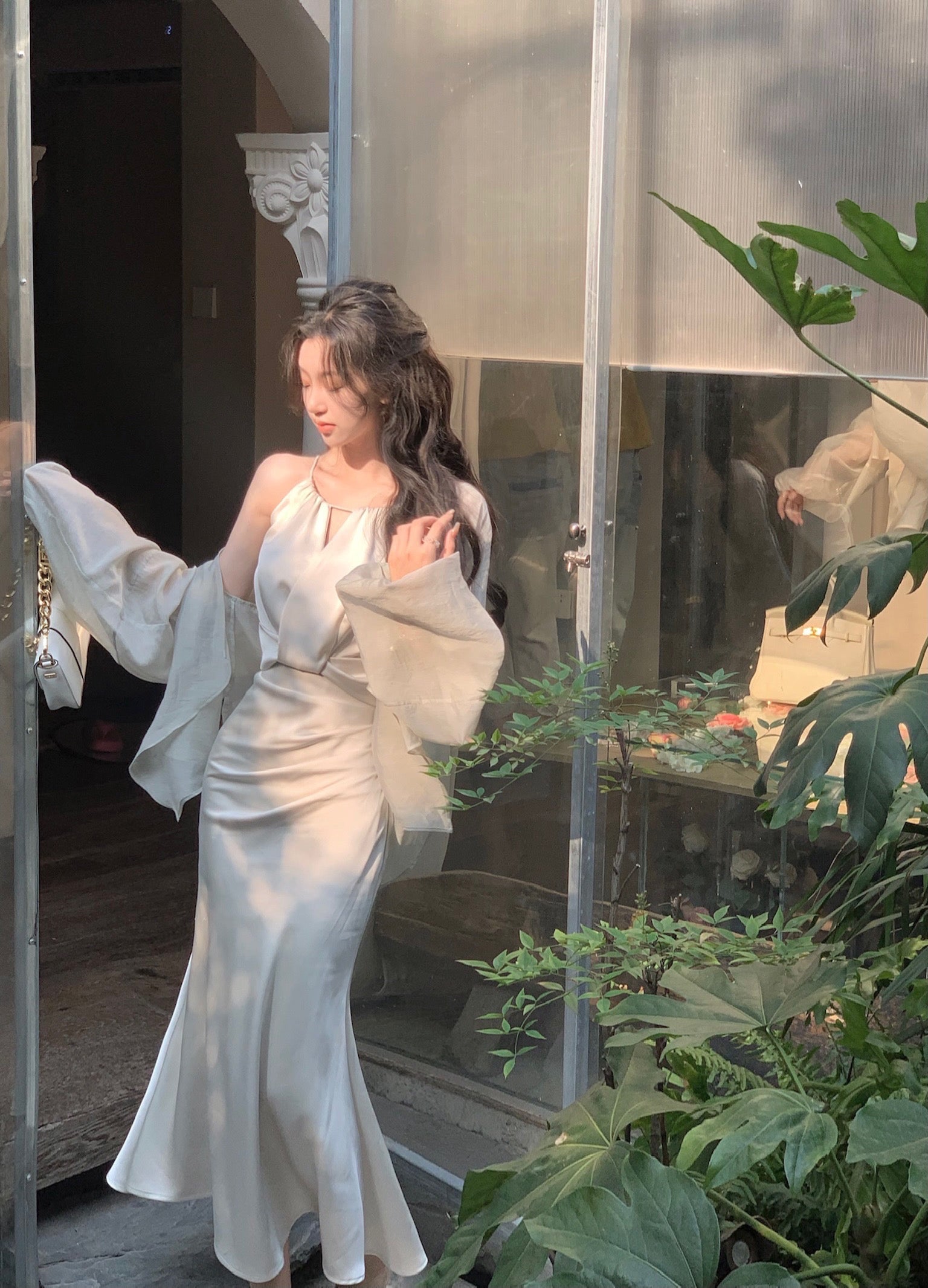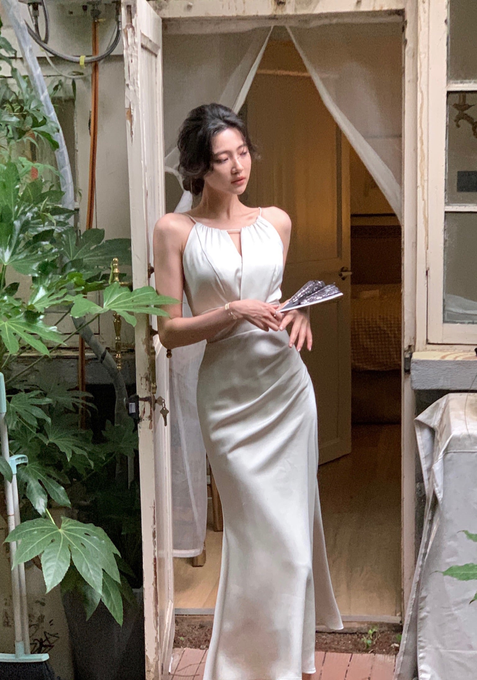Light Green Halter Neck Satin Strap Fishtail Dress ED0370