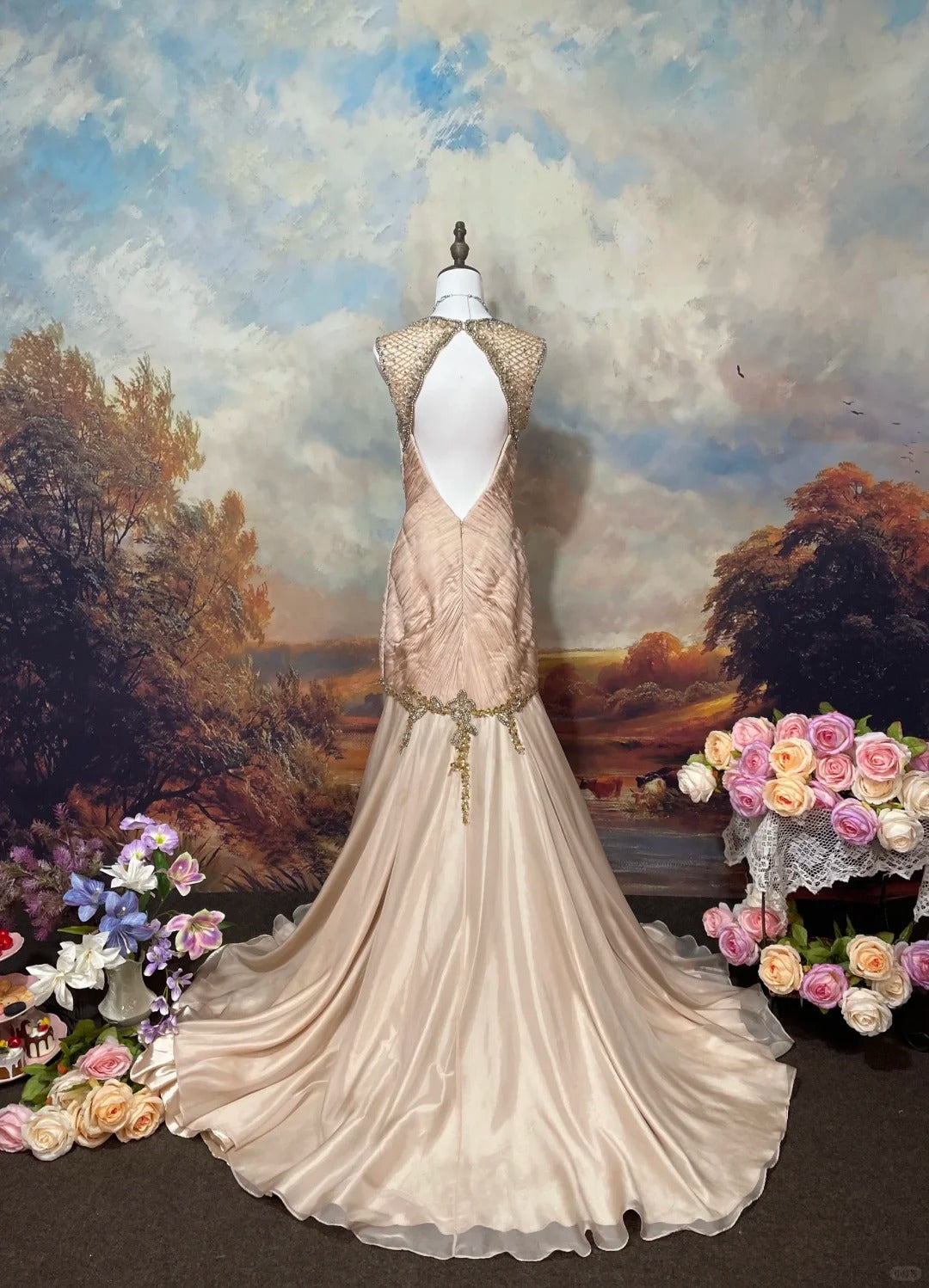 Light Pink Beaded Mermaid Evening Dress Unique Long Prom Dress cg25570