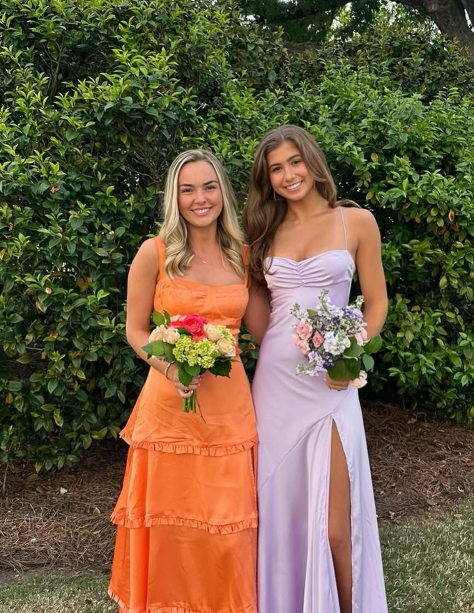 Light Purple A Line Spaghetti Straps Stain Long Prom Dress Evening Dress with Slit SH1873