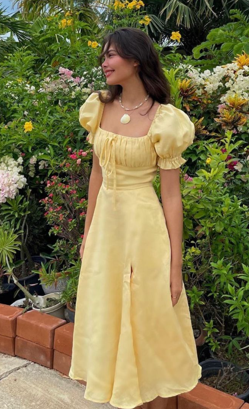 Light Yellow A-line Prom Dress with Puff Sleeves fg5224
