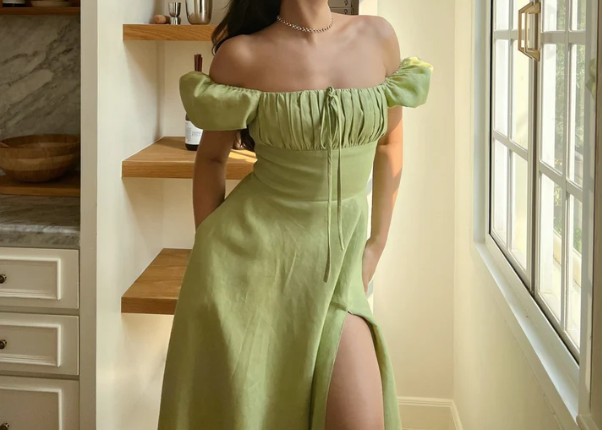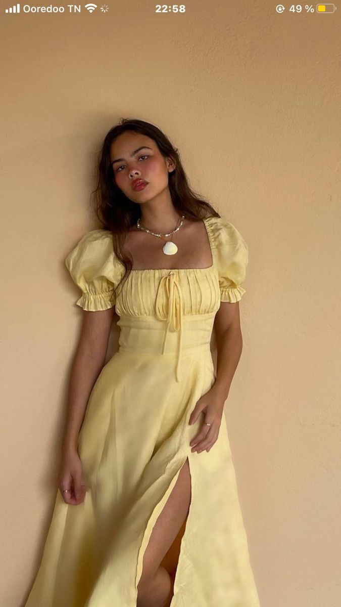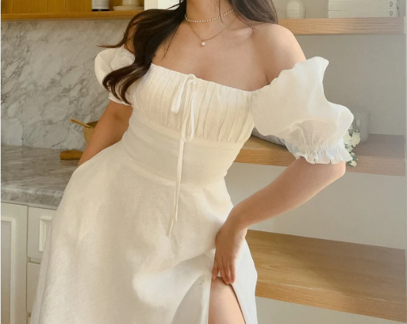 Light Yellow A-line Prom Dress with Puff Sleeves P1673