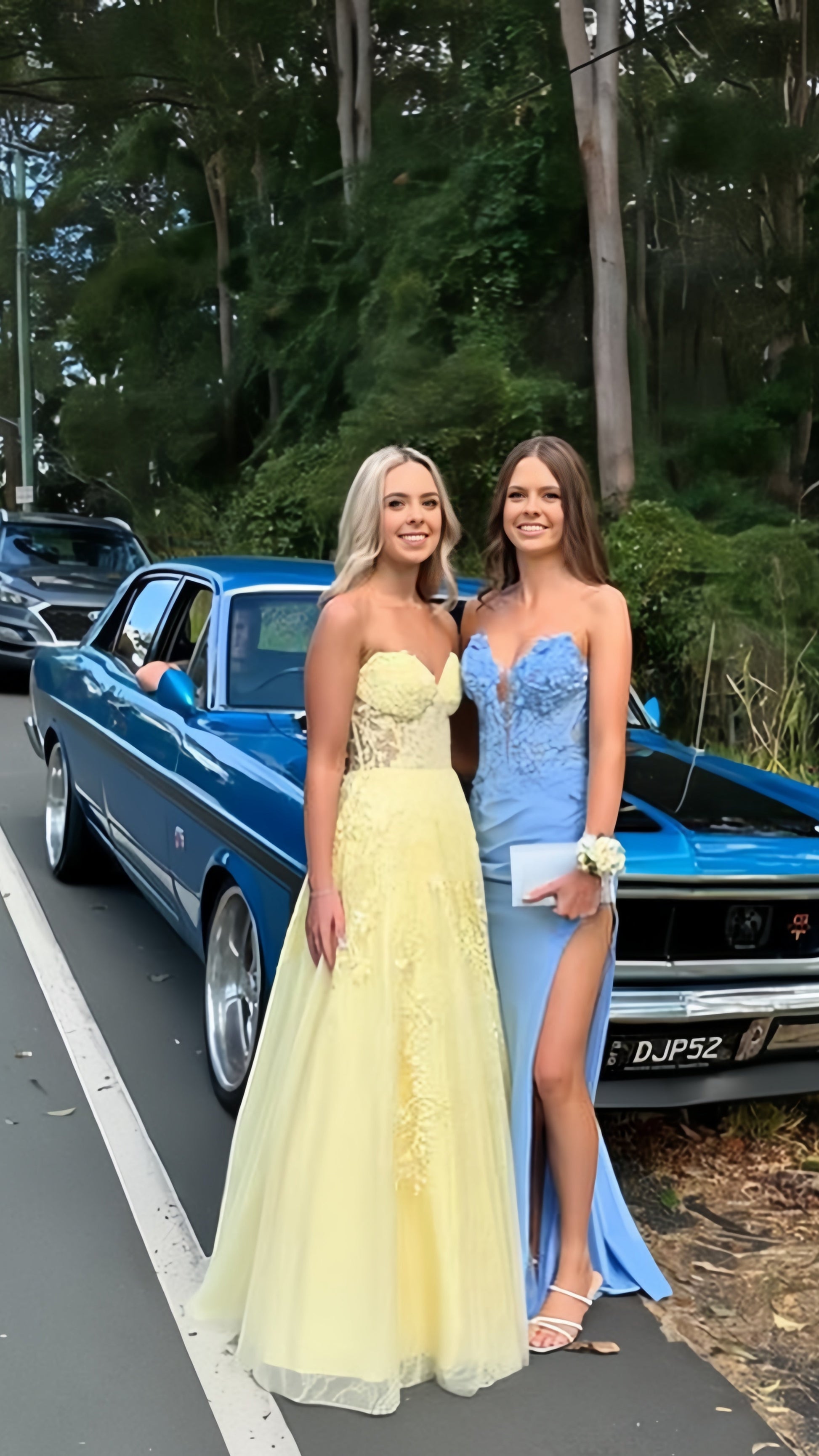 This stunning light yellow applique formal prom dress is perfect for teens. With intricate applique detailing and a flattering fit, this dress is sure to make you stand out at any formal event. Be the belle of the ball and make lasting memories in this beautiful dress.