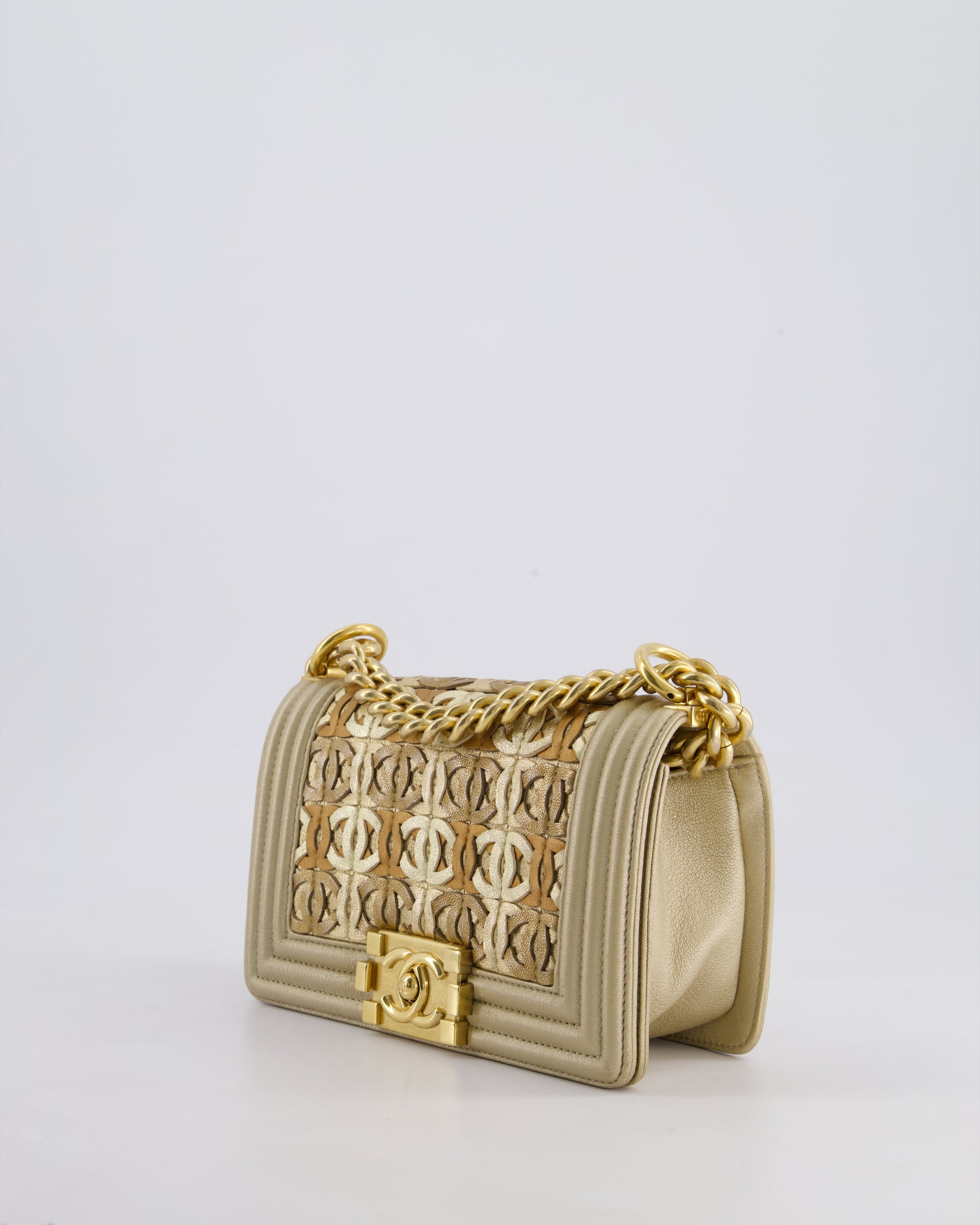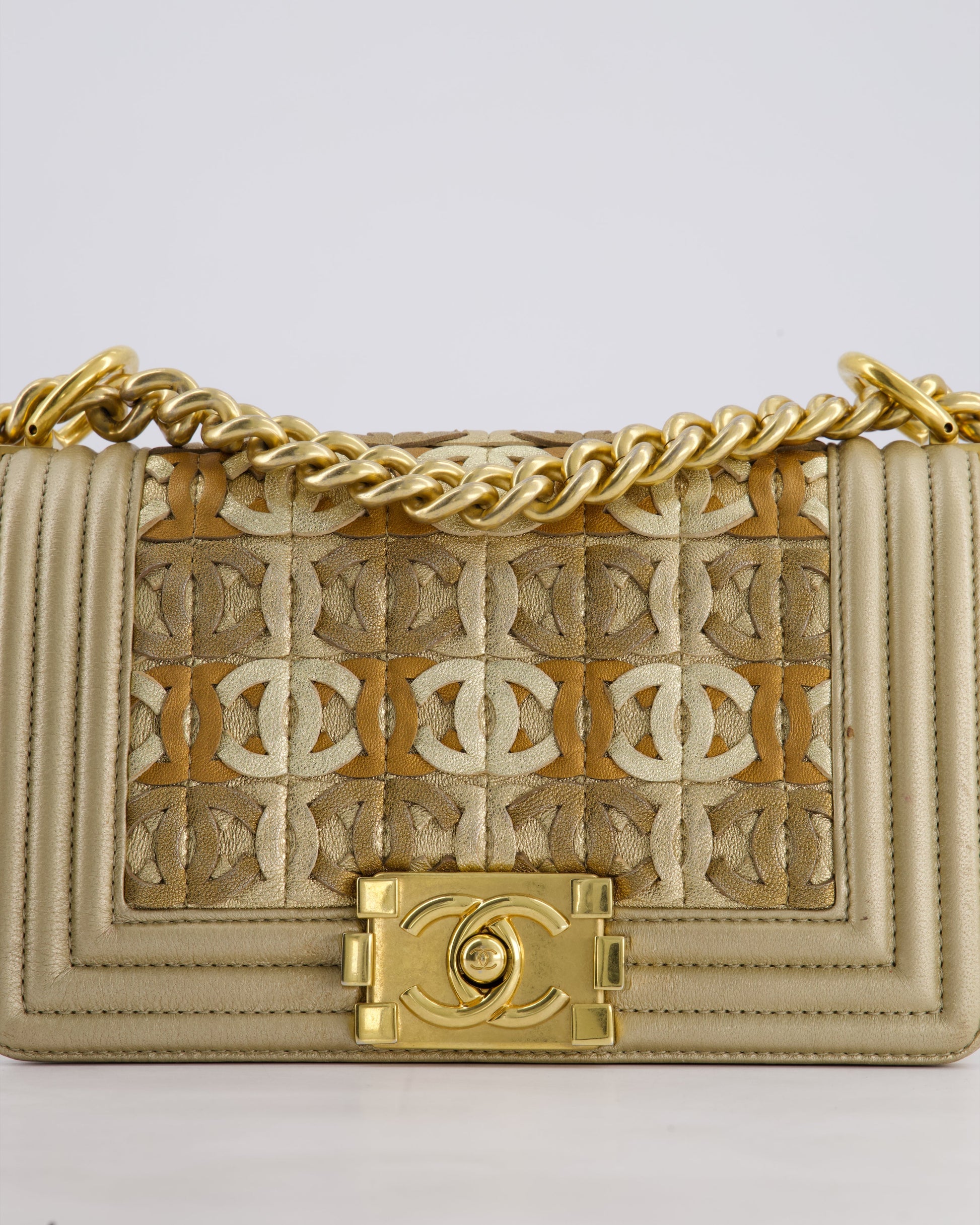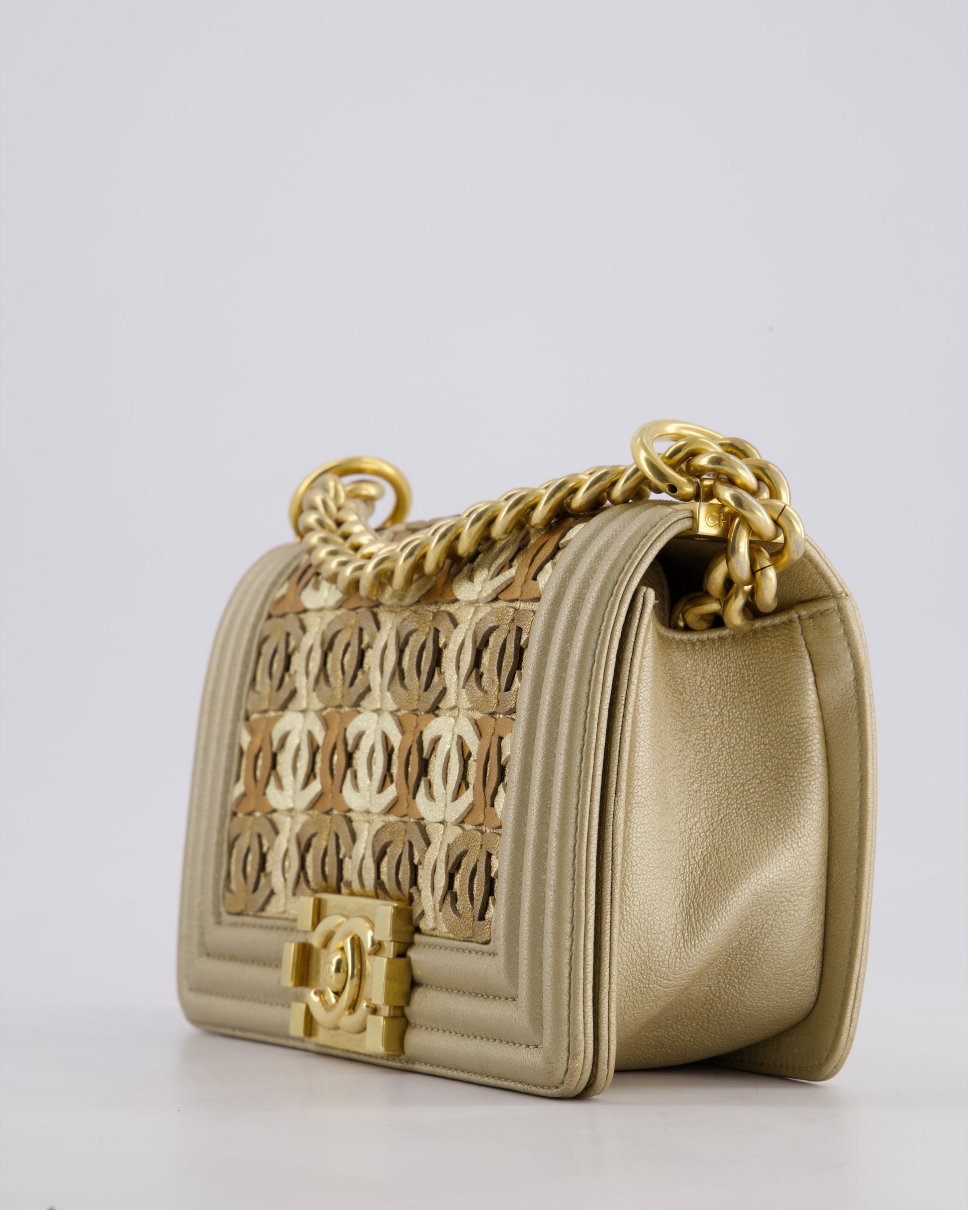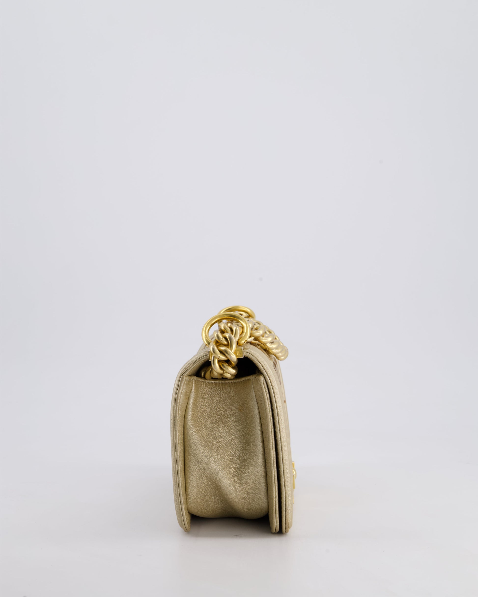*LIMITED EDITION* Chanel Gold Metallic Small Boy Bag In Calfskin Leather with Antique Gold Hardware & CC Details