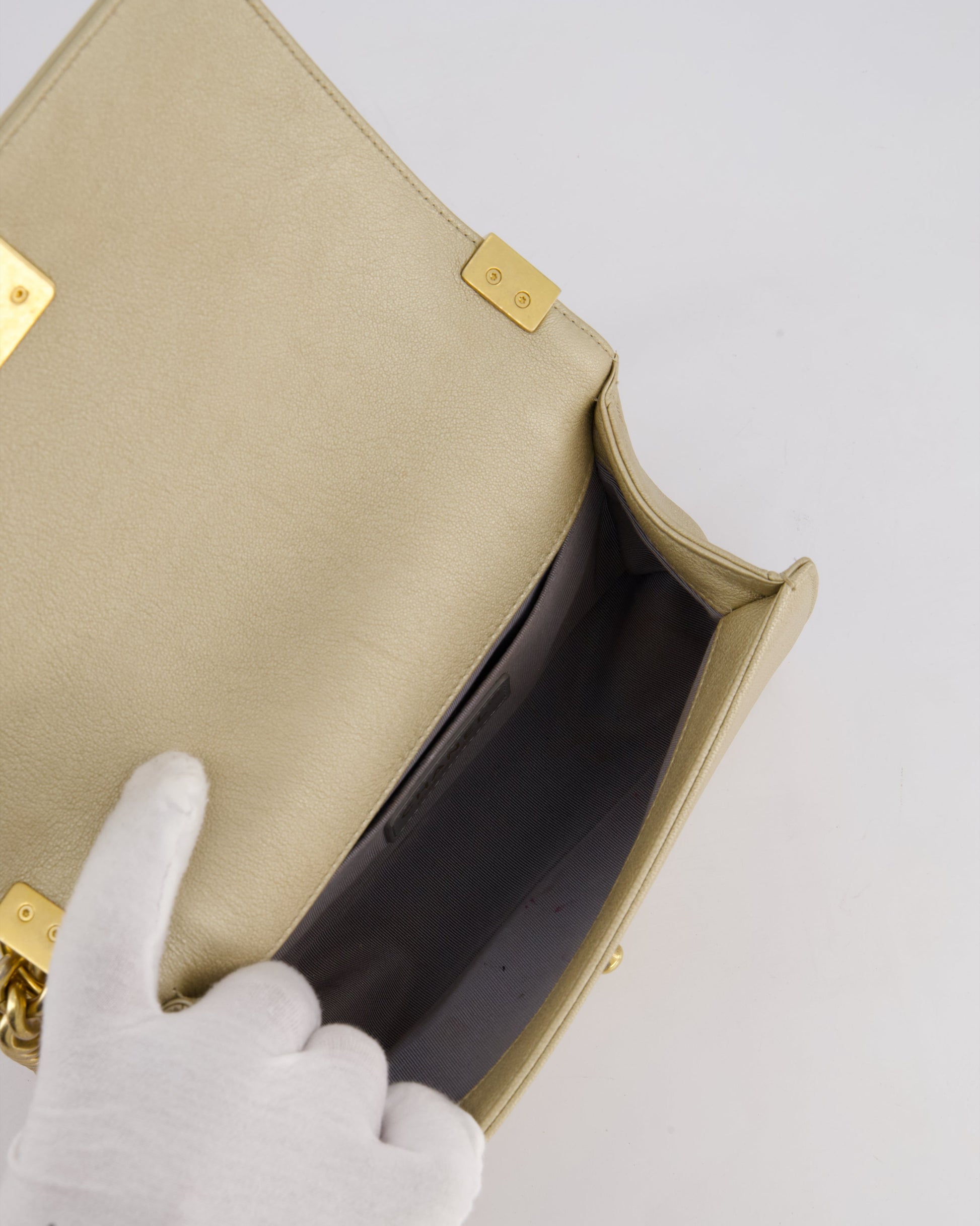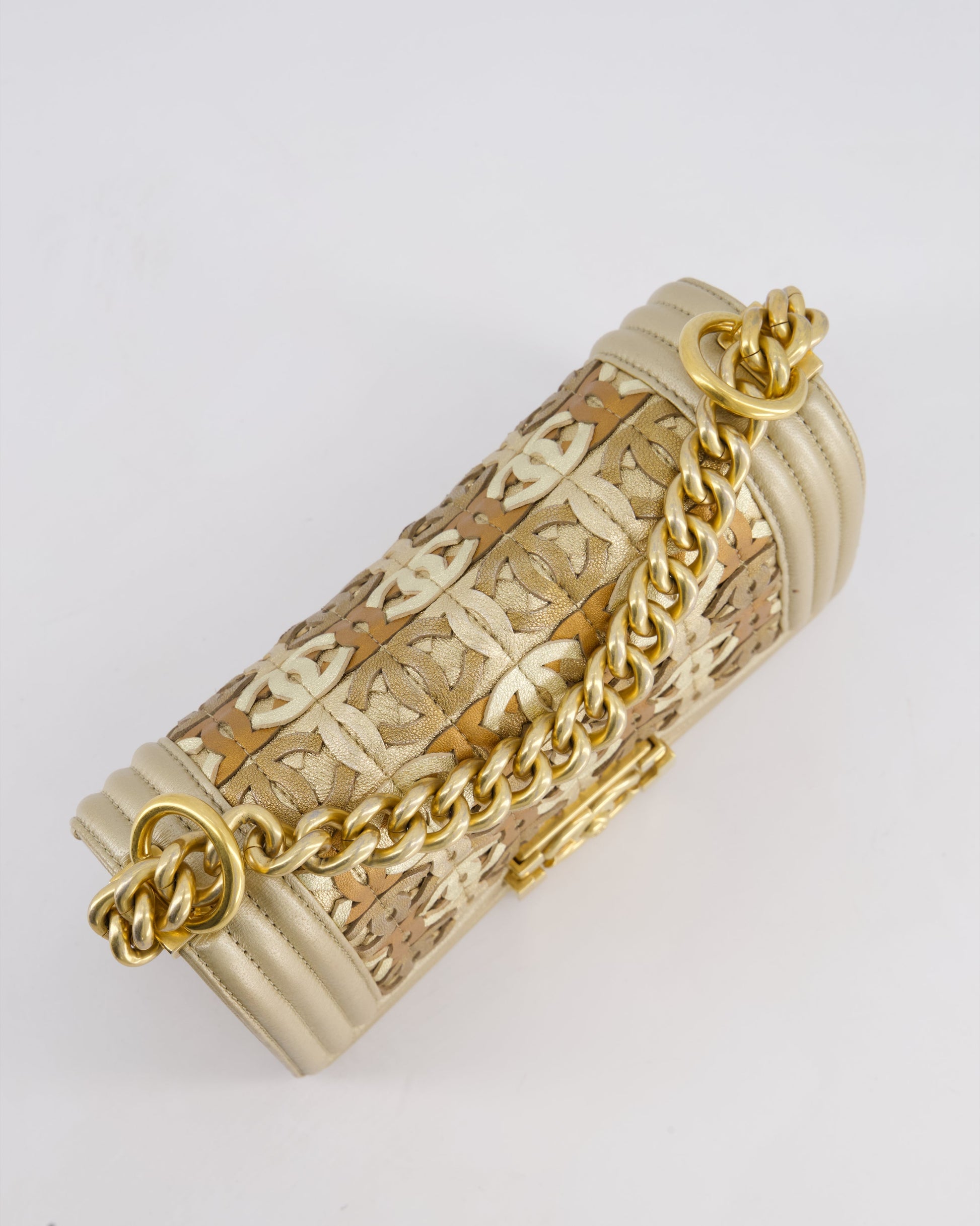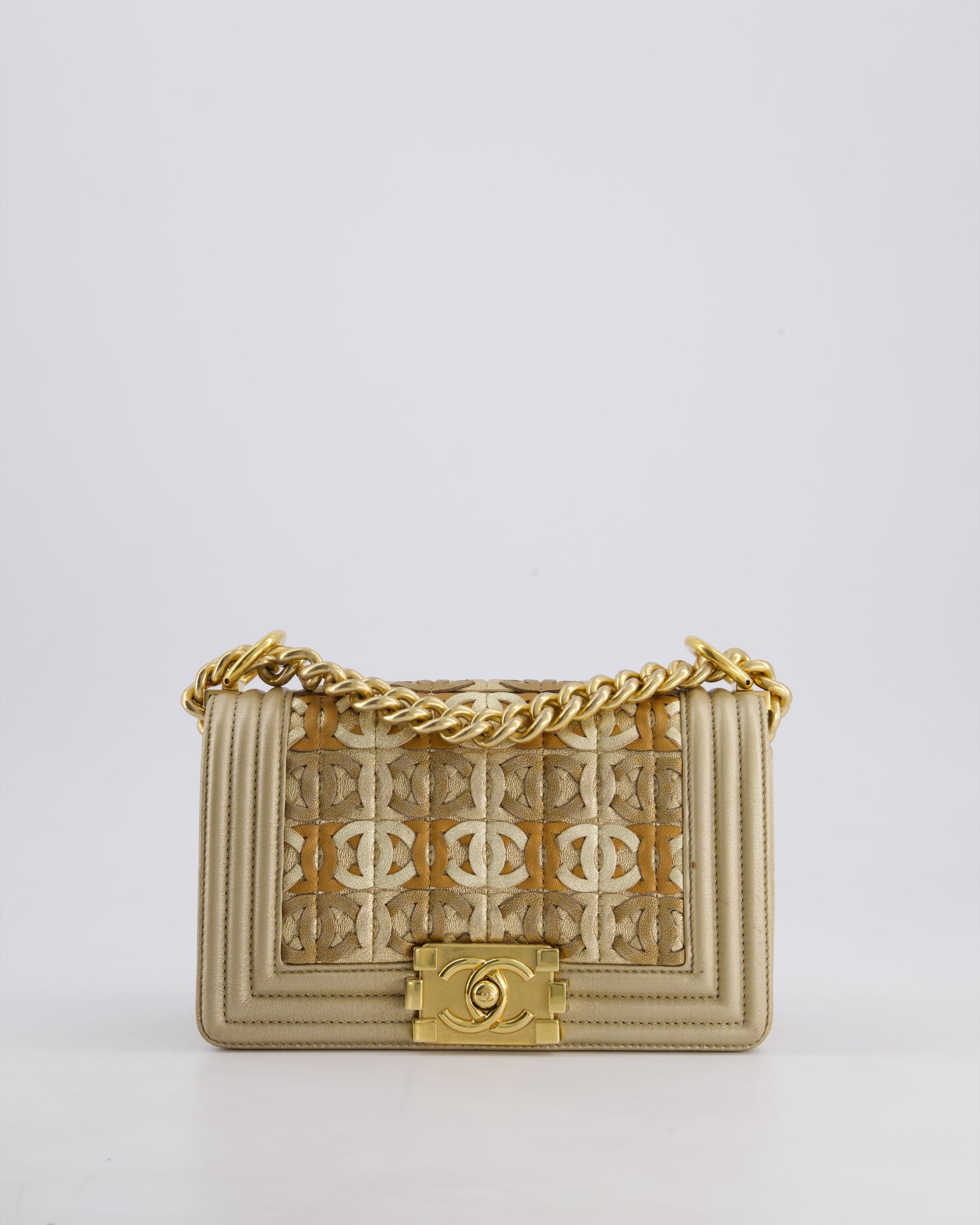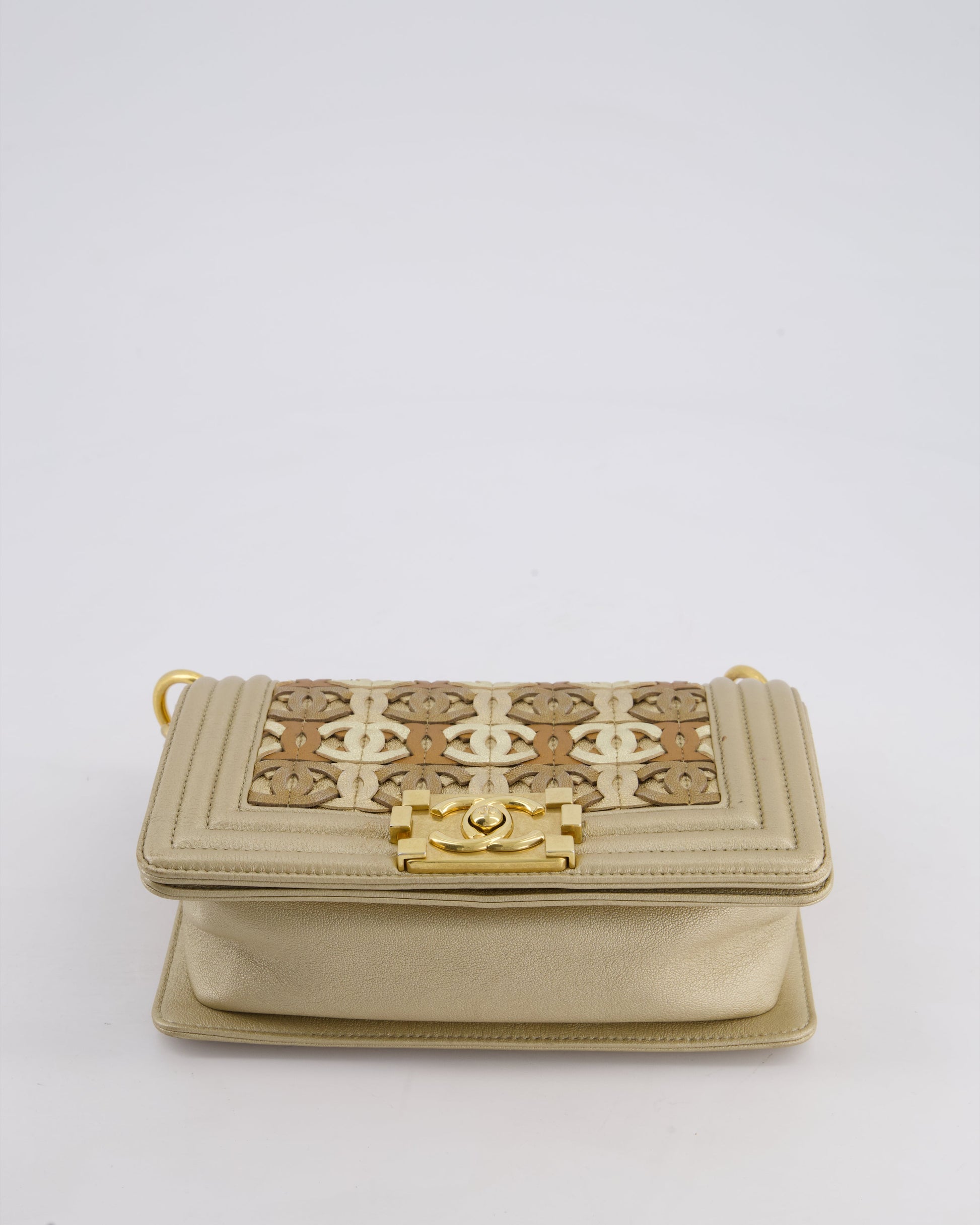 *LIMITED EDITION* Chanel Gold Metallic Small Boy Bag In Calfskin Leather with Antique Gold Hardware & CC Details