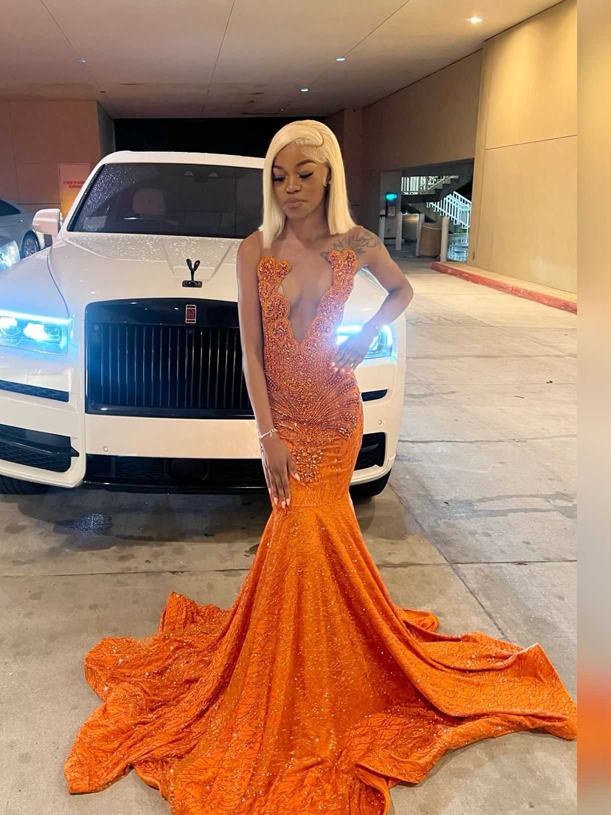 Long Mermaid orange prom dress Sexy Party Dress fg7100