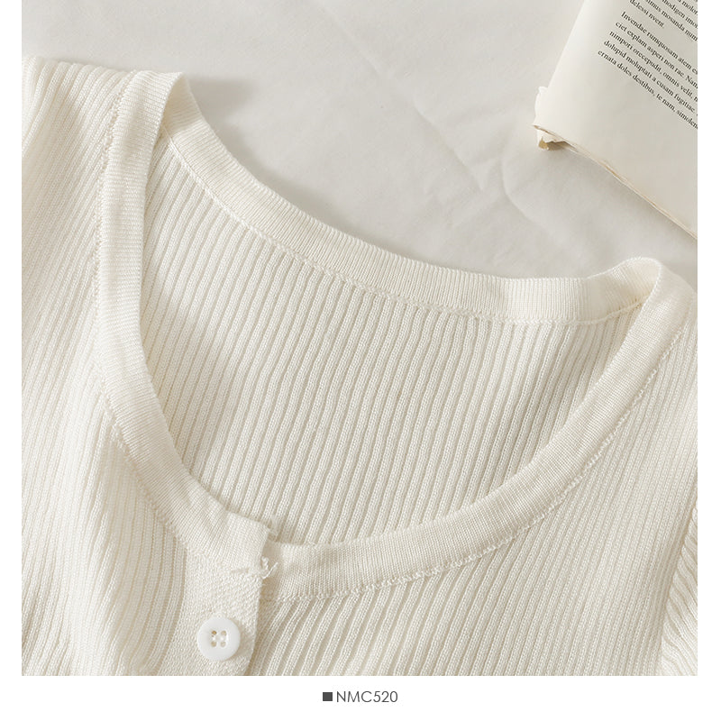 Long sleeve single breasted top women's new short versatile slim knit 1973