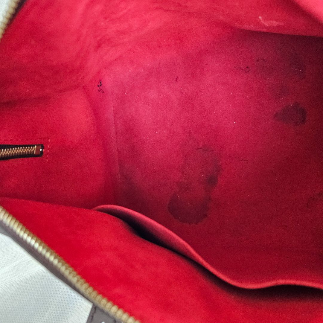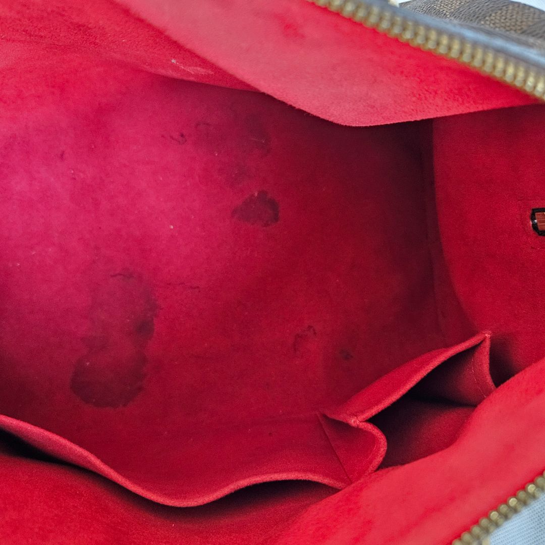 Louis Vuitton Damier Ebene Canvas Berkley shoulder bag crafted in coated canvas with Alcantara red lined interior